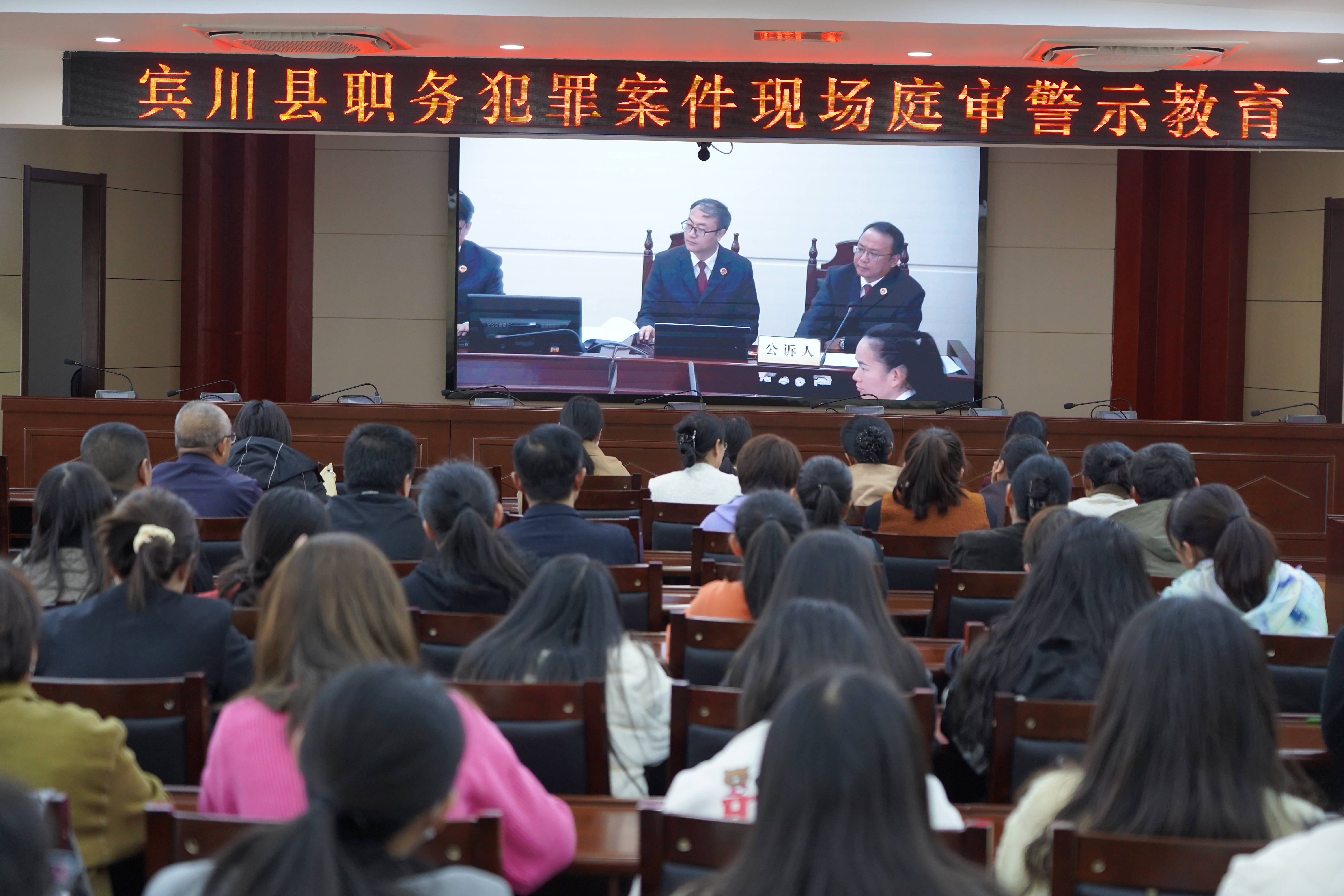 宾川县各乡镇、各系统、各单位、相关企业财务人员以及县检察院干警共135人现场旁听,“零距离”观摩开展沉浸式警示教育。