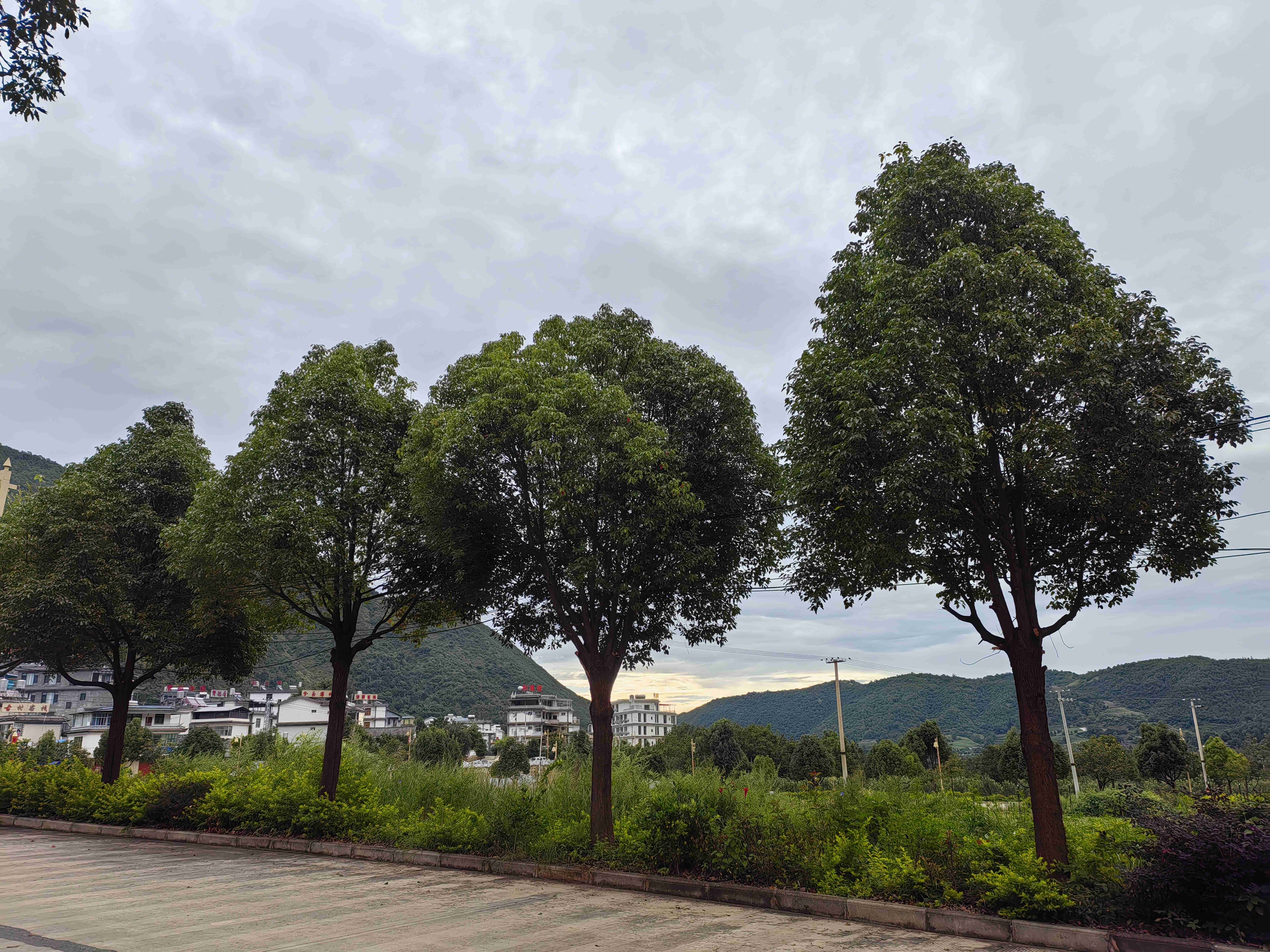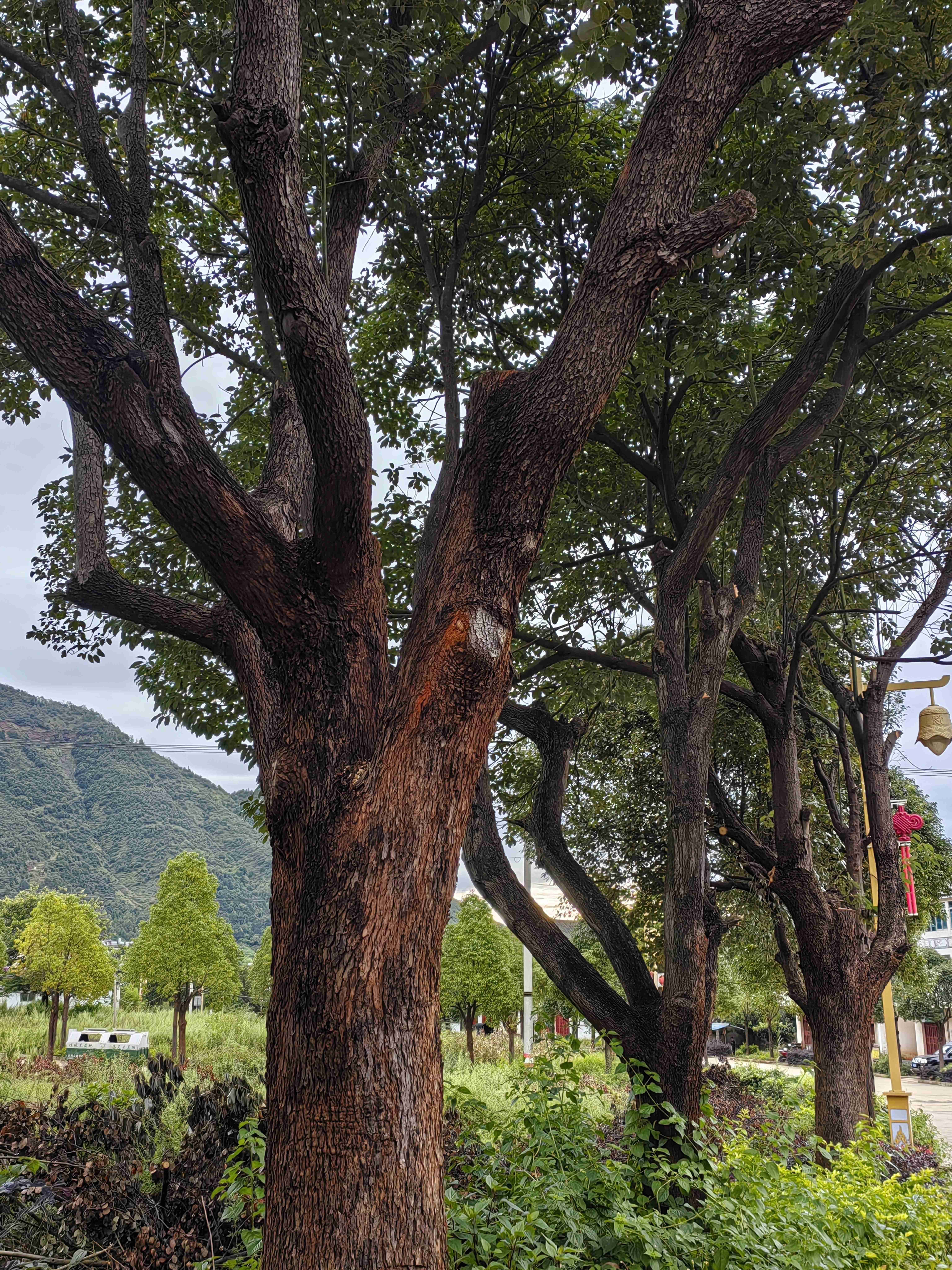 我家就在鸡足山镇。说起鸡足山镇,得从1999年那个世纪之交的节点讲起。那时,原炼洞乡与大营乡的关李、上沧、白荡坪、江股四个村委会“携手”,共同孕育出这个崭新的镇子,镇政府也从炼洞迁出,落户到鸡足山脚的沙址。那时的沙址,更像一张尚未着墨的宣纸,除了远处鸡足山的轮廓清晰可见,脚下的土地还带着几分原始的质朴。谁也不曾料到,近三十载光阴流转,这片土地竟在建设者的手中焕发出蓬勃生机。水泥路与石板路取代了泥泞小道,民居座座相连,新楼依偎着旧居,而香樟树,就是从建镇初期开始种植的,并且成为这场变迁里最直接的见证者。