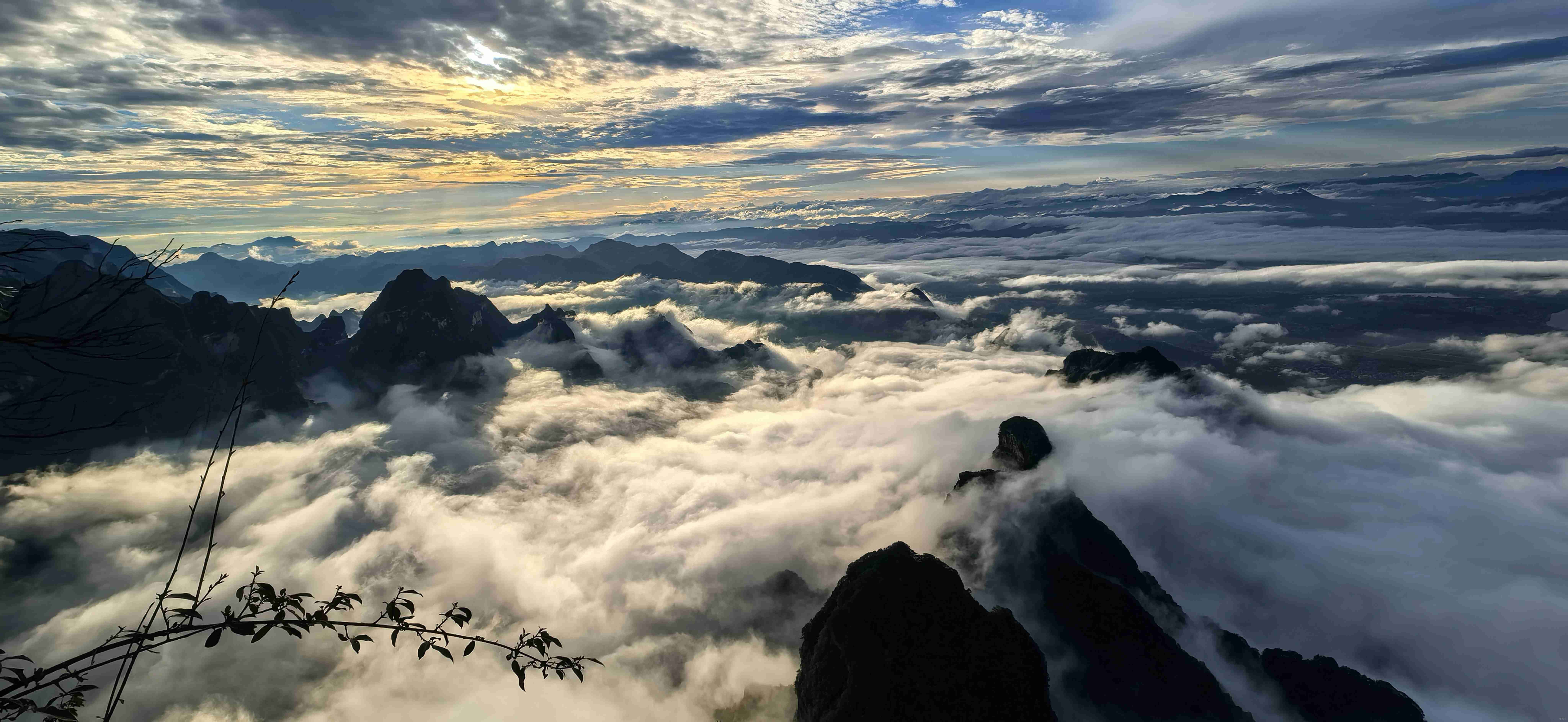 我一边走,一边忍不住回头抓拍沿途的风景,有时为了定格一张云海绕峰的画面,不知不觉就落在了队伍后面。