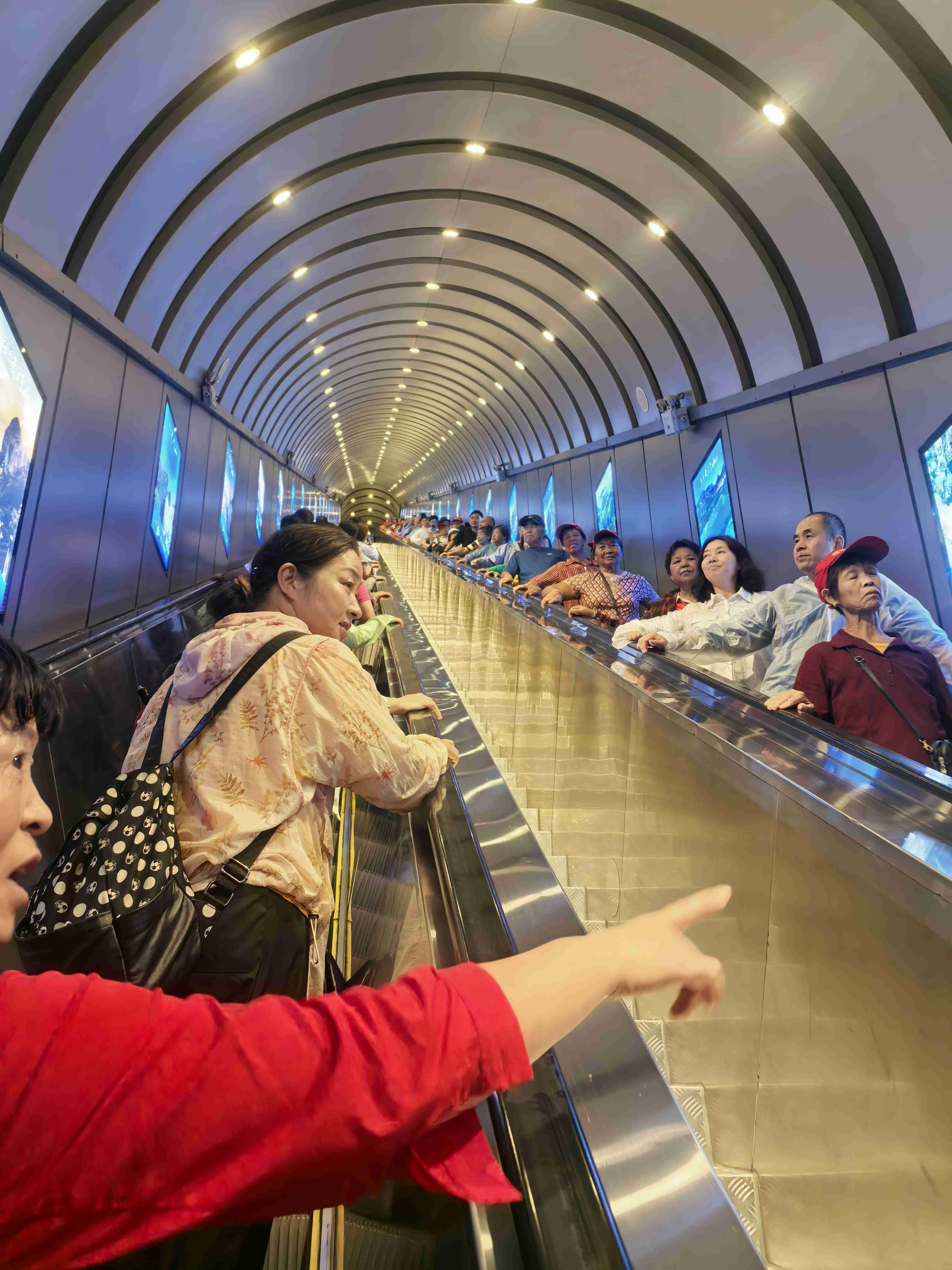原本想沿着999级台阶一步步登上天门洞,亲身体验“登天门”的豪迈,可一看时间已近傍晚,导游担心天黑前赶不上后续行程,劝大家乘坐扶梯上山。虽有几分遗憾,但想到能更快抵达山顶,也就释然了。