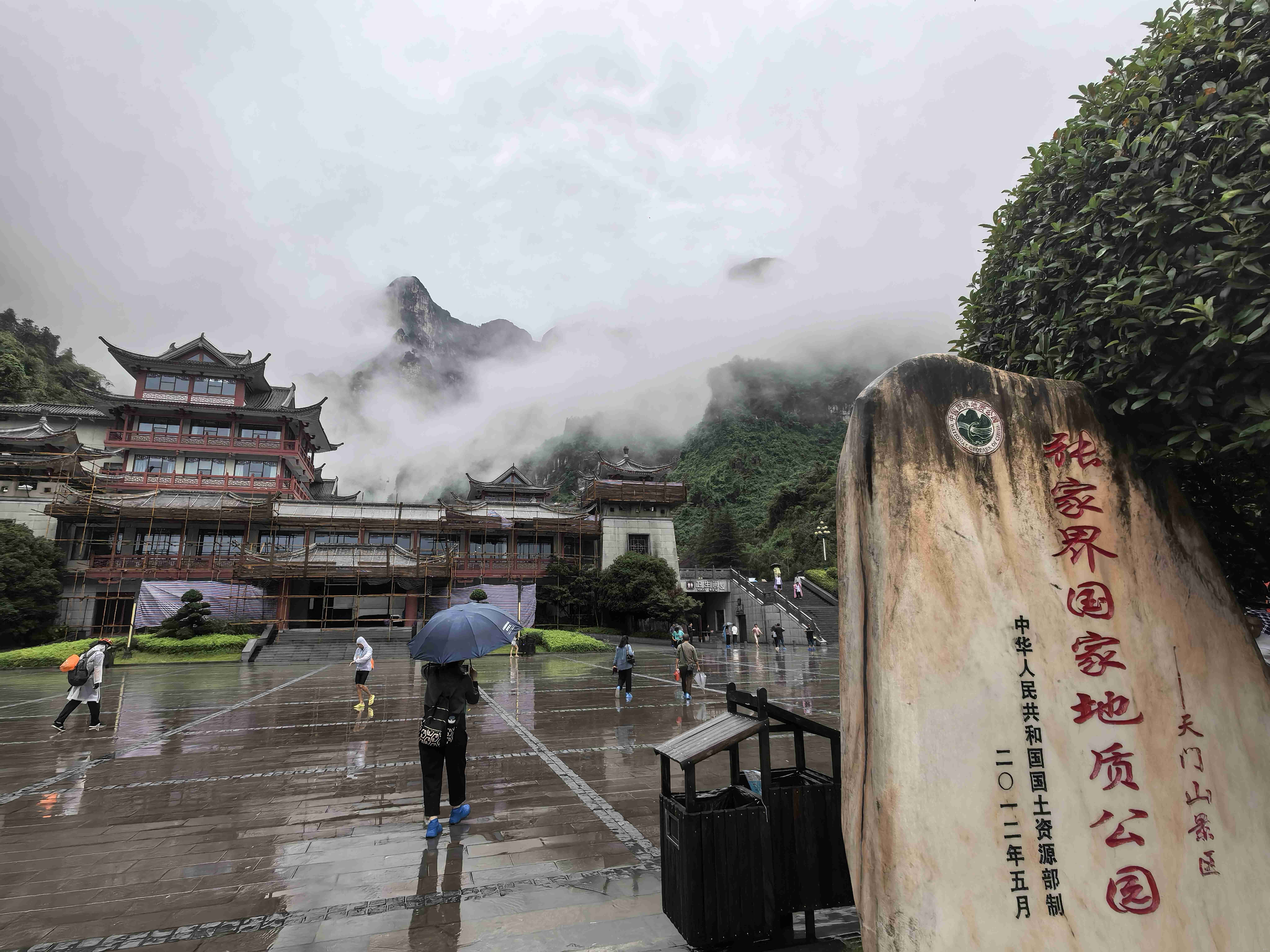 “大家看那边,正在搭建的是翼装飞行比赛的舞台。”导游指着天门洞旁的脚手架,语气里满是期待,“这次赶上9月份的全国翼装飞行展演,要是运气好,说不定能亲眼看到翼装飞行员从天门洞掠过呢!”我们顺着导游指的方向望去,工人们正在紧张地忙碌,彩色的防护网在云雾中晃动,为这座静谧的神山添了几分动感。我心里悄悄盼着:要是真能遇见翼装飞行,那可真是此行最大的惊喜。