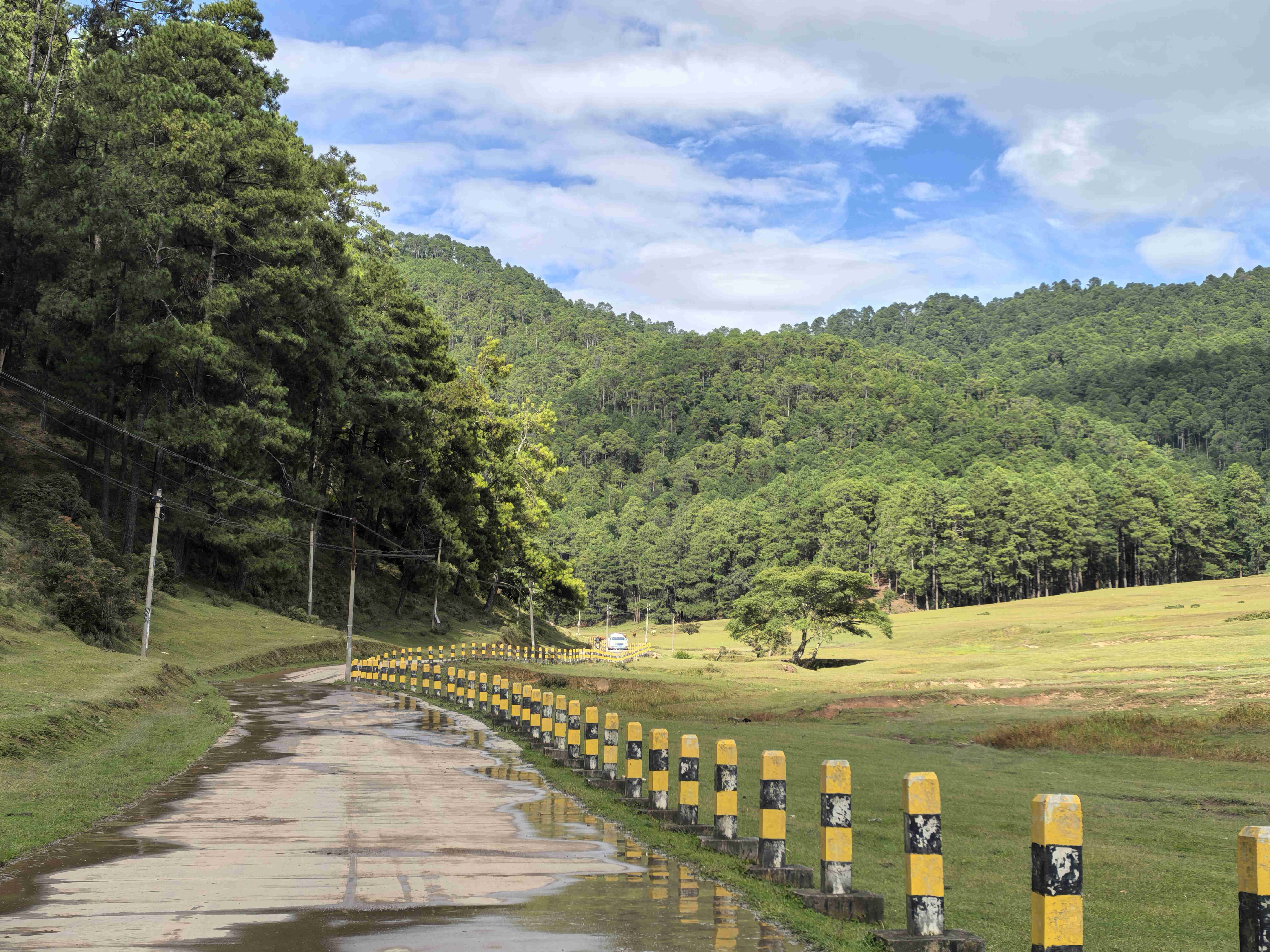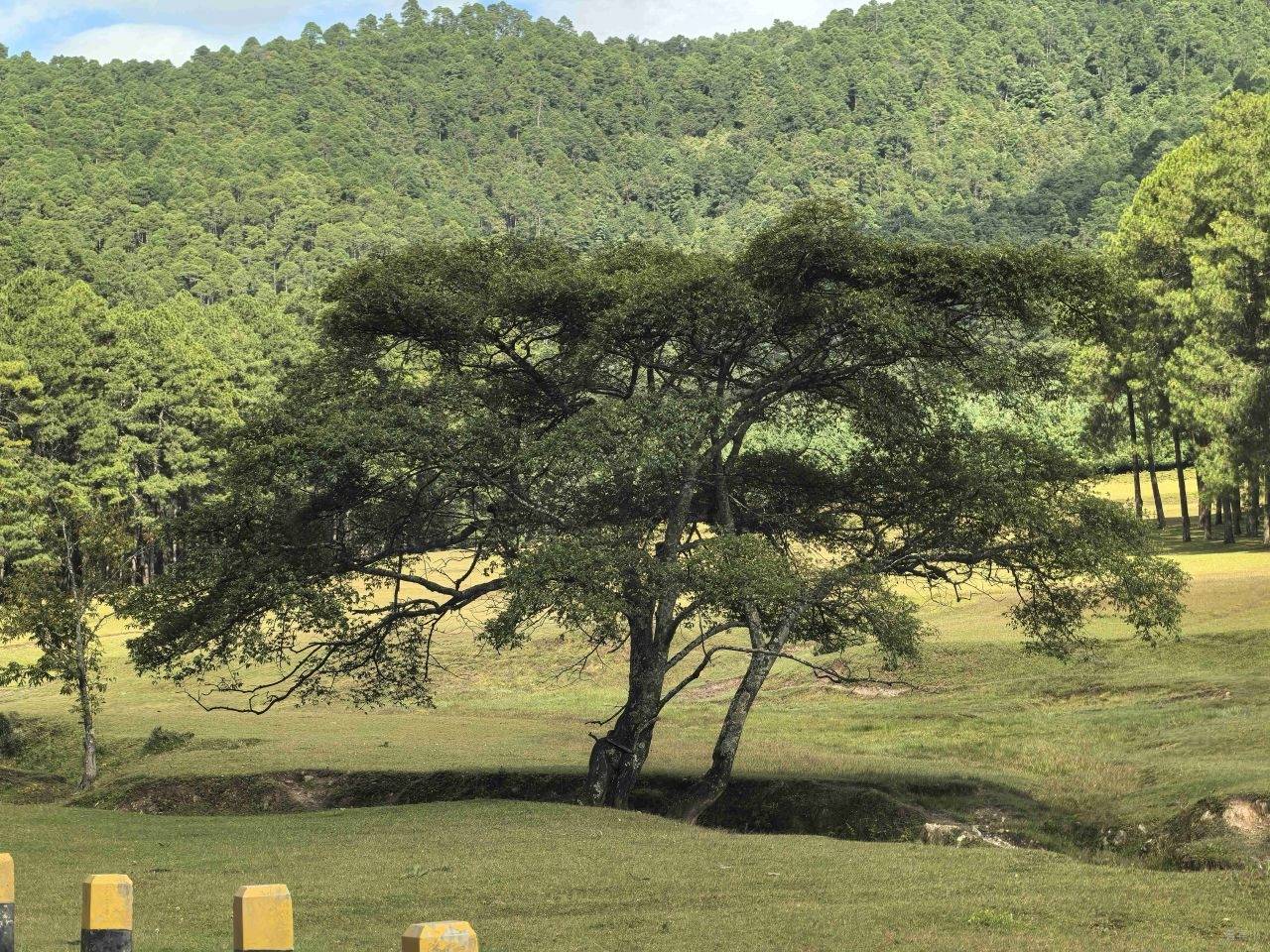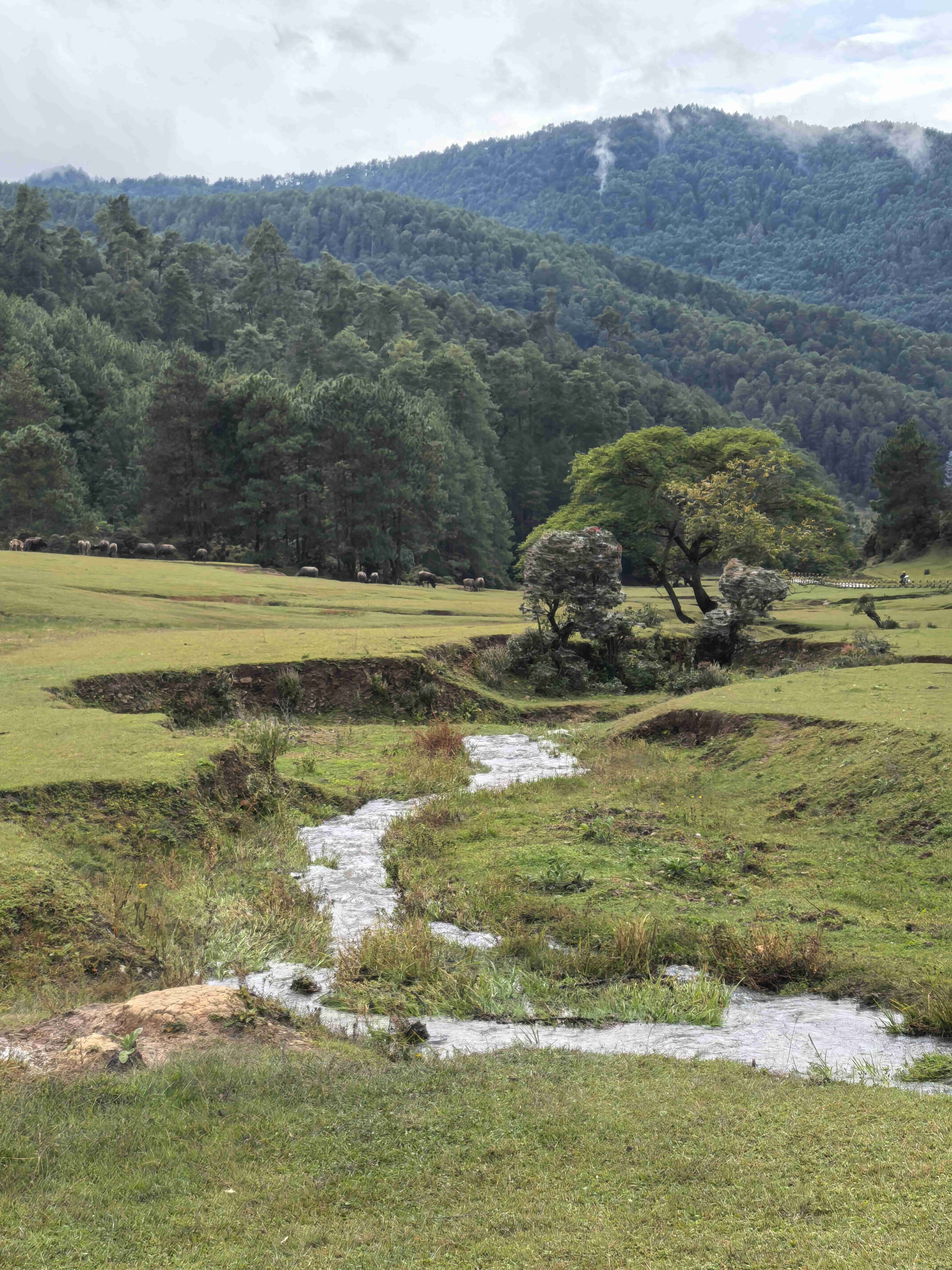 车子驶出一片茂密的树林,眼前的景象让我们不约而同地惊呼出声:一大片开阔的高山草甸铺展在眼前,像一块碧绿的地毯从山脚延伸到山腰,牛羊马驴散落在草甸上,低着头悠闲地啃着草,尾巴时不时甩一下驱赶蚊虫。公路从草甸边缘轻轻绕过,一块巨大的石头上,“大浪坝”三个用绿油漆描过的大字格外醒目,与周围的草甸、森林融为一体,毫无违和感。