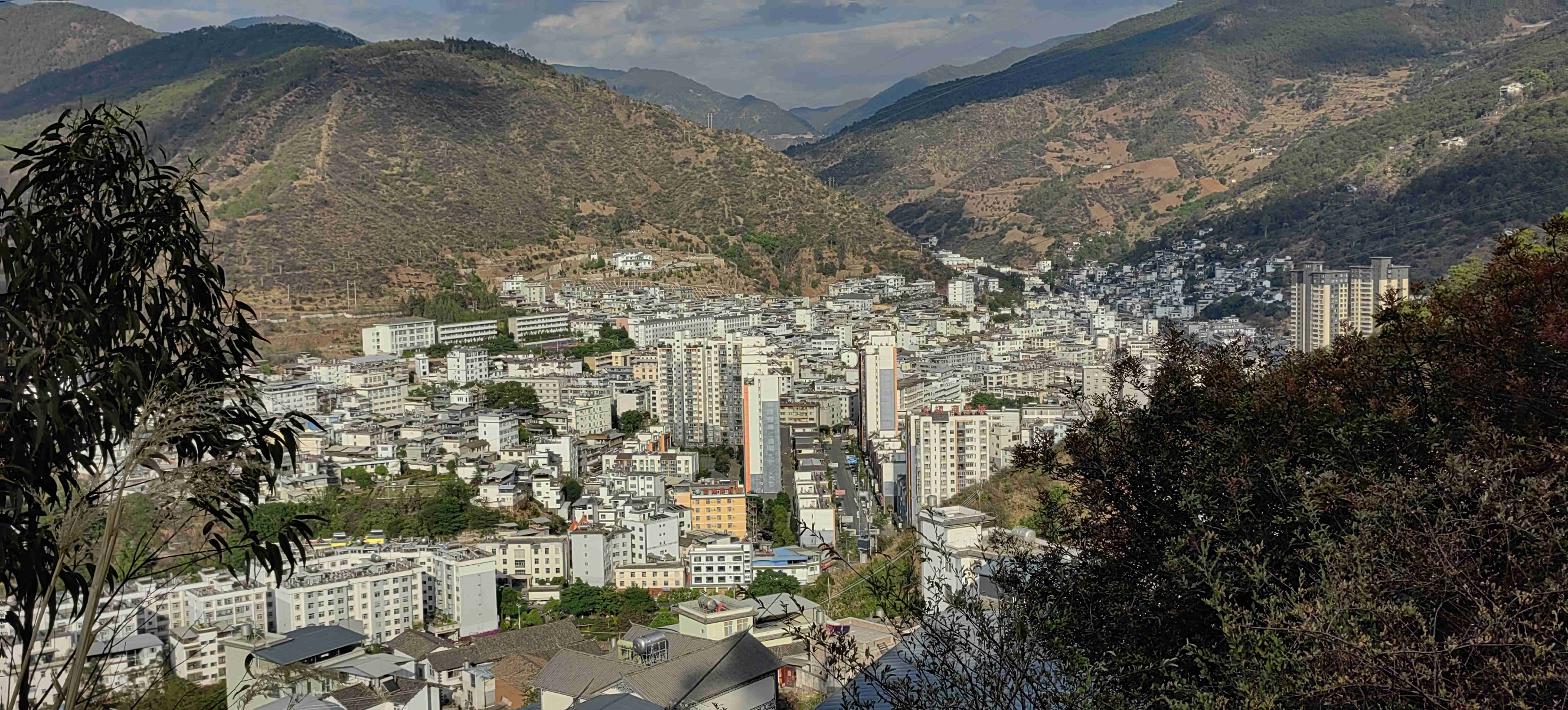 上午10点从宾川启程,全程高速一路顺畅,12点多就到了虎头山下的云龙县城。为了节省时间,我们熟门熟路地找到五月吃过的“干锅牛肉”店,热腾腾的牛肉裹着秘制酱料,一口下去满是满足。饭后稍作休整,第一站先去了云龙天然太极观景台——五月来时只顾着赶路,倒没好好欣赏这份自然奇观。