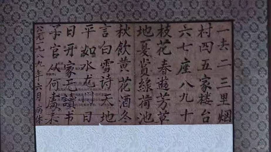 爷爷留下的那些零三四碎,密密麻麻写满毛笔字的纸张中,最大的一张是年老多病的爷爷,吃完中药,舍不得丢弃,写了三首古诗的宾川县中医院中药包装纸。我把它裱了起来,高高地悬挂在家里堂屋的墙壁上。