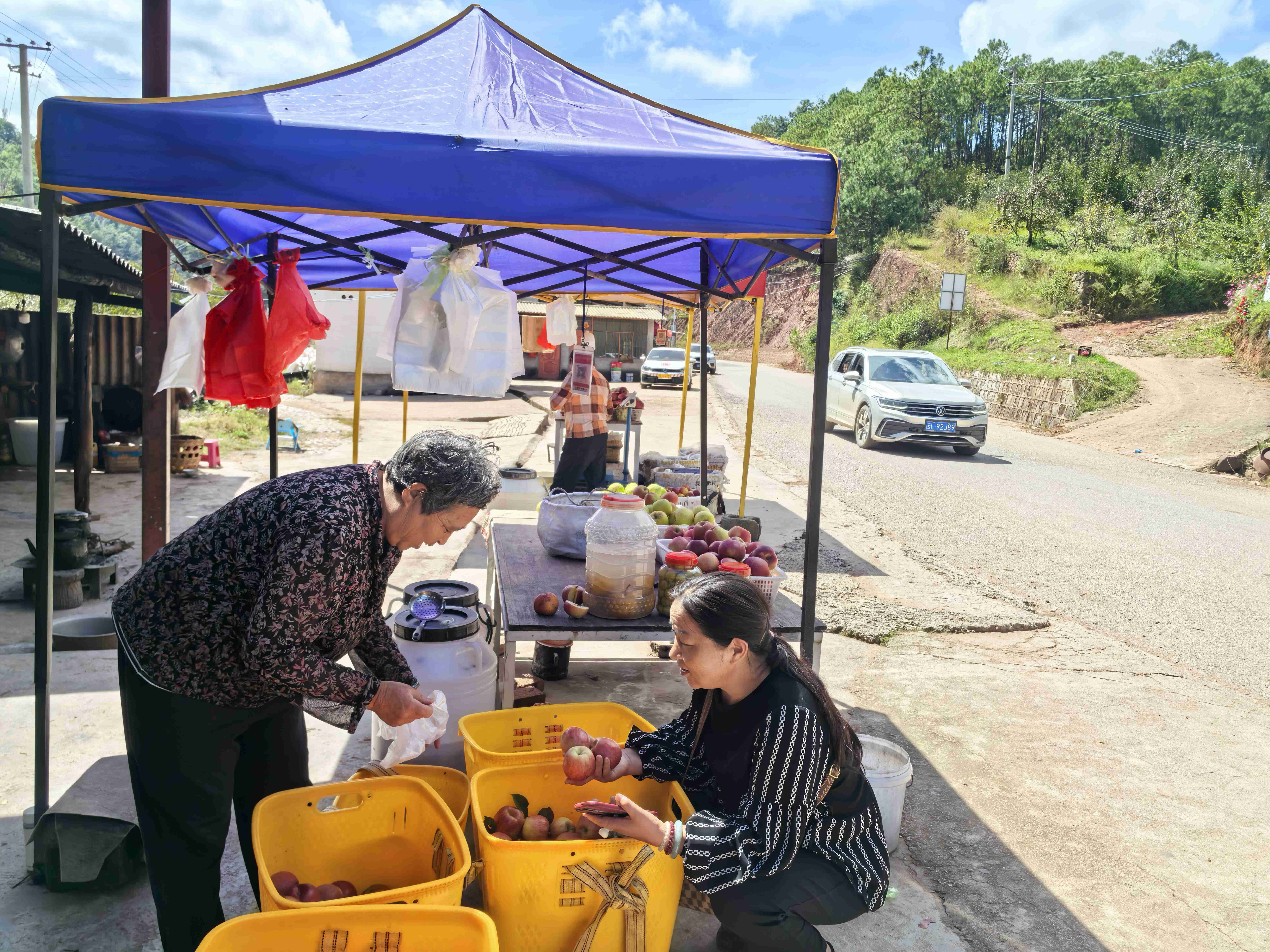 中秋傍晚的松坪哨是平静的,一抹斜阳,几缕炊烟,枝头的红苹果好像一张张娃娃天真的笑脸,几只小鸟在不停地欢唱,让我想起了那幅美丽的《富春山居图》。松坪哨,这个地图上不起眼的芝麻小点,名不见经传的地名,是平川、拉乌、钟英一镇两乡的人走出大山的必经之地。松坪哨见证着厚重的历史,承载着浓浓的乡愁,滋养着感恩之心。