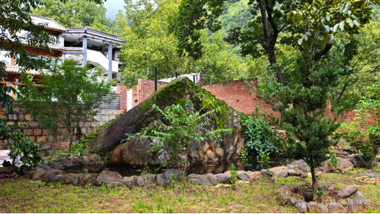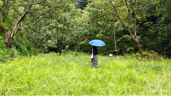 我们返回山庄喝茶,可我的心里再也忘不了那一片森林瀑布草地的美感了。我看着面前茶桌上茶盅里飘荡而起的袅袅热气,时间也仿佛被一下蒸发成茶盅上那缕热气,分不出过去今日。海地讲述他家祖上和这片山地的故事像升腾在那水汽中的画面,岁月在这一刻被一盅茶溶化,一个人甚至一个家族的历程似乎也只是小啜一口便可轻易咽下。在岁月面前,生命哪有什么分量,人生的计较在岁月的长河里水波不扬。院中那从华首门滚下的公石他自己都忘记了那场改变命运的动荡,甚至他都忘记了他的另一半——那矗立在恒阳庵的母石。在岁月面前哪有什么解不开的结?最后连一声叹息都留不住。