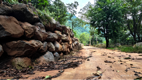 我们到达白草龙村中心龙王庙下的小停车场处,然后往左掉转方向进入山间窄道,万导驾车拉着我们行驶在白草龙村的好几个“之”字形山间村路上,水泥路面,随山曲折,路面不宽,多数路段仅容单车通过。好在很少遇见对头的车辆。又是午间2点左右,不但没车,也很少行人,连山林中的鸟都在打瞌,只在村尾路上遇见三个十多岁的男孩子在游荡,茂密的林中只有知了使劲地叫,山林寂寂。我们的车安静地在白草龙村上的林间路上穿行,向三岔河上游的石头地驶去。每个人都深深感受着山林的静寂灵秀之美,内心震撼。