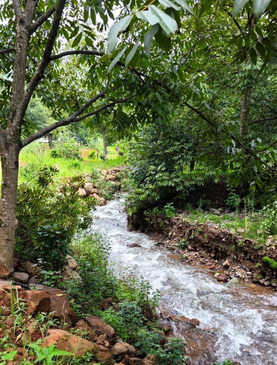 “那些垒起的石埂子,石墙,还有河边的河岸好多都是我家搬运这片林中的石头垒砌的。清了几十年才有现在这样貌。那近千棵的大核桃树,那四棵大塔遮树,那三棵大柿子树和梨树、青梅树都是我爷爷他们那时候就有的了。杨梅、苹果、李子、猕猴桃、羊奶果、桑葚、车厘子是近十多年来种的。板栗树树龄不长,三十来年。我家五代人都热爱这个地方,我从央企上市公司辞职返乡创业,虽然困难重重,但我依然想把这片祖辈传下来的土地建设成为美丽的家园!”海地如数家珍般深情地说。