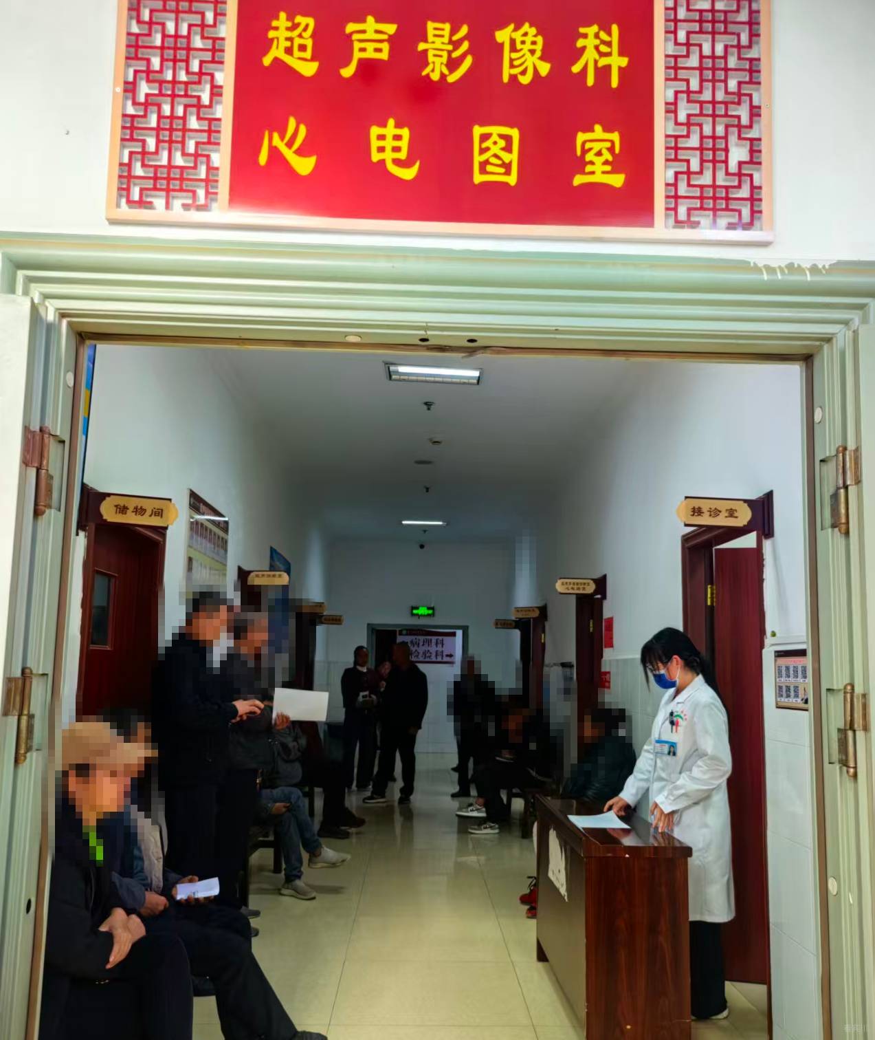 我们以前上班中午是有休息时间的,中午的时间段有两个医生值班。后来中午时间段病人很多,好多患者等的时间很长。杨主任说有些乡镇离县城太远了。像拉乌乡,检查完,拿拿药,天都黑了,都没有回家的车了,中午全部人加班算了。就这样,大家中午11点到1点是最忙的时候。很多时候都是肚子饿得咕咕叫还要把患者检查完。实在检查不完的时候就和不需要空腹检查的患者说一下,让他们先去吃饭,我们先吃一下饭再给他们检查。这时候要是推来一个急诊患者的话,我们也是要放下碗筷先去检查。