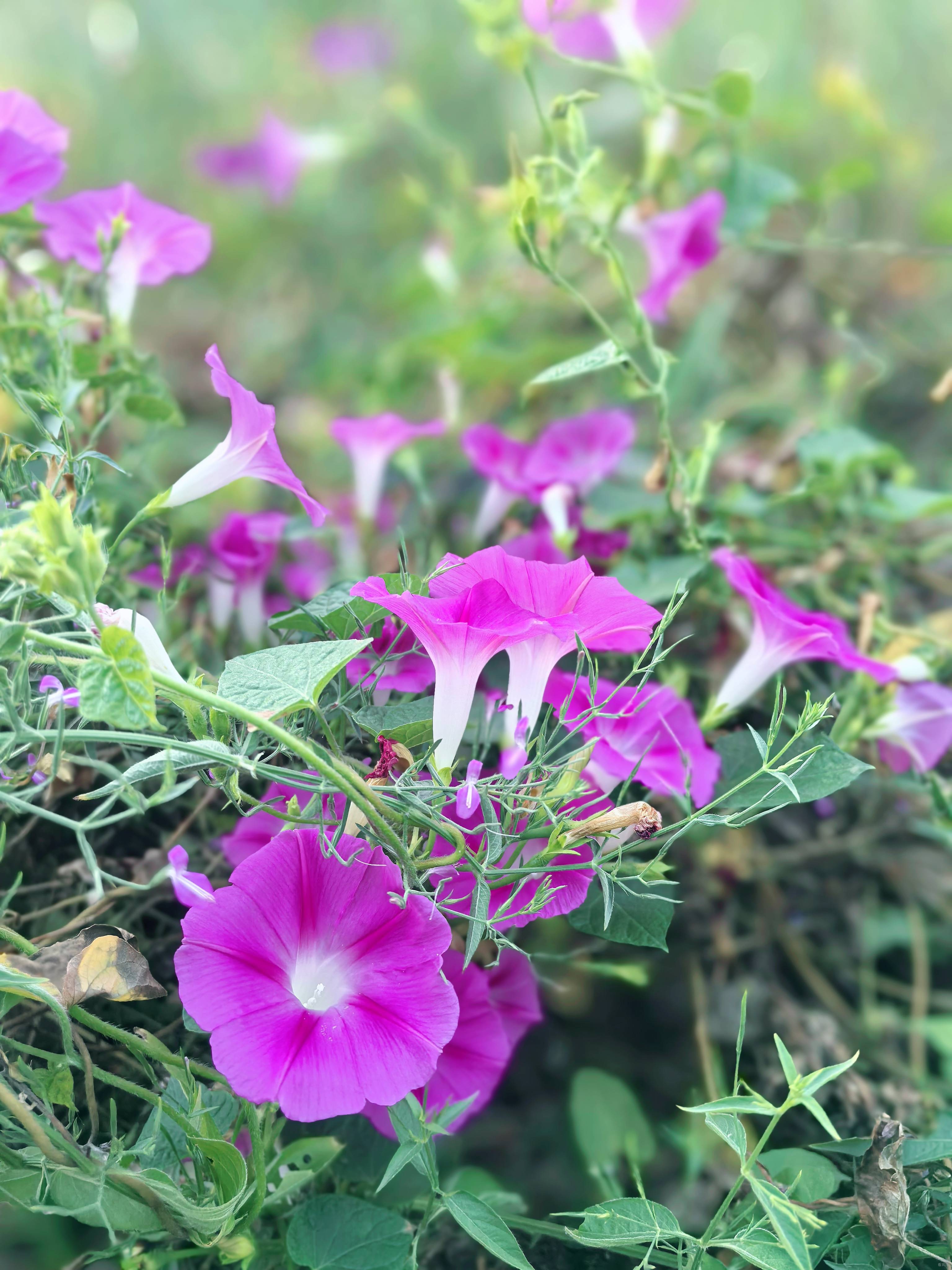 今日漫步至近郊山庄,眼前一片绿意盎然。一种野生植物猪泱泱肆意生长,轮状小叶灵动而长势迅猛,叶间小花点缀,黄色的小花宛如繁星点点。它们不屈不挠地向上生长,直至无法自立,便化作一片匍匐的绿毯。浑身的小沟刺,如同自然的铠甲,保护自己又不失生机。这野生植物是南美蓬漆菊,长势恍若夏季的葡萄藤,短短几日便蔓延至整个葡萄架,将绿意洒满山庄的每一个角落,诉说着生命的顽强。叶圣陶曾种过牵牛花,眼下阳台上缺花少朵的时候,叶圣陶为它浇水,把它盘整齐,但清藤条错综复杂的纠缠。牵牛花开花时,形状如同喇叭,色彩丰富,有淡蓝、浅紫或白色。它们在早晨盛开,早上太阳升高,花朵会逐渐合拢,晚上太阳落山时完全闭合。每天一回家,叶圣陶都去看看牵牛花。他说:“朝开而暮合,颜色亦渐褪而变白,虽历一时,尚舒展自在而无卷缩态,可谓善得生长之机矣。”让我感受到了生命的美好和坚韧,也让我明白了如何在困境中保持乐观和坚强。