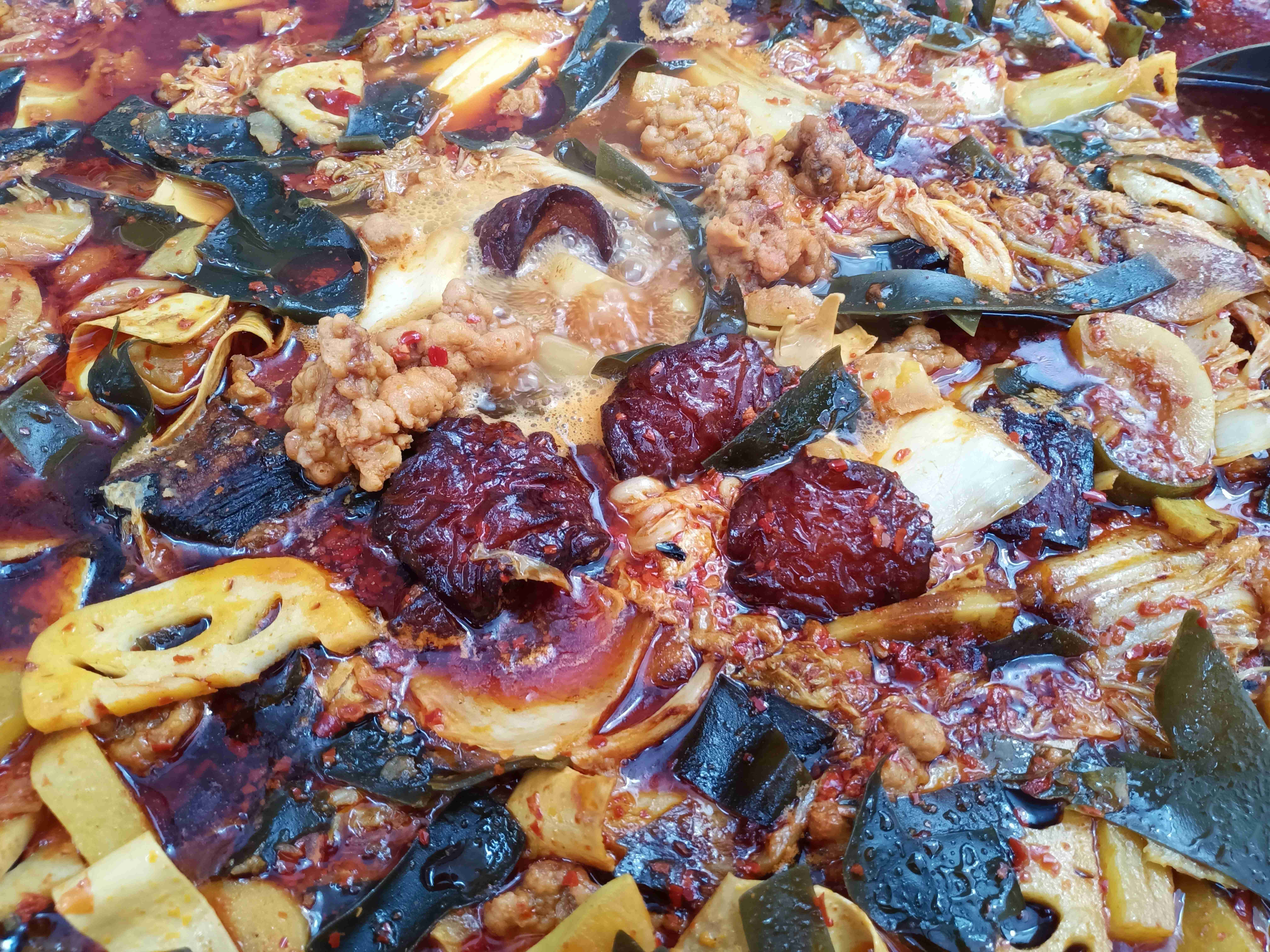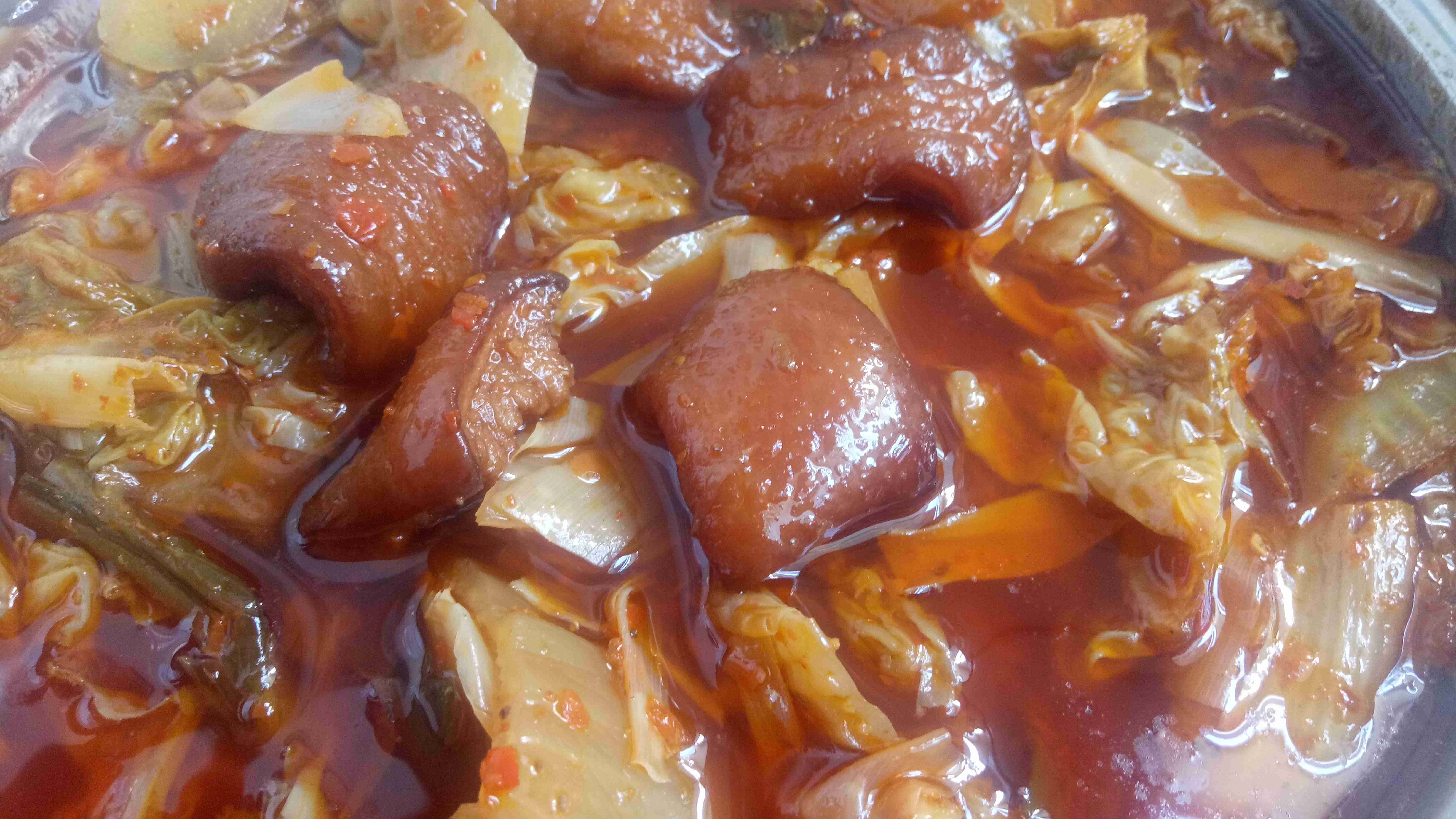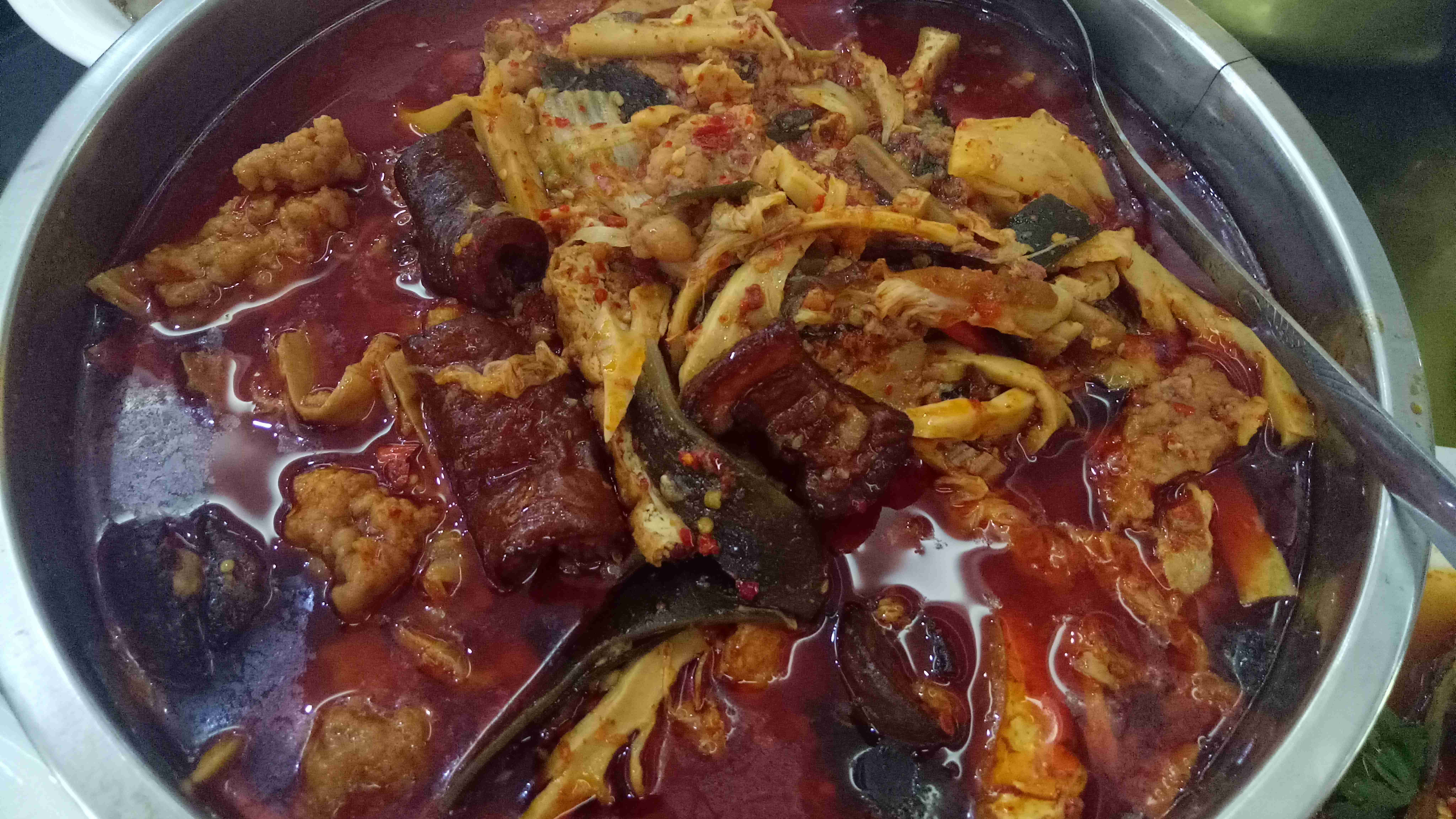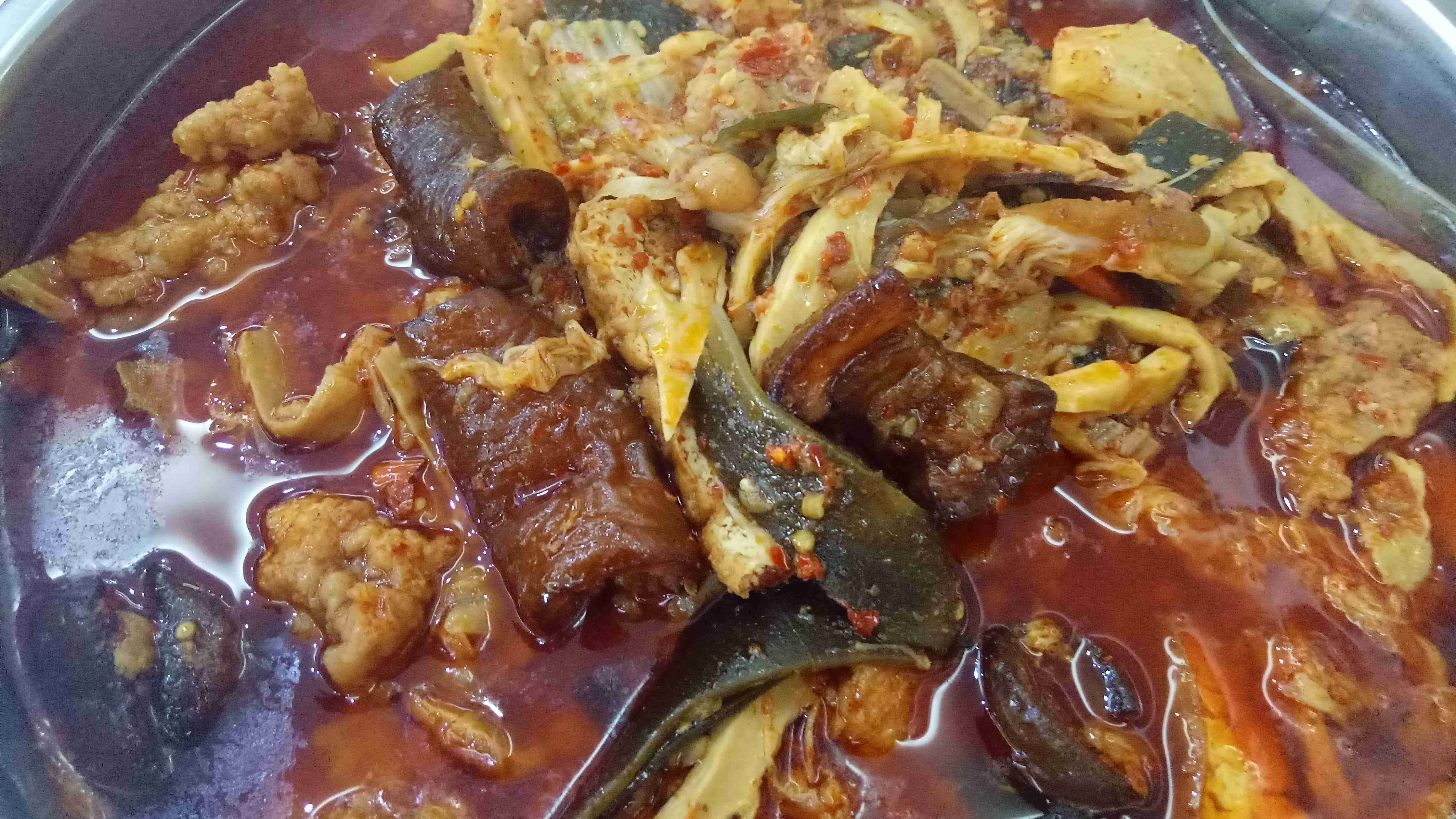 在旧时的传统里,民间嫁娶大礼往往多在十冬腊月农闲时节操办。正客过后,杂七杂八的剩菜,有的剩得多,有的余的少,但不论多少总不能就丢了,“过去”那是一个物质匮乏的岁月啊。于是一次偶然的为节约而冒险的厨艺尝试是,人们把正客过后的剩菜,黑皮、酥肉、煮竹笋海带、白豆、凉菜及凉菜汤汁,甚至蘸水全并在一锅收装。第二天早上重新过火煮热上桌再吃,绝了,经过一夜的寒冷和混合凉菜中的酸汤汁的发酵,这一锅大杂混居然爽口下饭极了。
