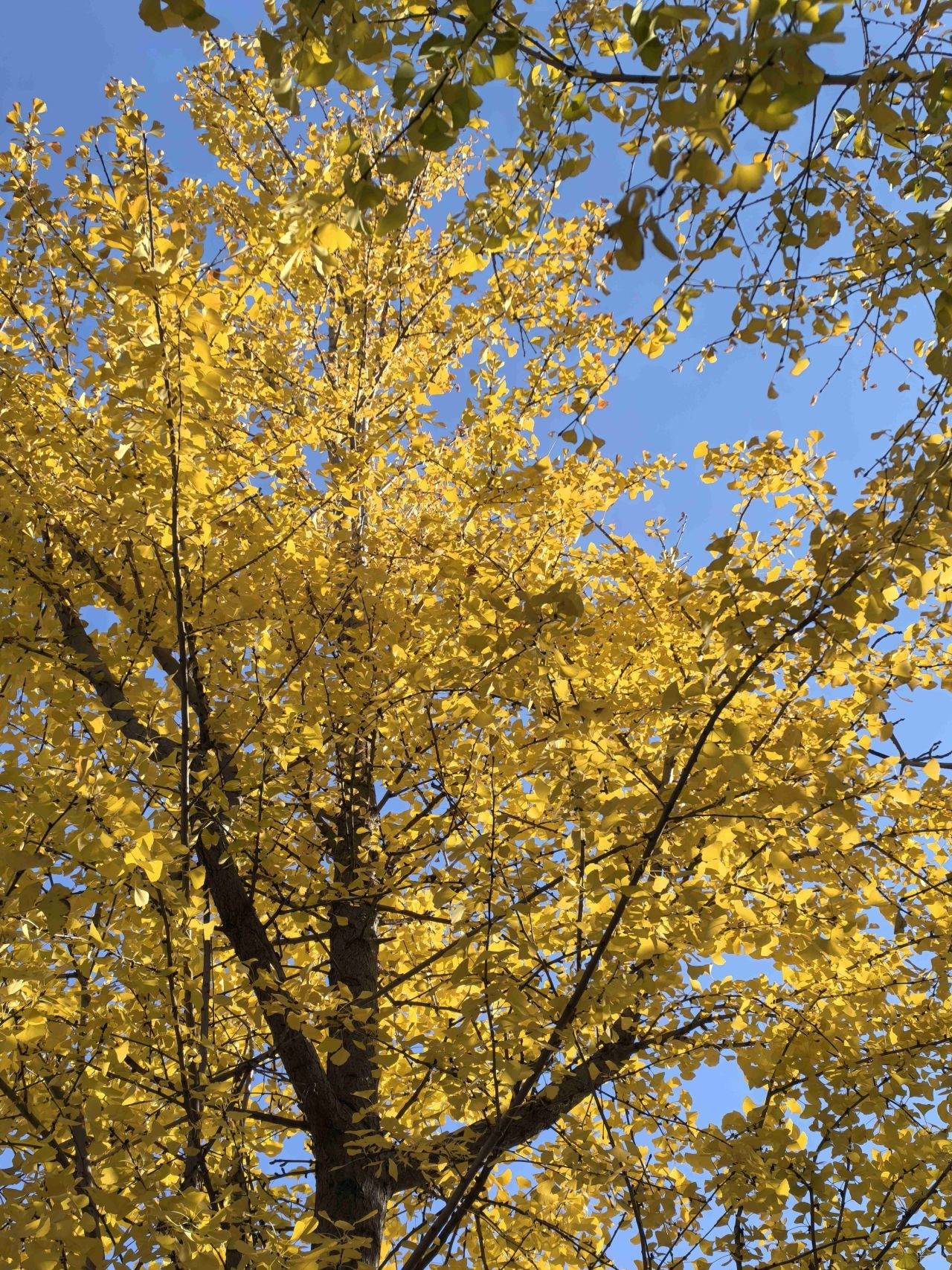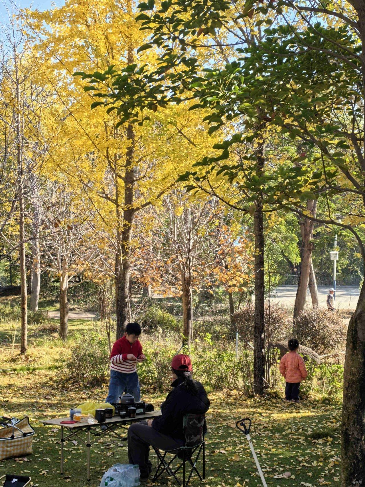 不远处的银杏林,是纳溪公园冬日里的另一番盛景。几株高大的银杏树,在阳光下泛着耀眼的金黄,树冠像撑开的金色巨伞,将天空都映得暖融融的。风一吹,金黄的银杏叶便簌簌落下,铺在地上,成了厚厚的金色地毯,踩上去软绵绵的,仿佛踏入了童话世界。清晨的银杏树下早已聚了不少游人,有人支起小桌,摆上茶点,在落叶纷飞中闲话家常;孩子们则撒欢儿地在杏叶地毯上奔跑、打滚,随手抛起一把银杏叶,叶片在晨光中洒洒落落,与他们的笑声一起,落进了冬日的温柔里。