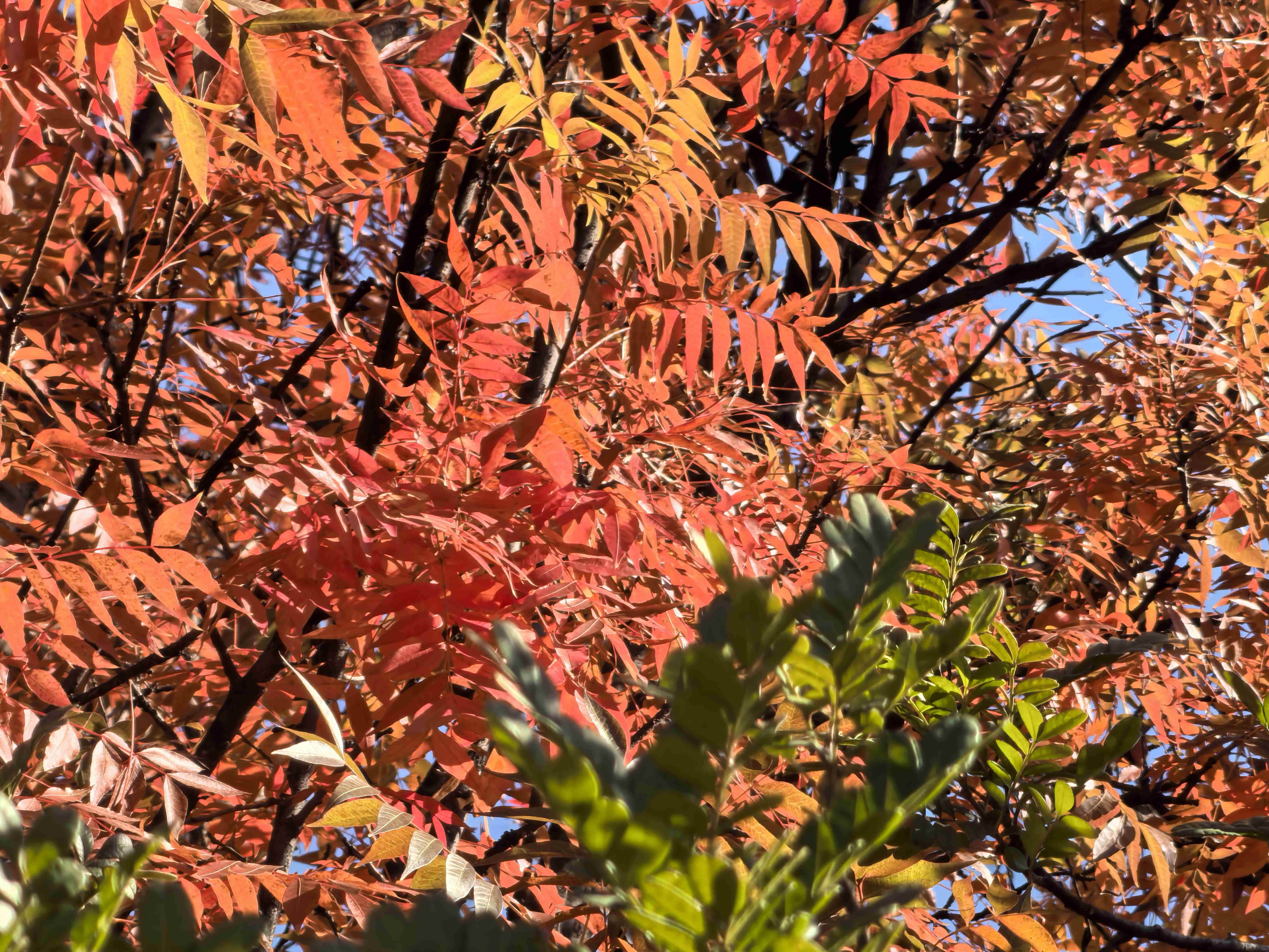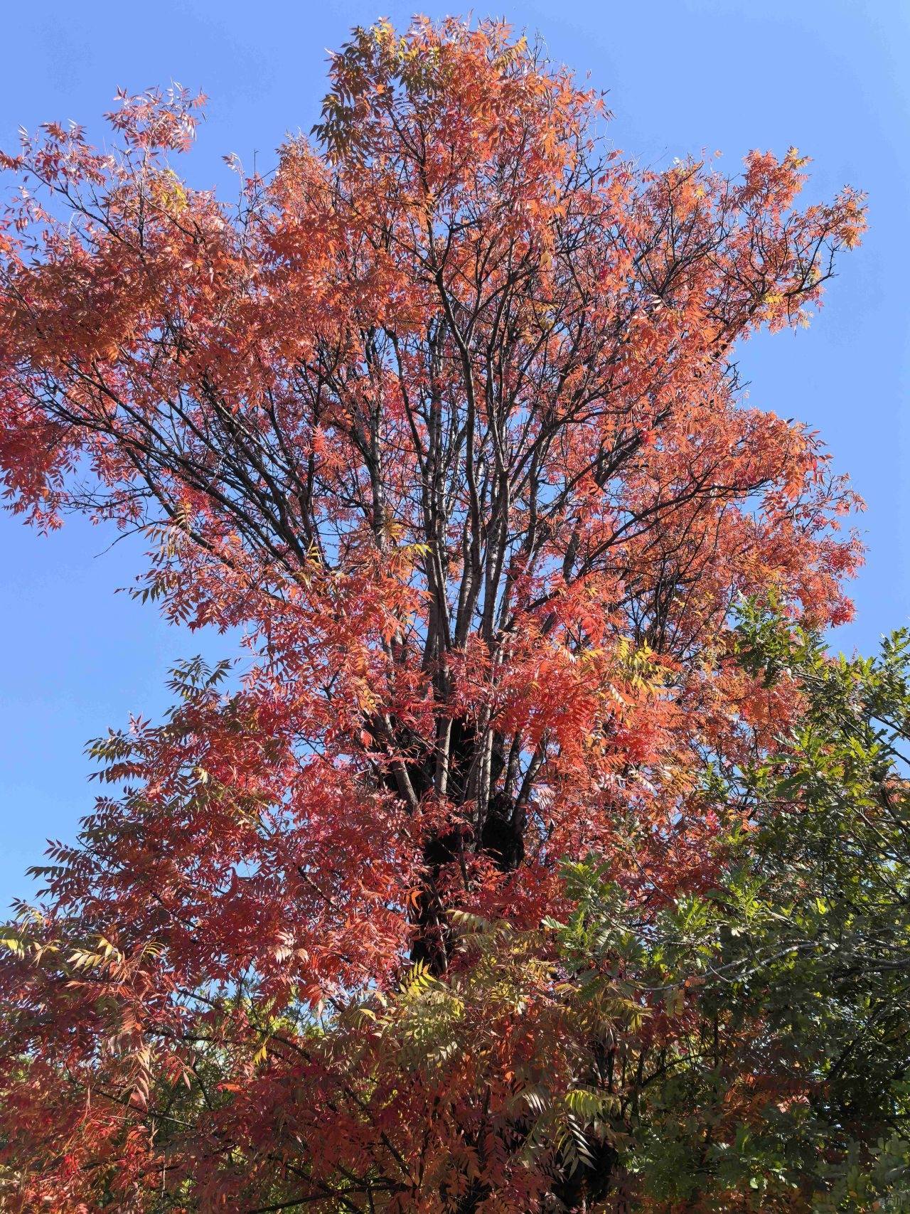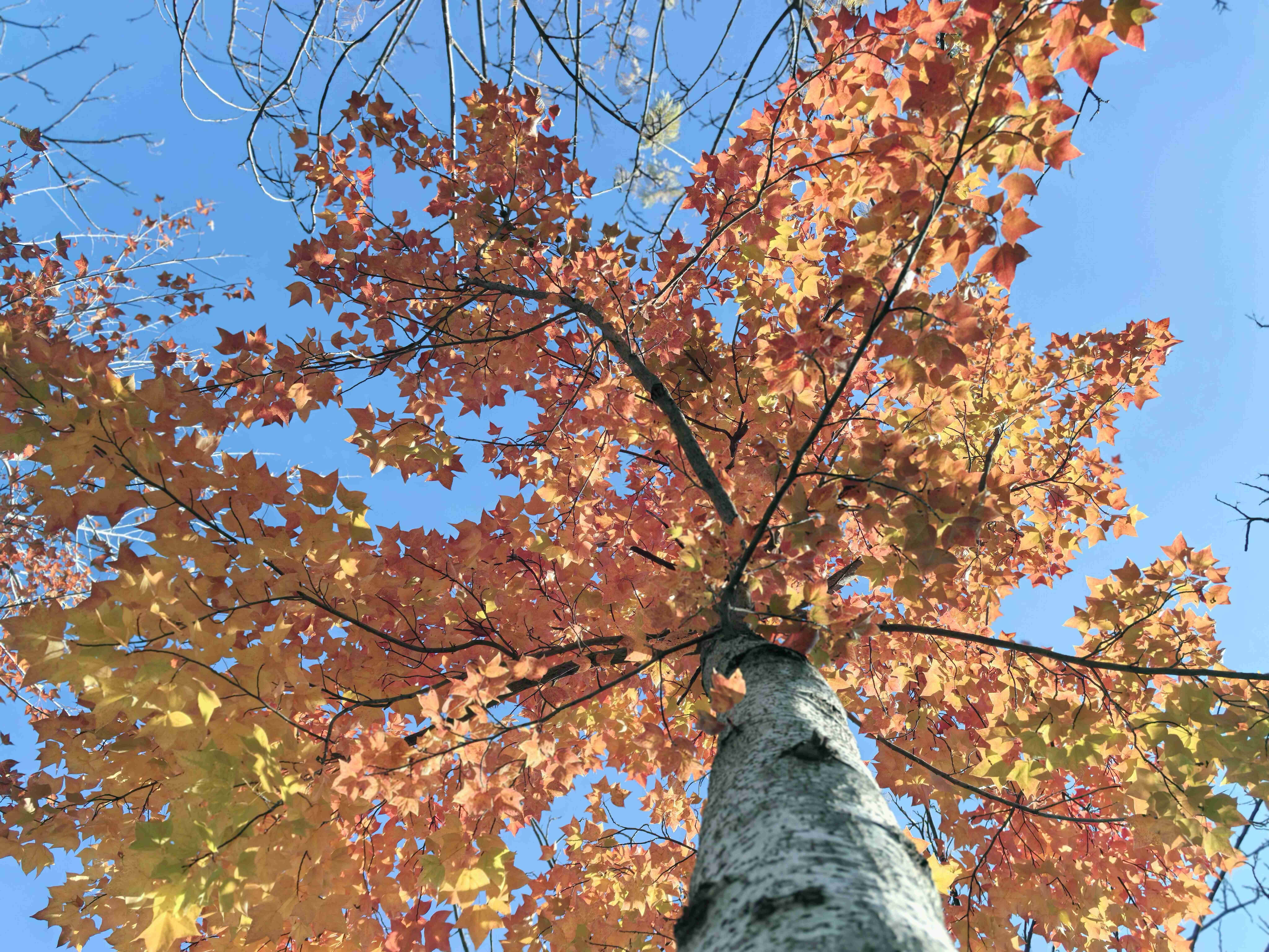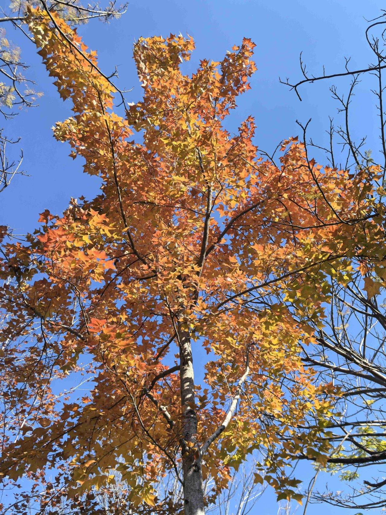 我沿着公园的步道慢慢走,才惊觉这里的绿化竟如此用心。各类树木高低错落、搭配规整,红枫的热烈、银杏的明媚、叶蓉的苍翠,还有不知名的灌木缀着橙黄的叶片,七彩斑斓的景致铺展开来,一步一景,景景如画。阳光渐渐升高,薄雾散尽,整个公园都亮堂起来,叶片上的露珠折射出细碎的光,像撒了满地的星星。