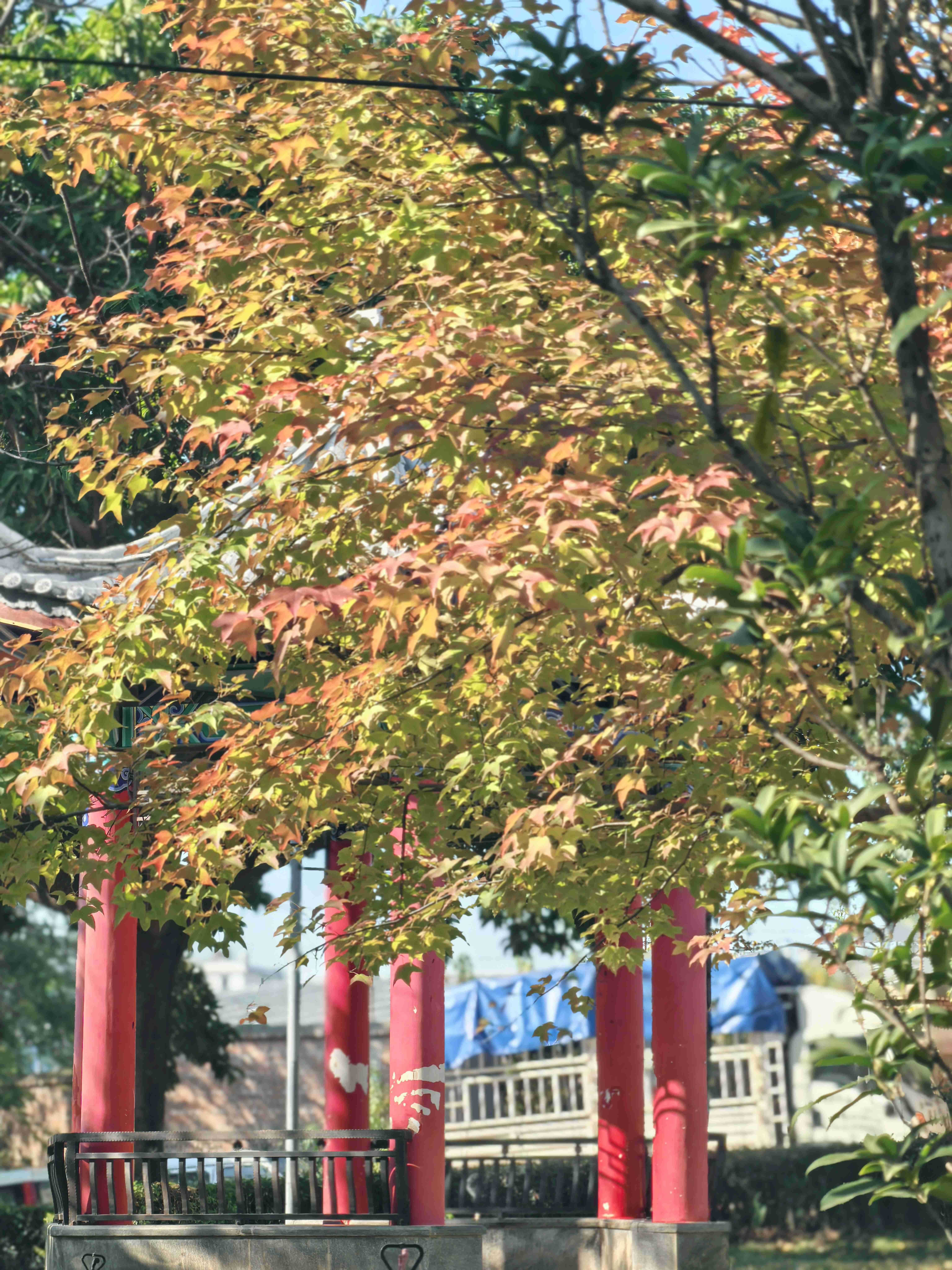 日头渐高,公园里的人越来越多,热闹却不喧嚣。孩子们的嬉笑声、大人们的交谈声、风吹树叶的沙沙声,汇成了纳溪公园的冬日乐章。我起身准备离开,回头望了一眼那片彩林,金黄的银杏与赤红的枫叶,在蓝天的映衬下愈发耀眼。