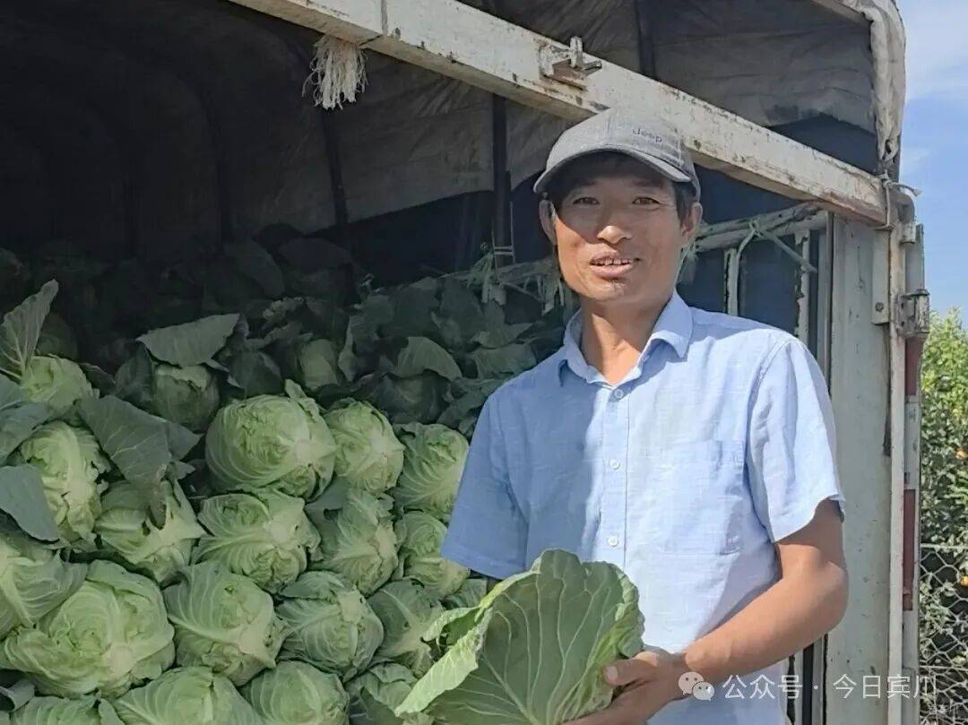 “今年包菜行情不错,田间收购价能到每吨3500元左右。我家今年种了四亩包菜,亩产在6吨至8吨,预计收入5万多元。”力角镇大会村委会三宝庄的农户李杨举笑着说道。他家的葡萄地里,包菜长得格外喜人,绿油油的菜叶包裹得紧实饱满,工人正忙着采摘、运输、装车,一派忙碌的丰收景象。