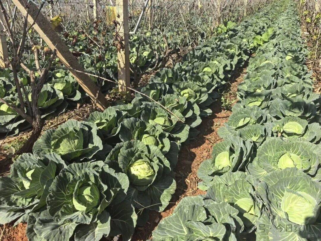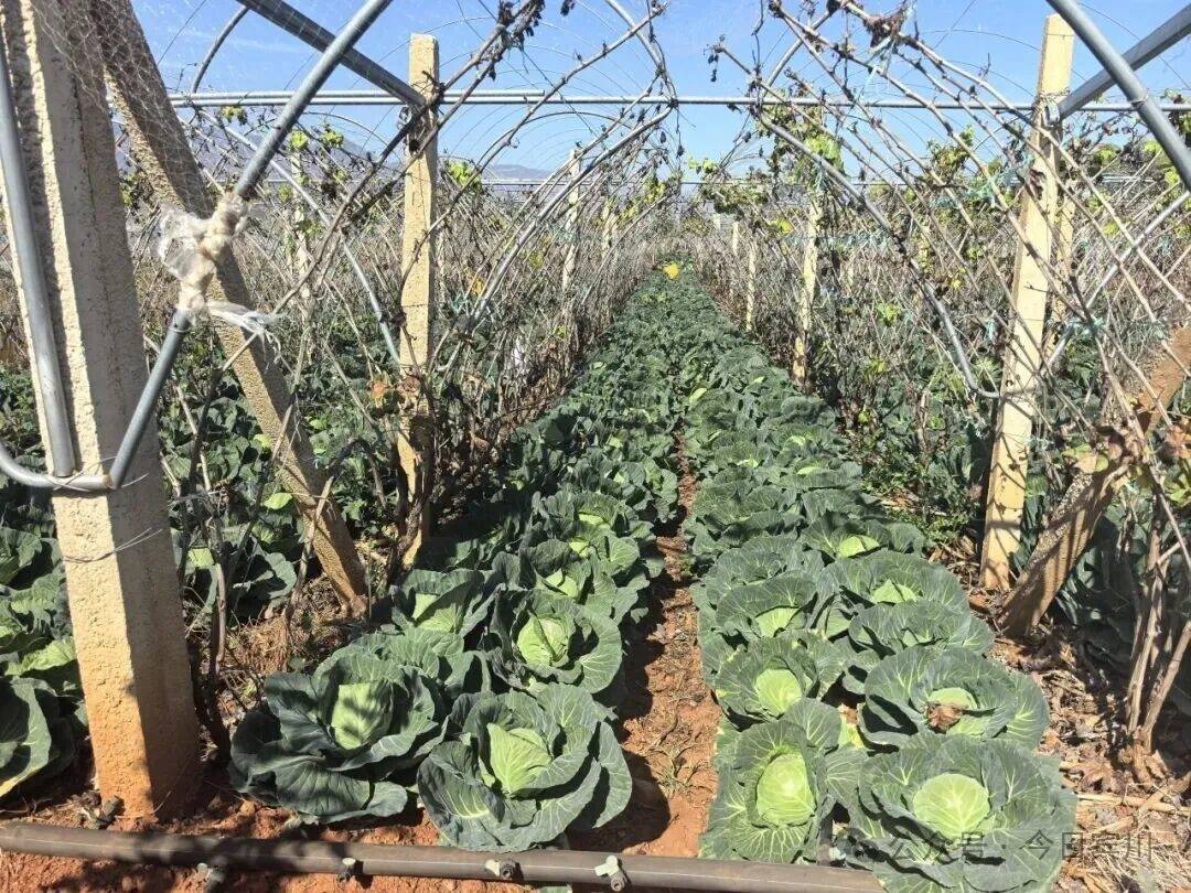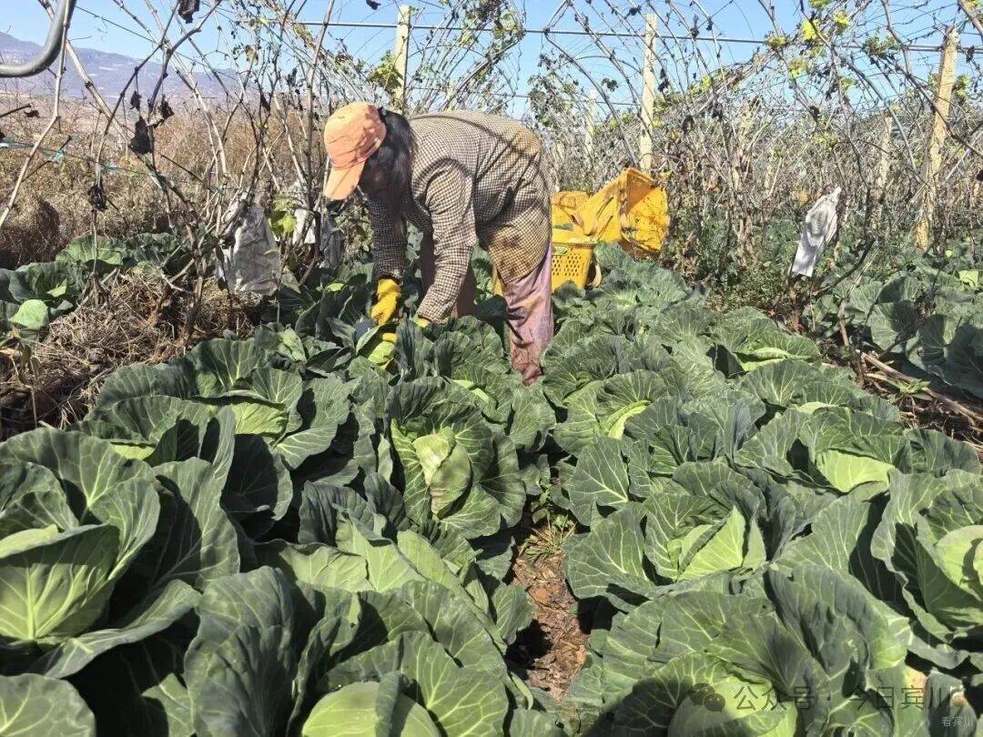力角镇光照充足、昼夜温差大,是典型的干热河谷气候,很适合发展高原特色农业。葡萄采收期主要集中在夏秋季节,在冬季葡萄进入休眠期后土地容易出现闲置,勤劳的农民便巧妙利用这个“空档期”,在葡萄田间套种上生长周期短、管理相对简单的包菜、贡菜、豌豆等冬早蔬菜。独特的气候优势加上葡萄架营造的微域环境,使得产出的蔬菜品相好、口感清甜脆嫩,在市场上格外受欢迎。