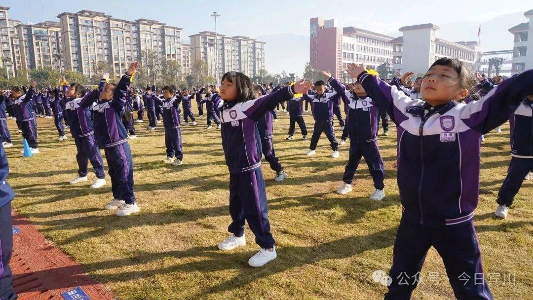 当天,各年级依次进行了广播操《七彩阳光》展示。同学们统一着装、队列整齐、动作有力,在明快的节奏中展现出阳光自信、团结向上的集体风采,赢得了阵阵掌声。