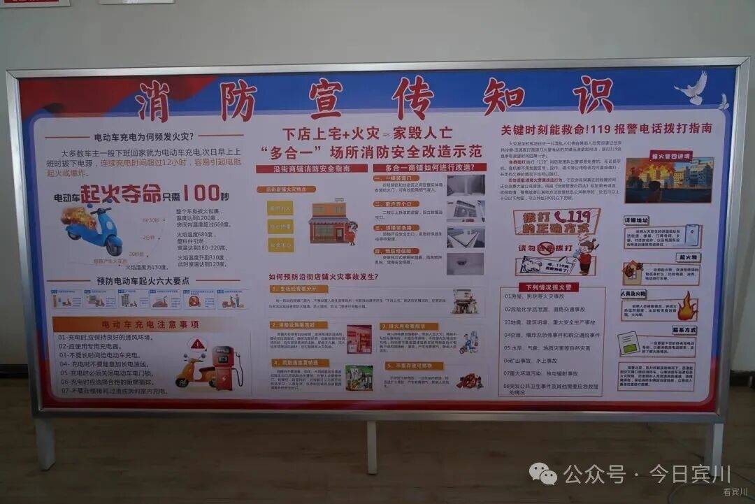 2025年,宾川县消防救援大队在金牛镇牛井社区设置了消防四有(有宣传展板、有多媒体设备、有示范教学器材、有宣传队伍)科普宣传点。“四有”科普宣传点的建立突破了传统消防宣传的局限,将消防安全教育真正融入社区日常,给居民打造了“家门口的消防课堂”。