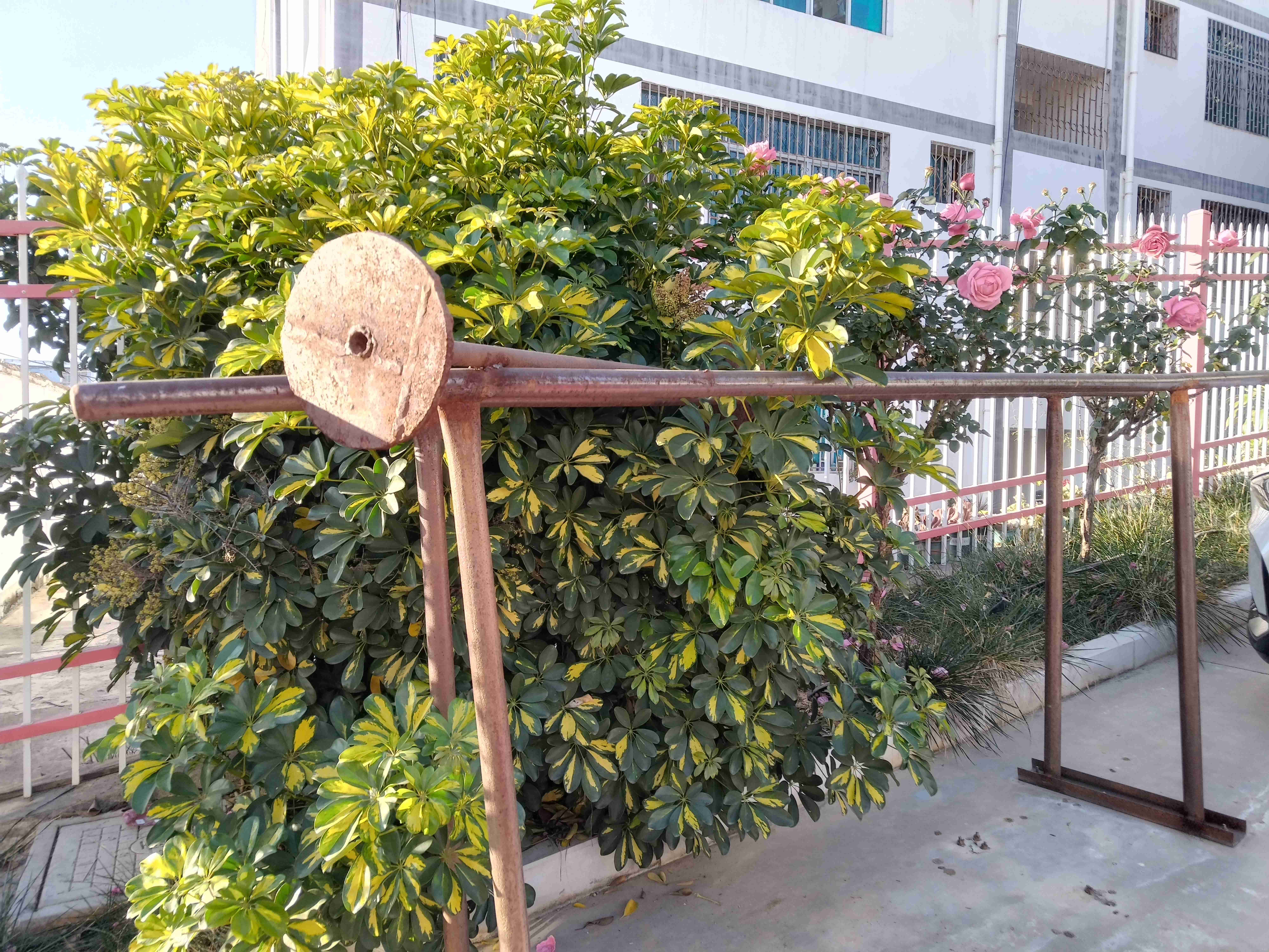 纳溪河畔的风,总是带着水汽,漫过宾川三中的围墙,轻抚着球场边那副老双杠。铁制的杠身早已没了当年的锃亮,锈迹像岁月的纹路,深浅不一地刻在上面,杆身被磨得泛出温润的包浆,黄绿相间的鹅掌柴顺着杆身攀援,粉月季从底座的缝隙里探出头,把这副70年代自制的旧物,衬得既有沧桑感,又藏着蓬勃的生机,把“沧桑”和“鲜活”揉在了一起。它就像一位沉默的老者,立在那里五十余年,见证着球场变换模样,听青春来来往往。