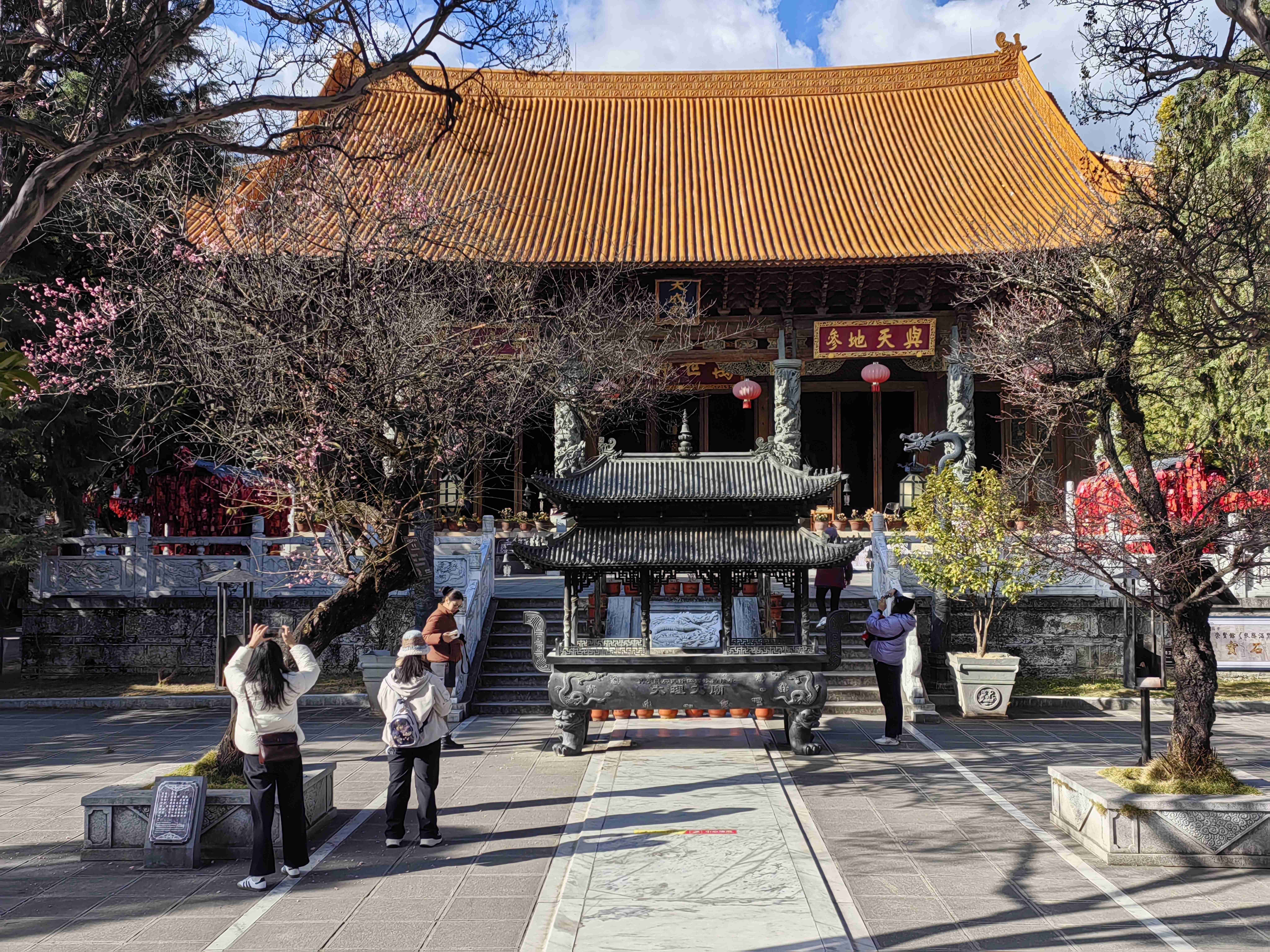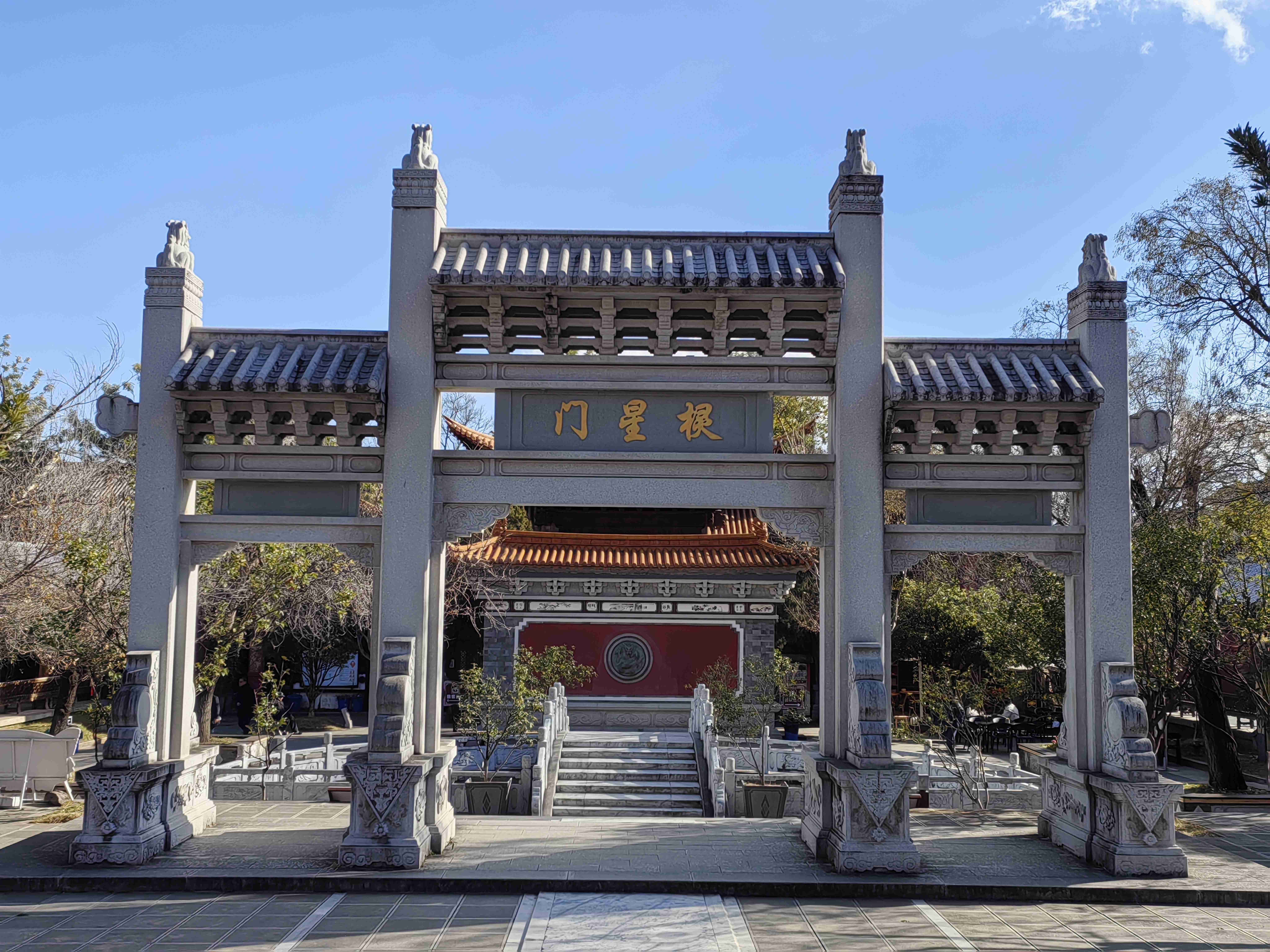 从五华楼下来,继续前行,便来到了大理文庙。这座始建于元代的建筑,曾历经火灾与迁徙,2014年重建后,重现了昔日的庄严。文庙内,弘道门、棂星门、大成殿依次排列在中轴线上,“万世师表”的牌匾高悬殿内,孔子像与“四配”“十二哲”塑像庄严肃穆。在这里,仿佛能感受到古代学子们诵读经书的琅琅之声,体会到大理作为“文献名邦”的深厚底蕴。