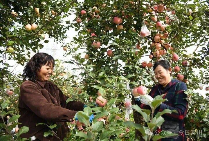 2025年10月17日,果农在陕西省延安市宝塔区桥沟街道烟洞沟村采收苹果。新华社记者 张博文 摄