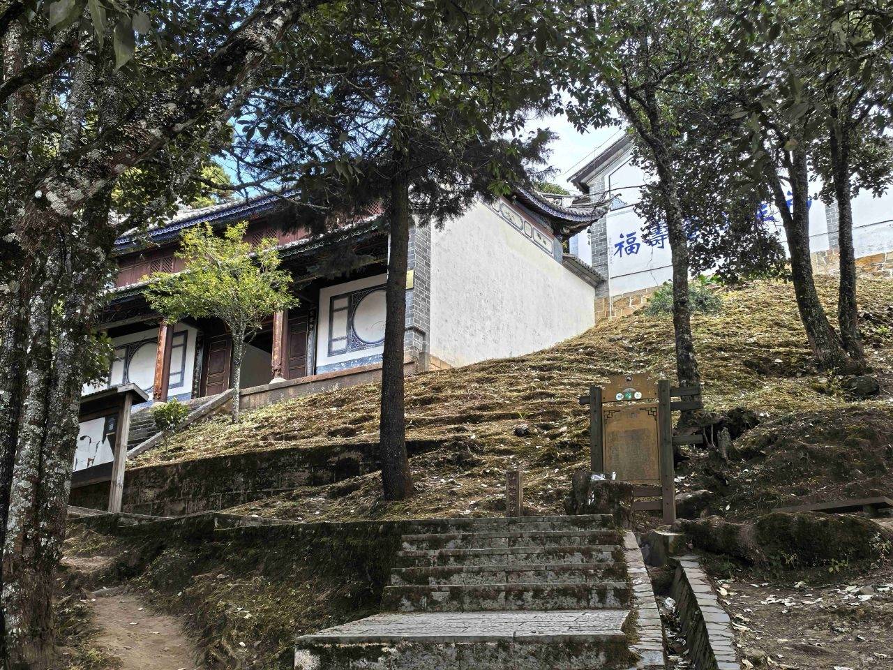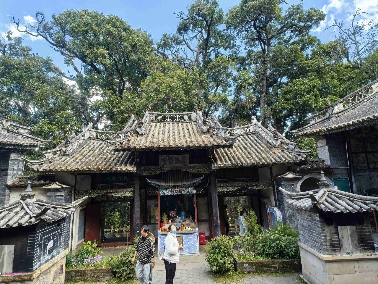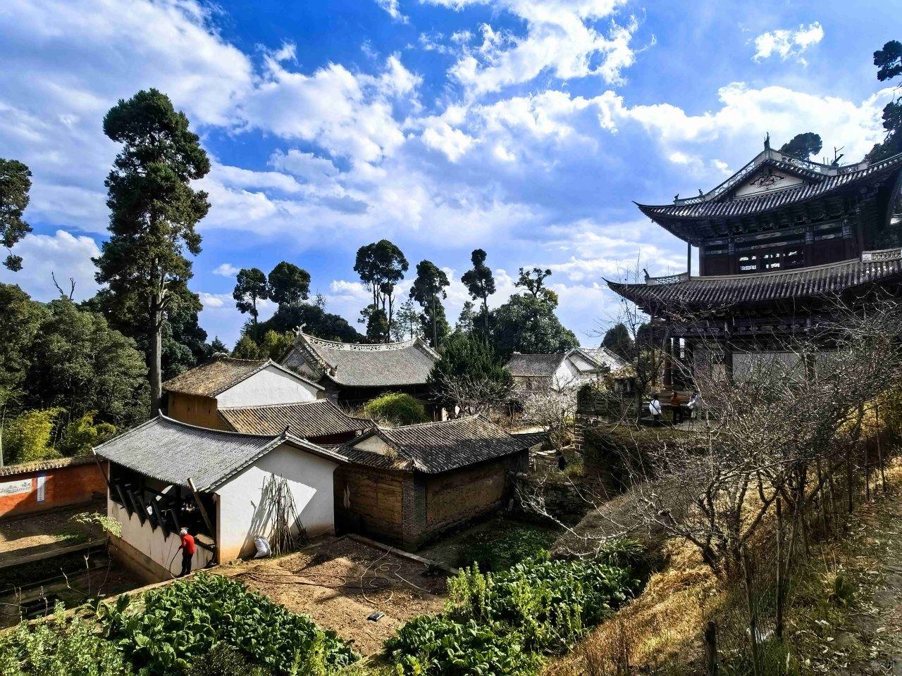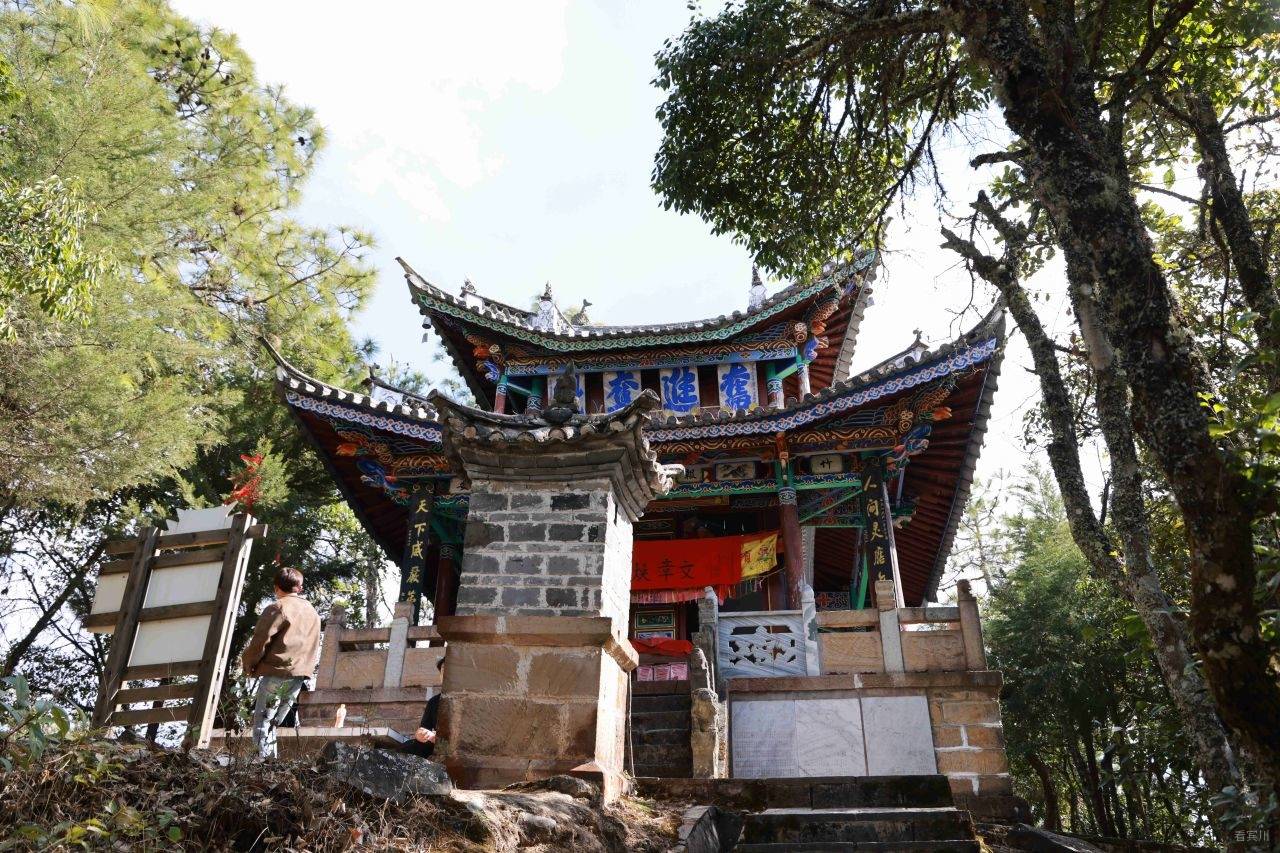 我们选择从前山而上,道路相对平缓,即便到了难行路段,也可随时折返,稳妥为先。缓步前行,不知不觉便到了南诏土主庙。这里是南诏彝族文化的核心之地,是彝族同胞寻根祭祖的圣地,每年庙会,歌舞喧天,香火鼎盛,承载着千年的民族记忆。