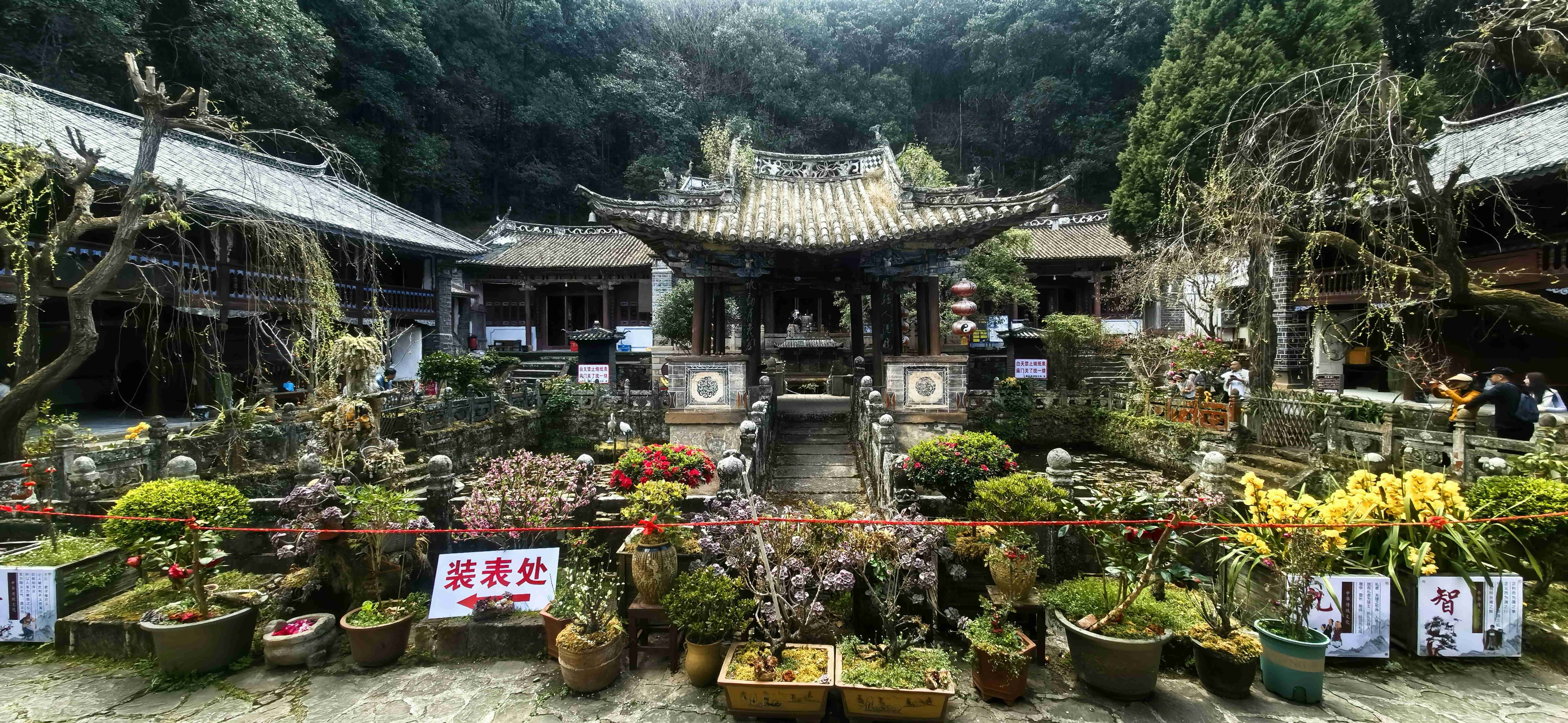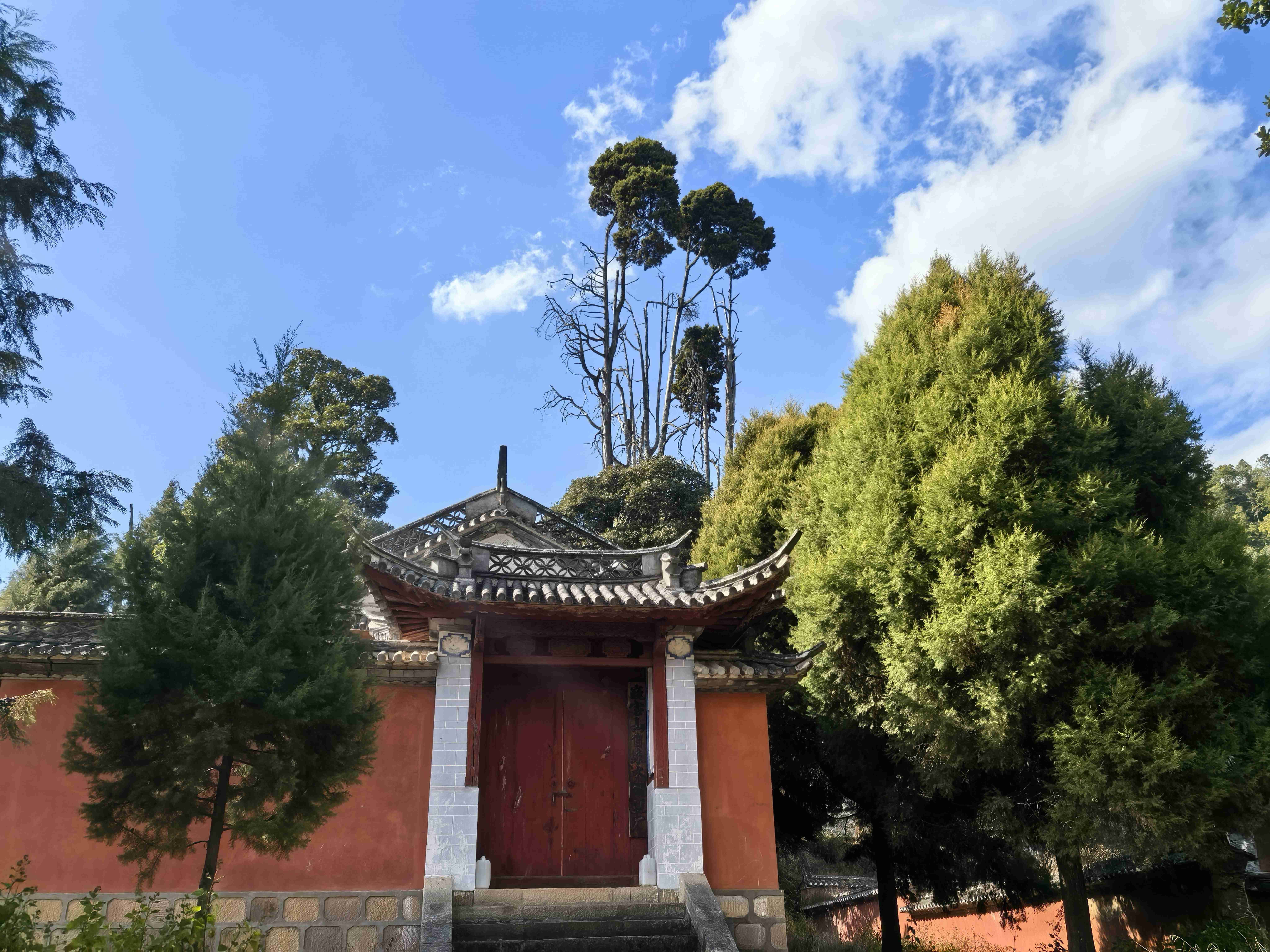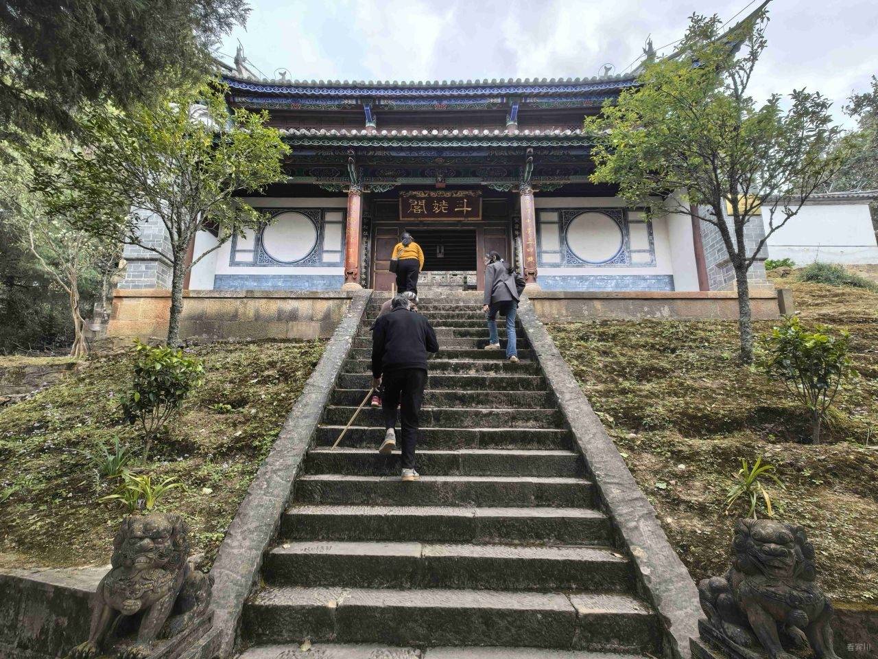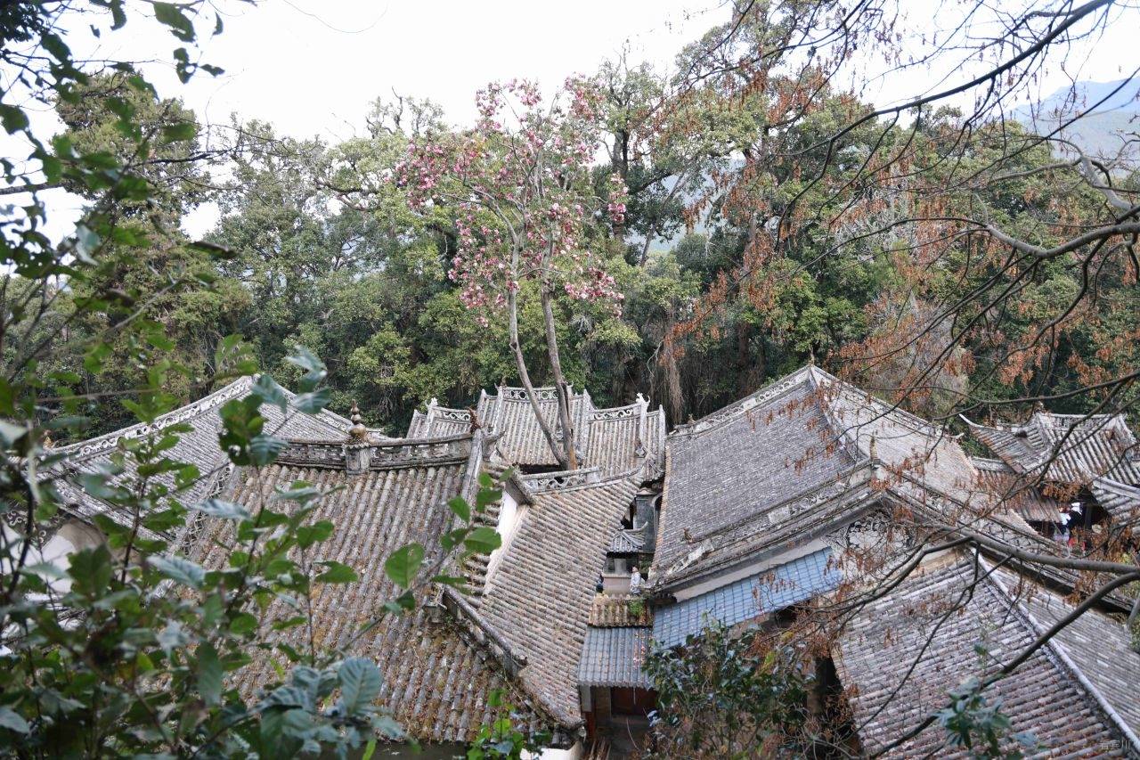 我们选择从前山而上,道路相对平缓,即便到了难行路段,也可随时折返,稳妥为先。缓步前行,不知不觉便到了南诏土主庙。这里是南诏彝族文化的核心之地,是彝族同胞寻根祭祖的圣地,每年庙会,歌舞喧天,香火鼎盛,承载着千年的民族记忆。