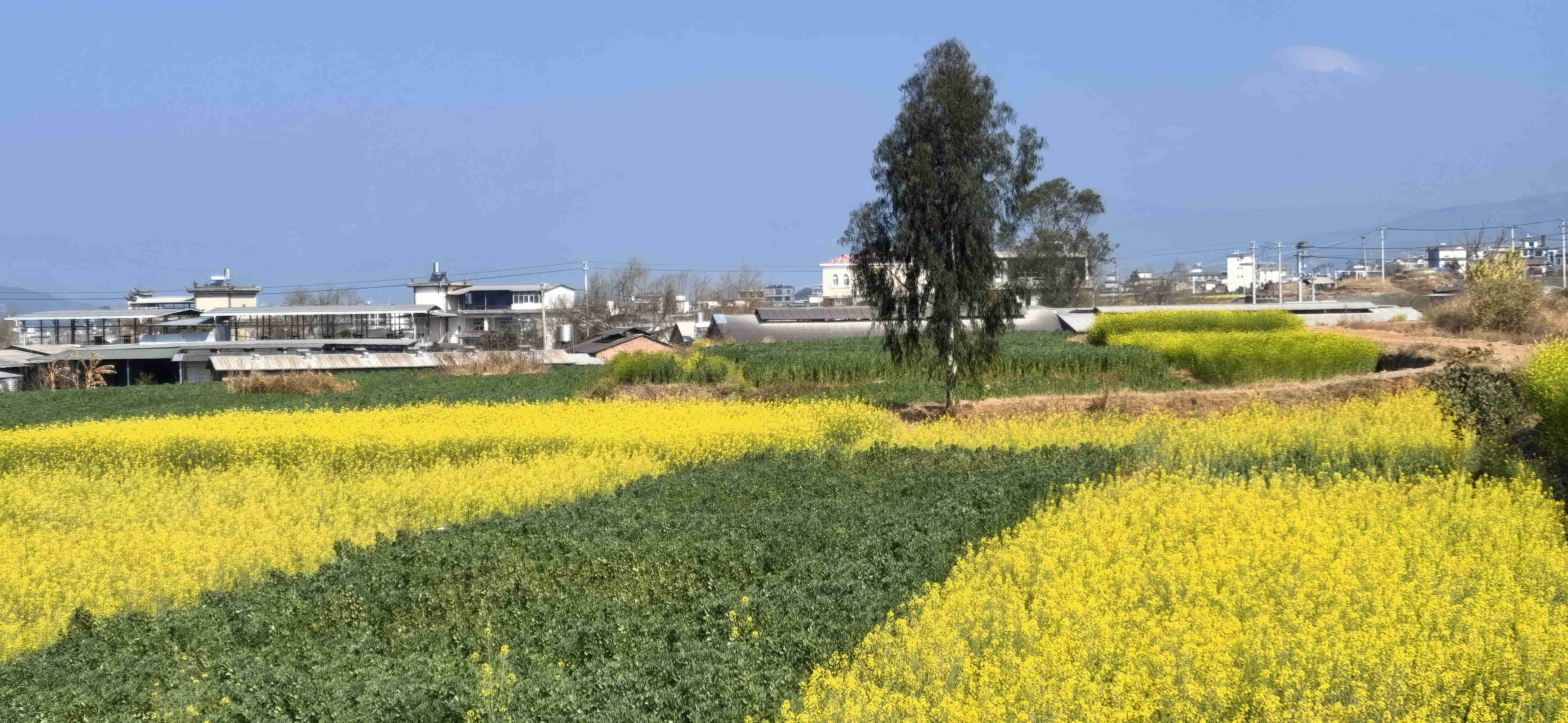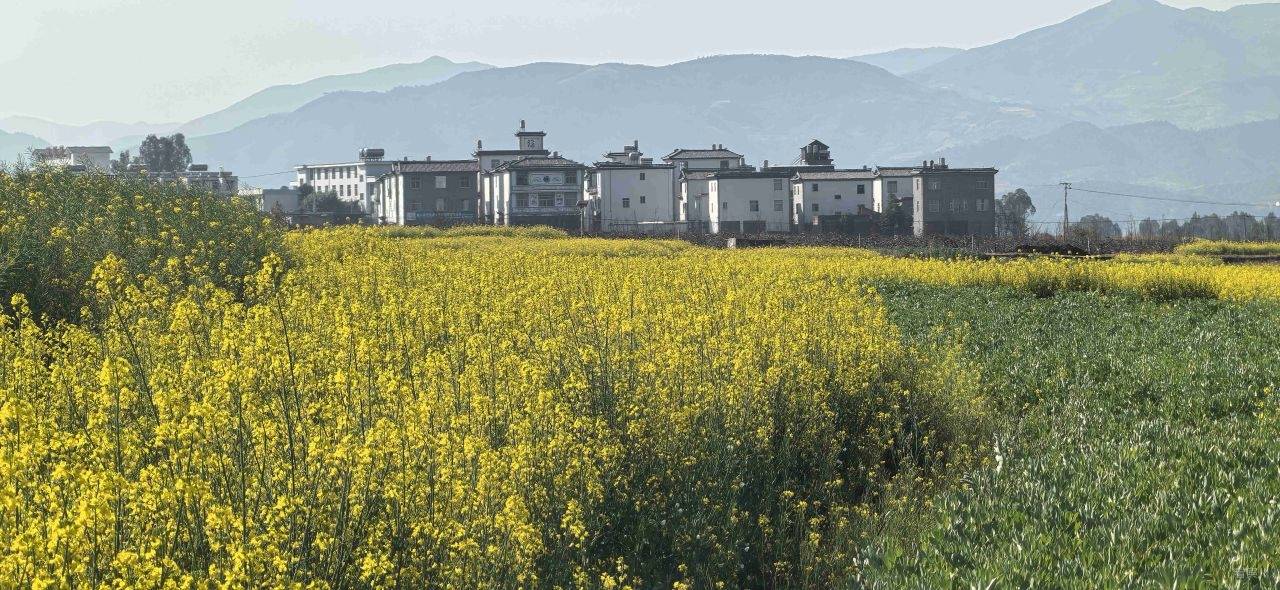 正月初六清晨,简单收拾行囊,我们便向巍山出发。如今宾川至巍山全程高速,平坦顺畅,素来容易晕车的母亲,这一路竟安稳舒适,没有丝毫不适。车出巍山北收费站,眼前豁然开朗,油菜花正值盛花期,连片金黄铺向远方,风过处,花浪翻滚,一个个白墙灰瓦的村庄,点缀在金色海洋之中,如画一般。