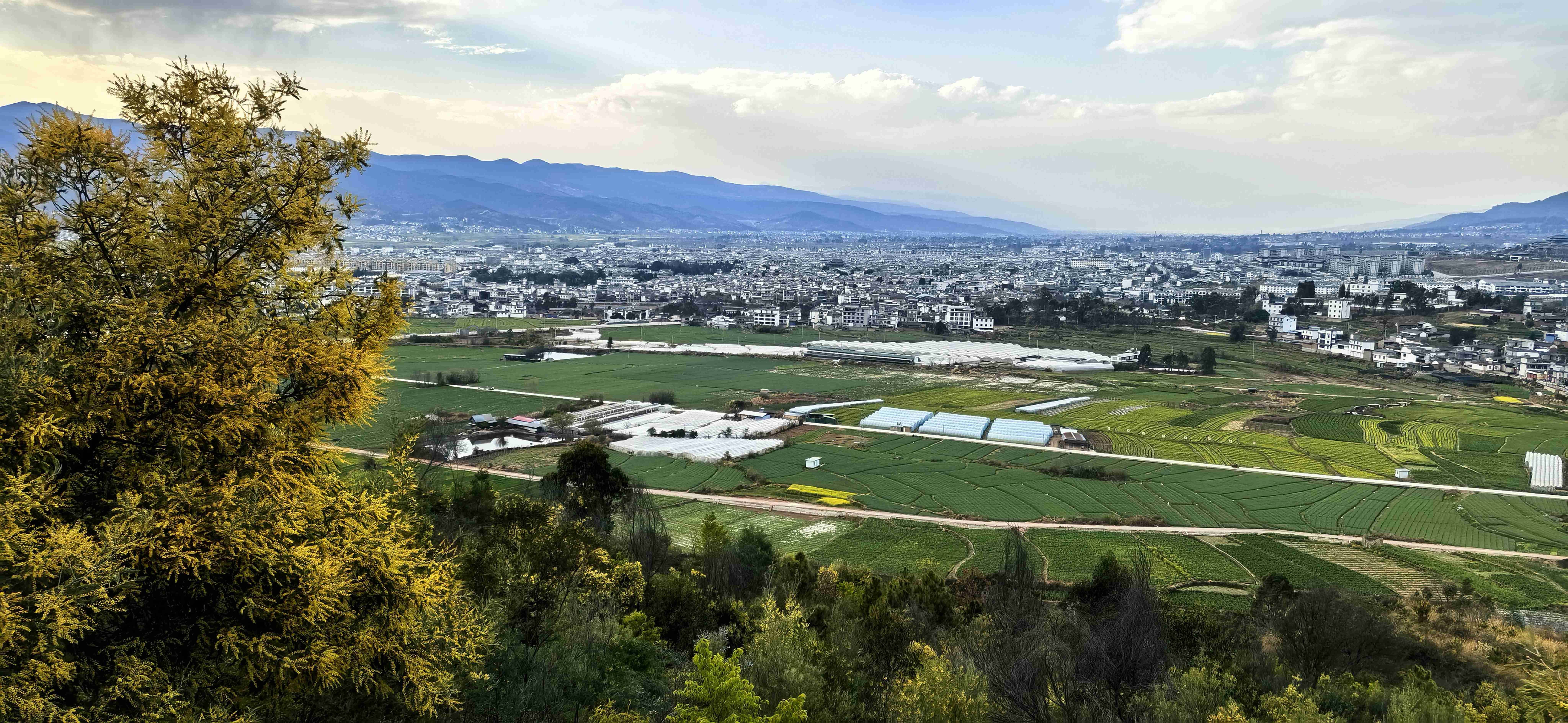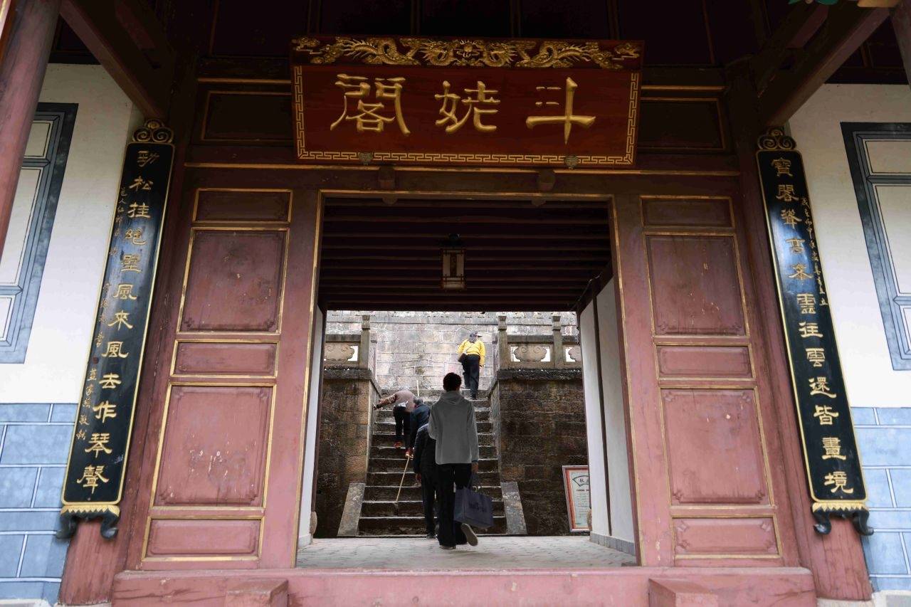 站在斗姥阁,近观林海茫茫,宫观错落;远眺巍山坝子,城方如印,田畴似棋,江河如带,锦绣河山,尽收眼底。