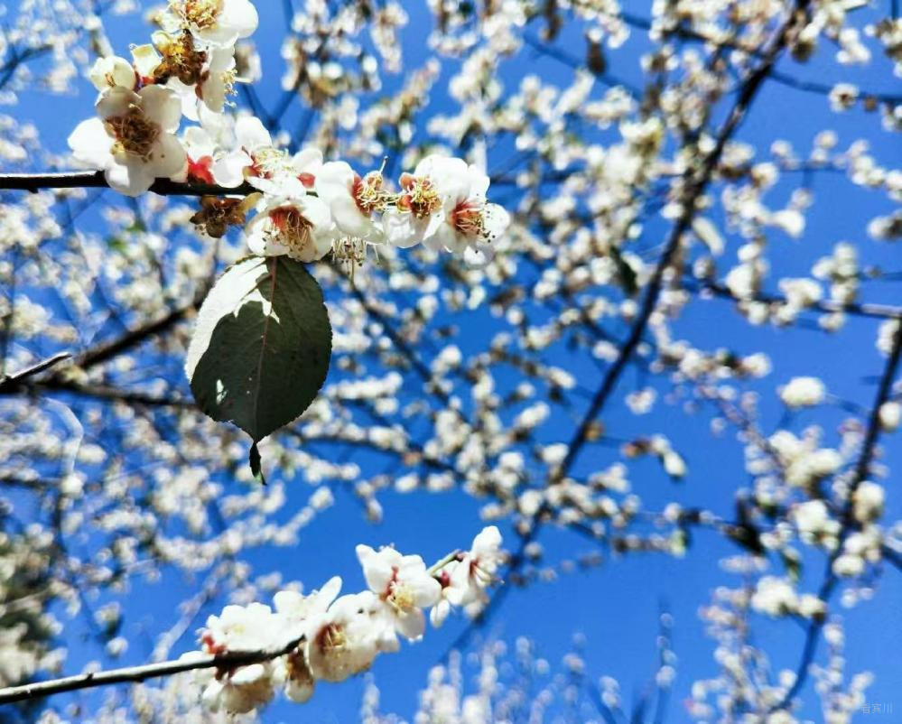 那梅花像是被苍山的雪水染过似的,雪白夺目。渐渐走近了,才发现有几朵梅花还是含苞待放的,那花苞上还有个小孔,像一个瓶盖子口,又如一个羞涩的小女孩的脸;有几朵是刚探头露脸的花骨朵儿;还有几朵已经完全舒展了花瓣。寒凝大地,它却顽强地开出一朵朵美丽的花,千姿百态,灿烂芬芳,像白云装扮着天空,点缀着白草龙村的残冬。即使在如此凋零的季节,依然保持着本色,开成了自己的模样。粉嫩的花蕊散发着一阵阵清香,令人心旷神怡。“遥知不是雪,为有暗香来”,那香气不是其他花能媲美的。茉莉花香气太浓,甚至有些俗气;菊花香太淡,有些隐逸;至于牡丹芍药,似乎又太华贵了。只有梅花这阵阵暗香,最合山里人的心意,使人神清气爽。我舍不得离开,掏出手机拍了好些照片留念。