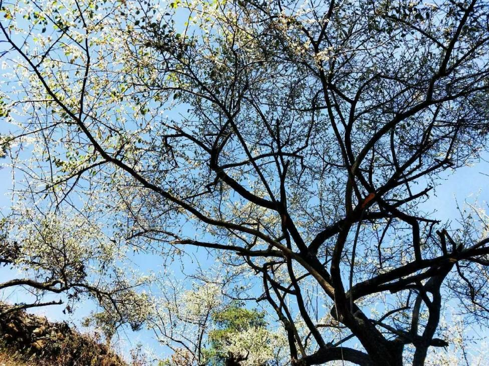 不知不觉间,就走到了自家的核桃林。白草龙村的核桃树本就是家家户户的标配,放眼望去,所有核桃树都只剩下光秃秃的枝干。这时我才意识到,原来它是将满树的叶子幻成了一封封信,都寄回给了大地母亲。继续往林子里走,远远地,就望见一株株梅树笔直挺立在核桃树边上——那是爸爸几年前特意移栽的,就爱这冬日里的一抹亮色。