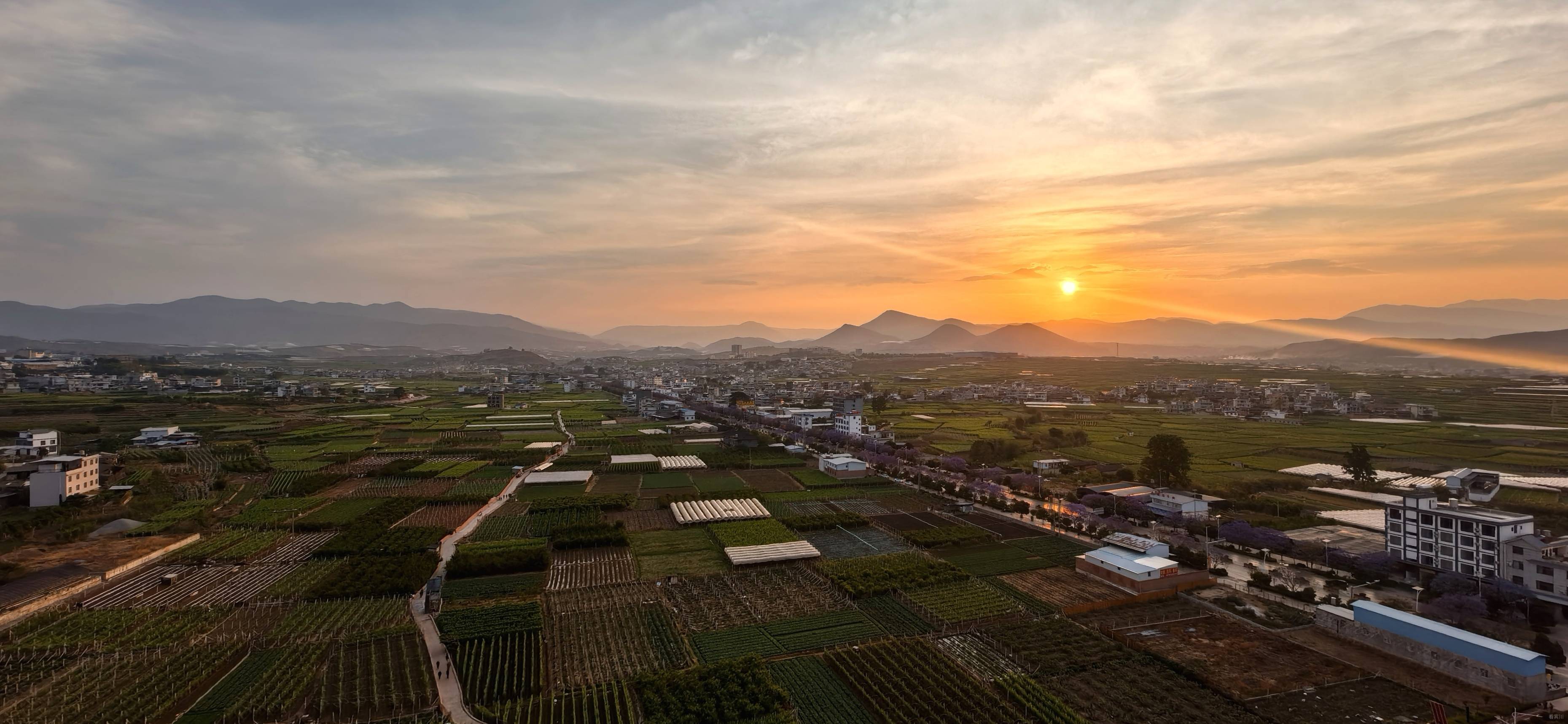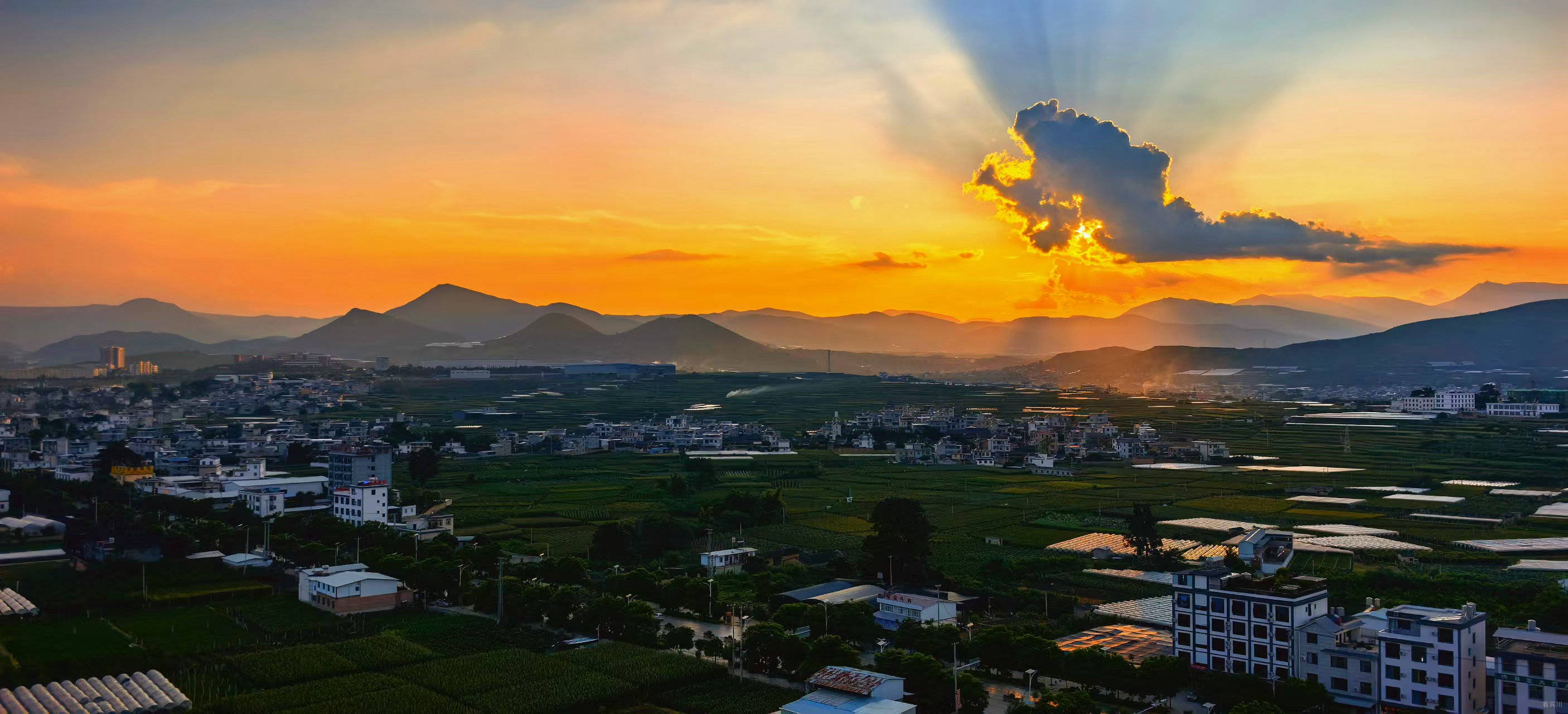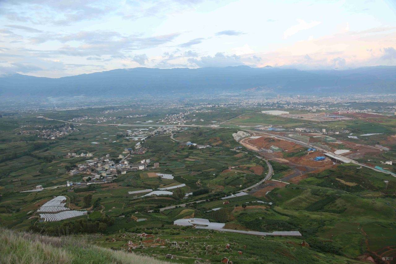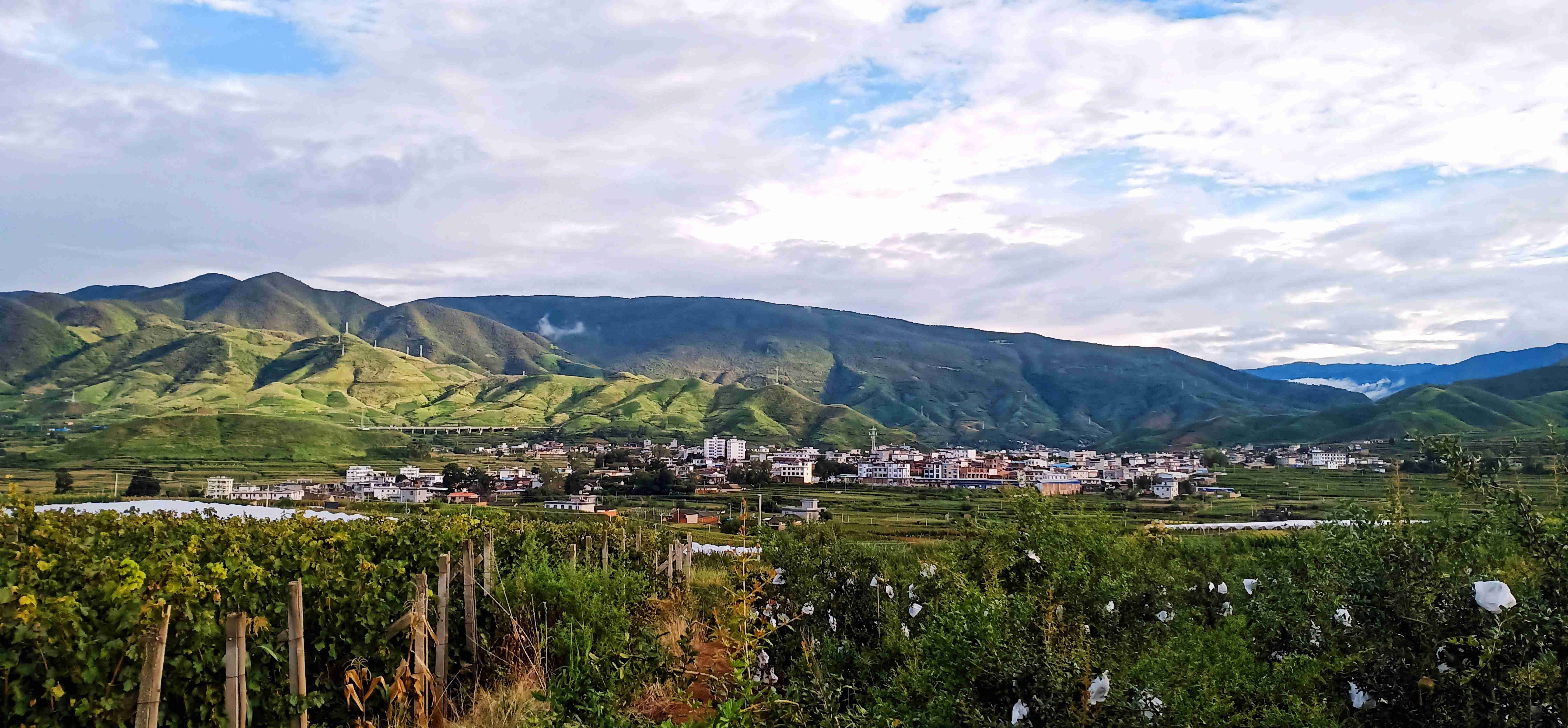 转身向东,宾川坝子全貌一览无余。高楼林立,鳞次栉比的县城,宛若一艘扬帆起航的大船,承载着宾川人的梦想,奋勇前行;四周,葡萄园、柑橘园连片蔓延,绿意盎然,星星点点的村落散落其间,炊烟袅袅,烟火气浓,勾勒出一幅宜居宜业的乡村画卷。