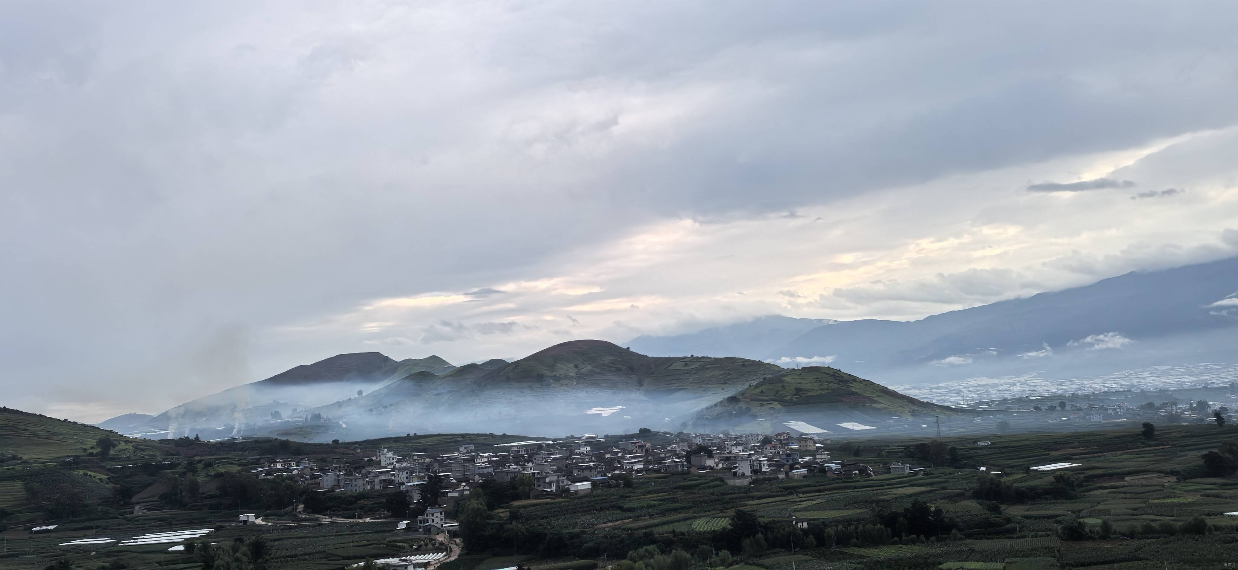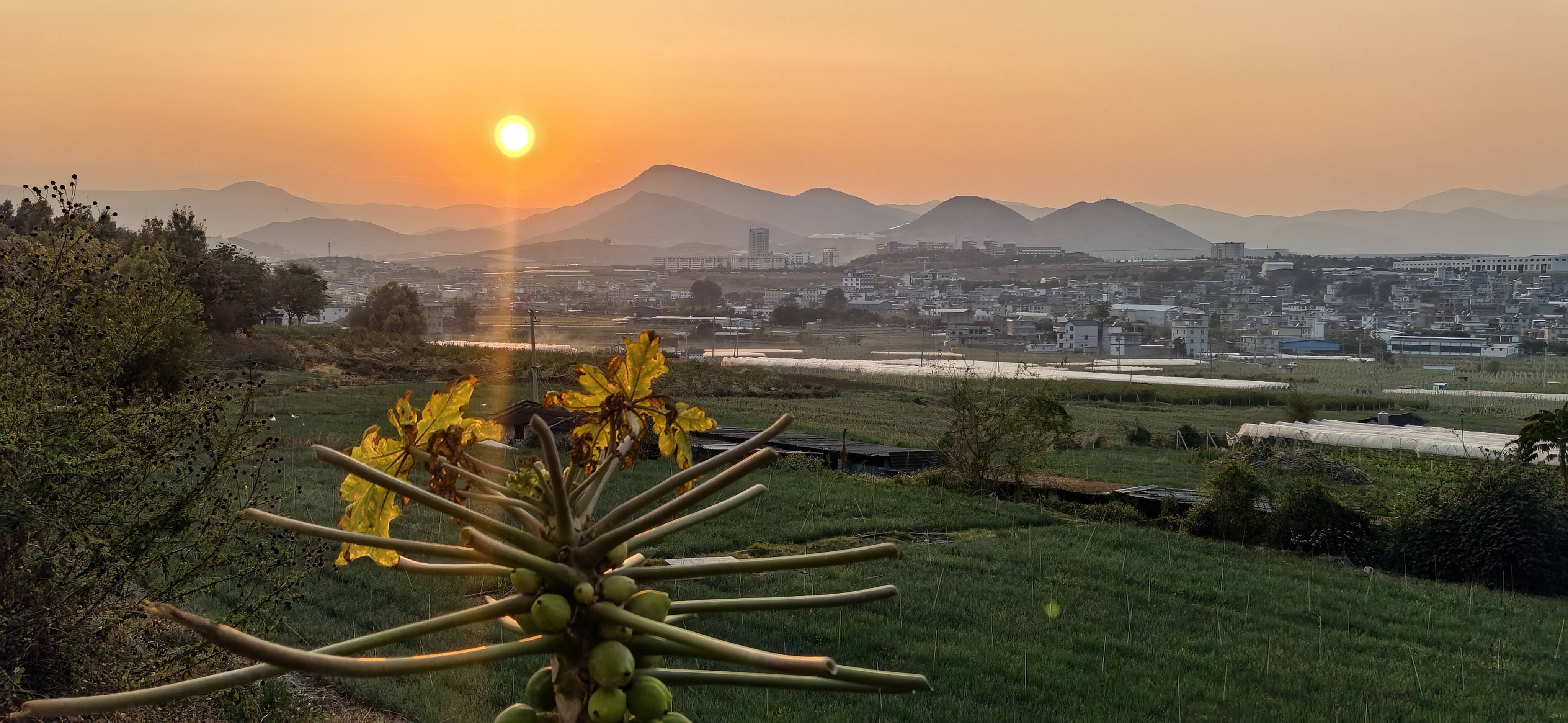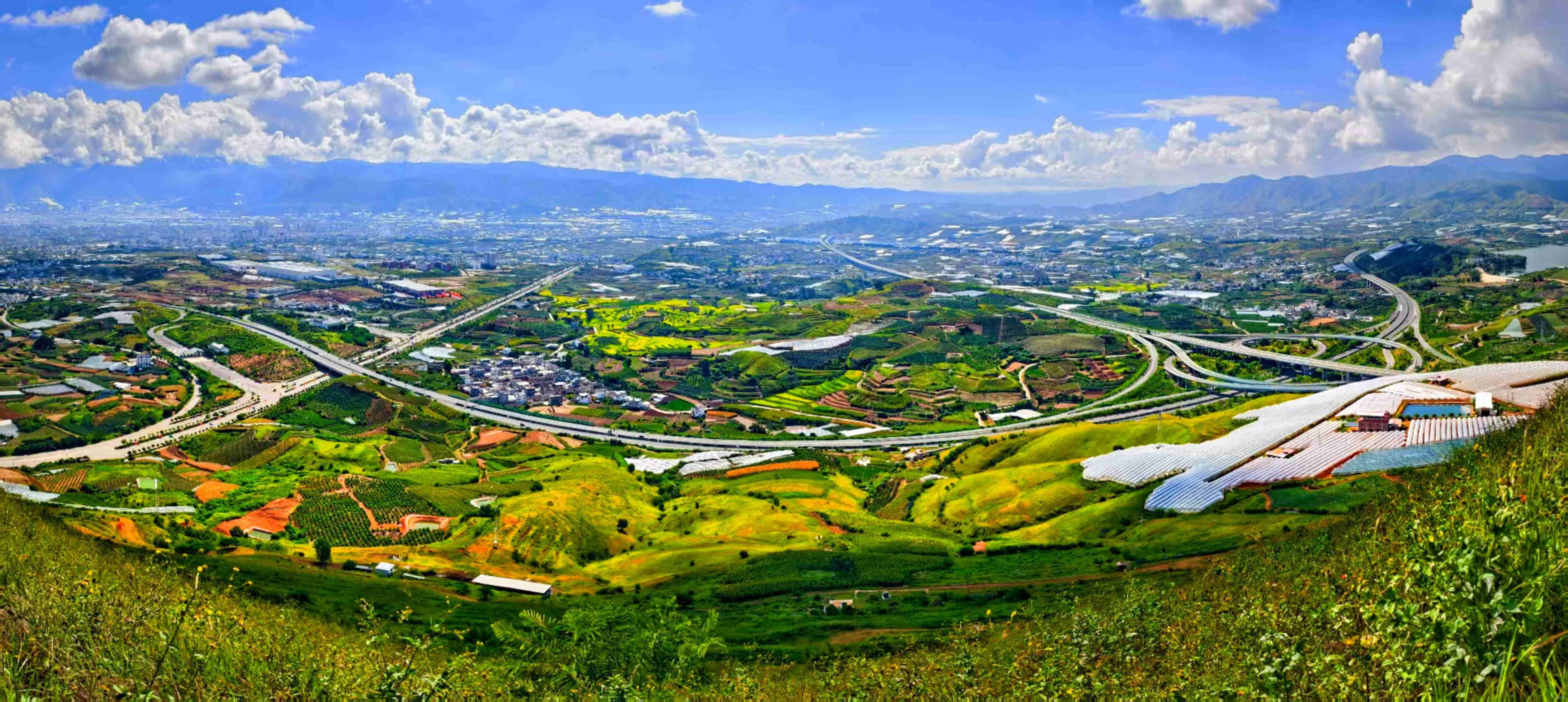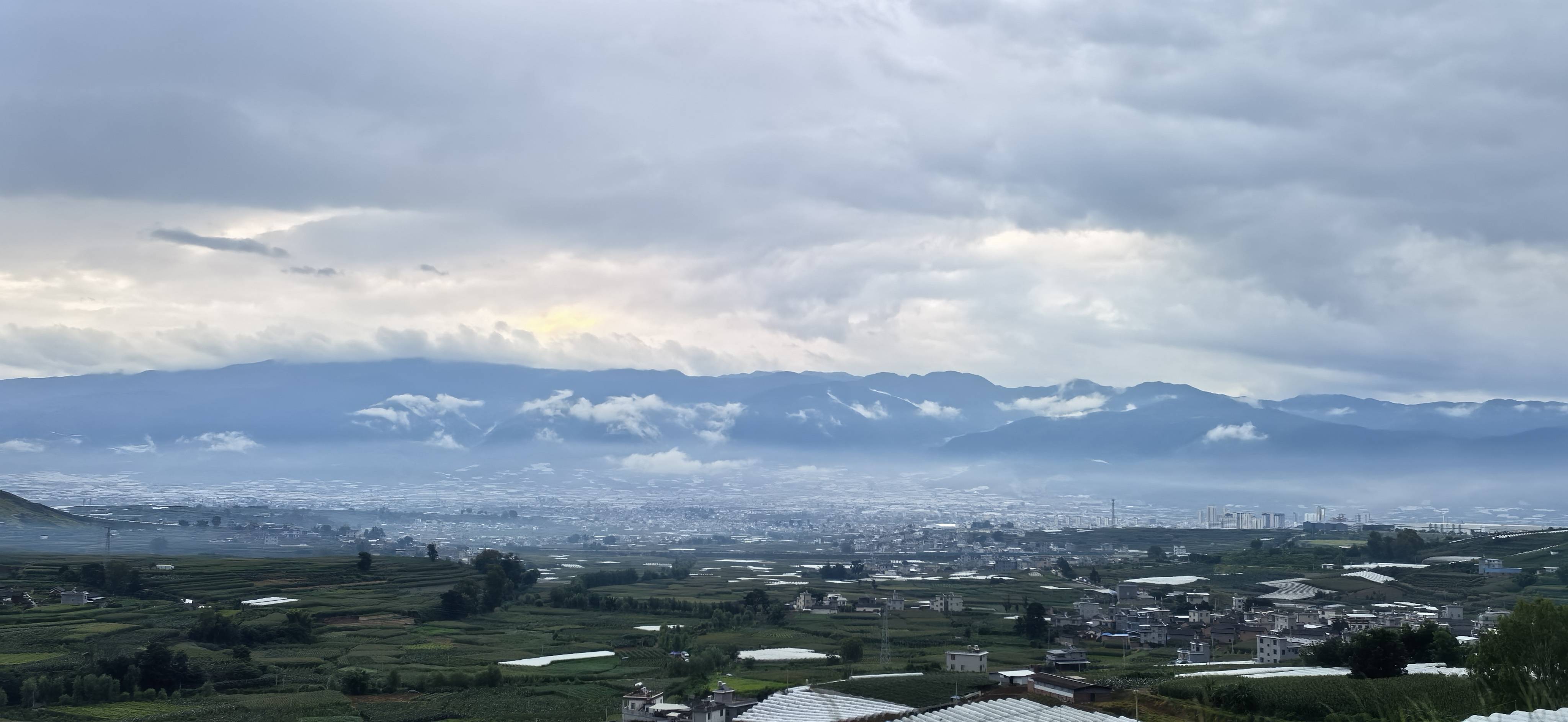 转身向东,宾川坝子全貌一览无余。高楼林立,鳞次栉比的县城,宛若一艘扬帆起航的大船,承载着宾川人的梦想,奋勇前行;四周,葡萄园、柑橘园连片蔓延,绿意盎然,星星点点的村落散落其间,炊烟袅袅,烟火气浓,勾勒出一幅宜居宜业的乡村画卷。