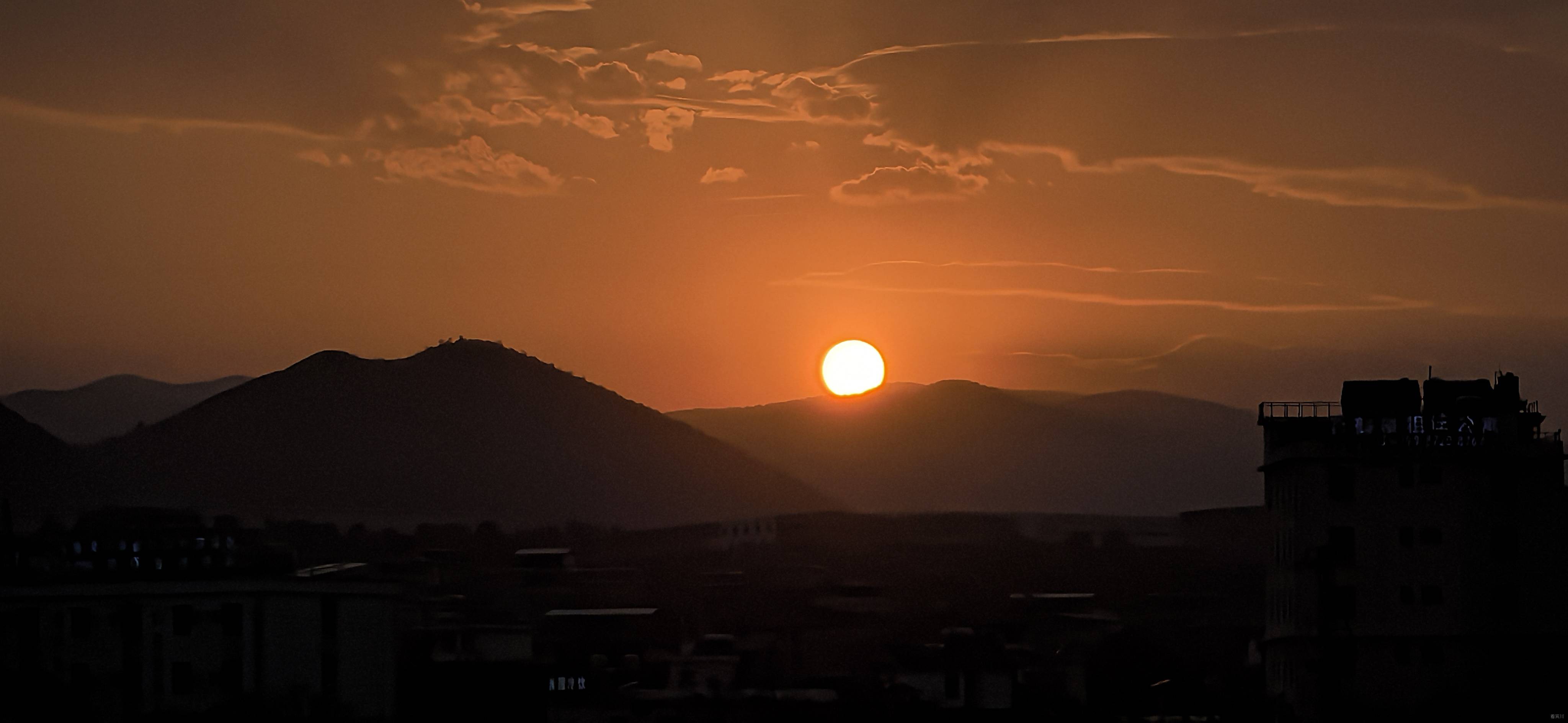 睡美山的绝美,终是藏在落日晚霞之中。因地处县城之西,得天独厚的地理位置,让这里成为观赏落日的绝佳去处。一年四季,日月流转,落日总会从睡美人的不同部位缓缓沉落,春落肩头,夏坠腰际,秋吻发梢,冬依耳畔,每一幕都美得令人心醉。