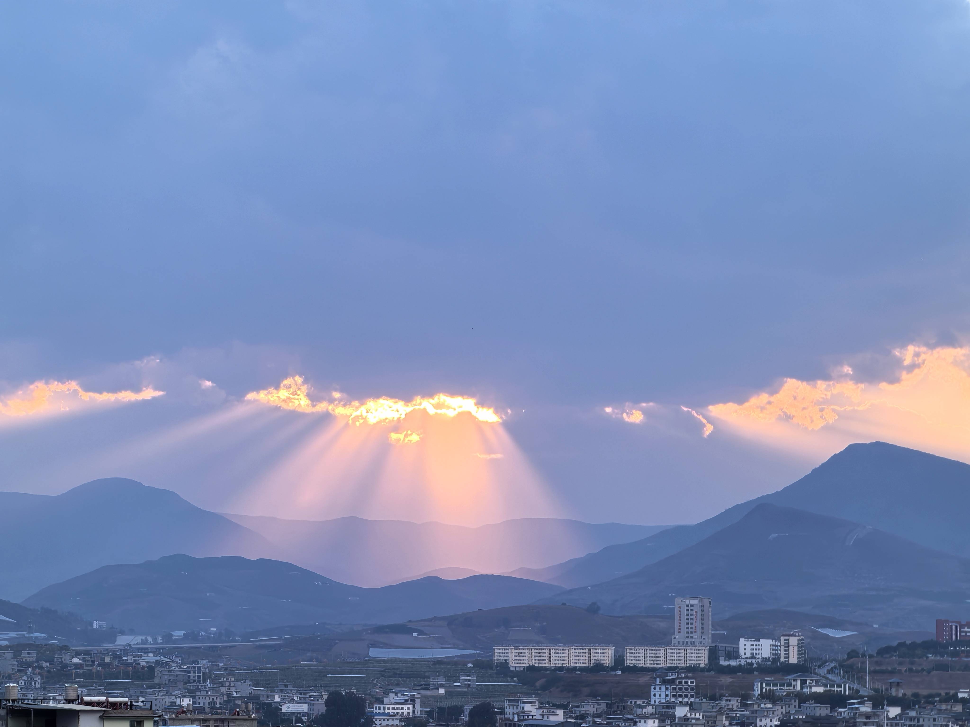 与周边群山不同,睡美山少有灌木植被覆盖,裸露的石灰岩山体,在光影流转中更显清隽。站在宾川县城的任何一个角落远眺,总能望见她静卧的身姿:长发飘逸,眉眼温婉,肌肤莹润,仿佛一位沉睡千年的少女,不受尘世喧嚣惊扰,静静地依偎在宾川坝子的怀抱里,无论朝暮晴雨,都透着沁人心脾的柔美。