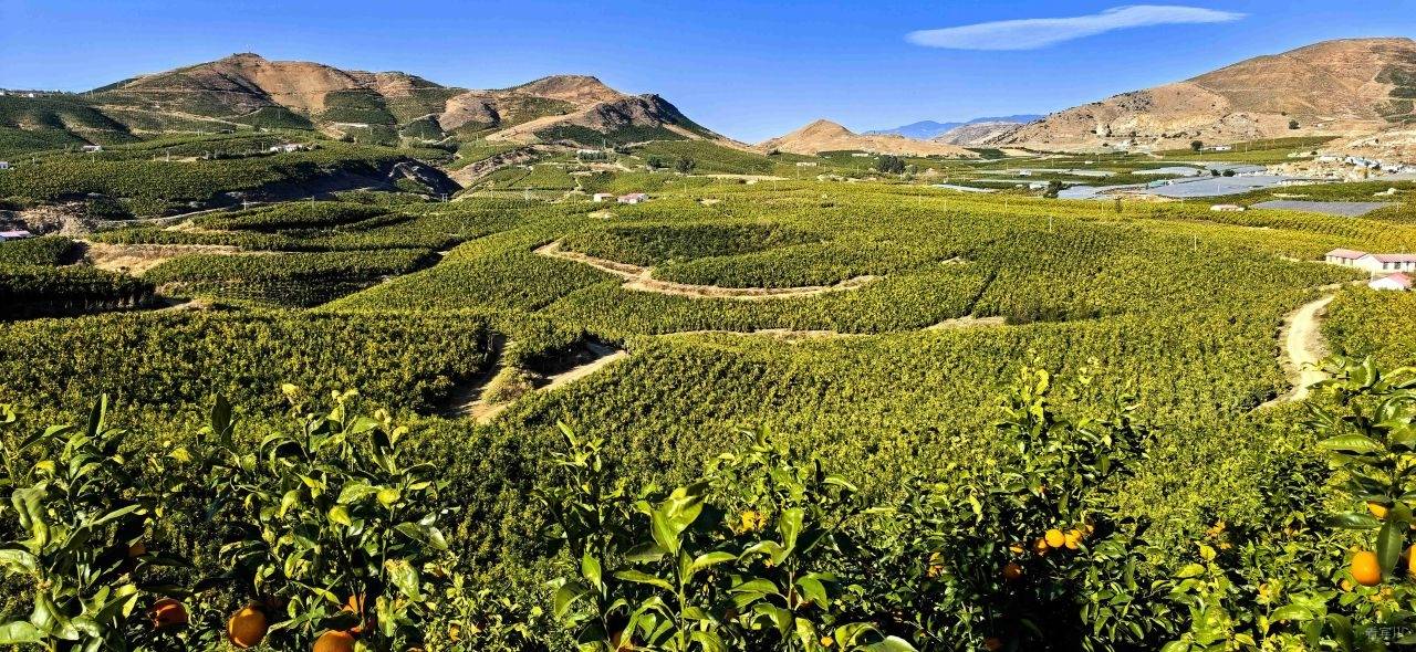 往西北眺望,曾经茅草丛生、乱石嶙峋的小河底片区,早已旧貌换新颜。在各级党委政府的关怀与支持下,这里投入了大量的资金、技术与人力,深耕细作,建成了万亩优质沃柑园。漫山遍野的沃柑树,枝叶繁茂,层层叠叠,园中星星点点的红色管理小房,宛若散落人间的星辰,点缀在翠绿的画卷中,生机盎然,硕果飘香,成为宾川产业发展的生动缩影。