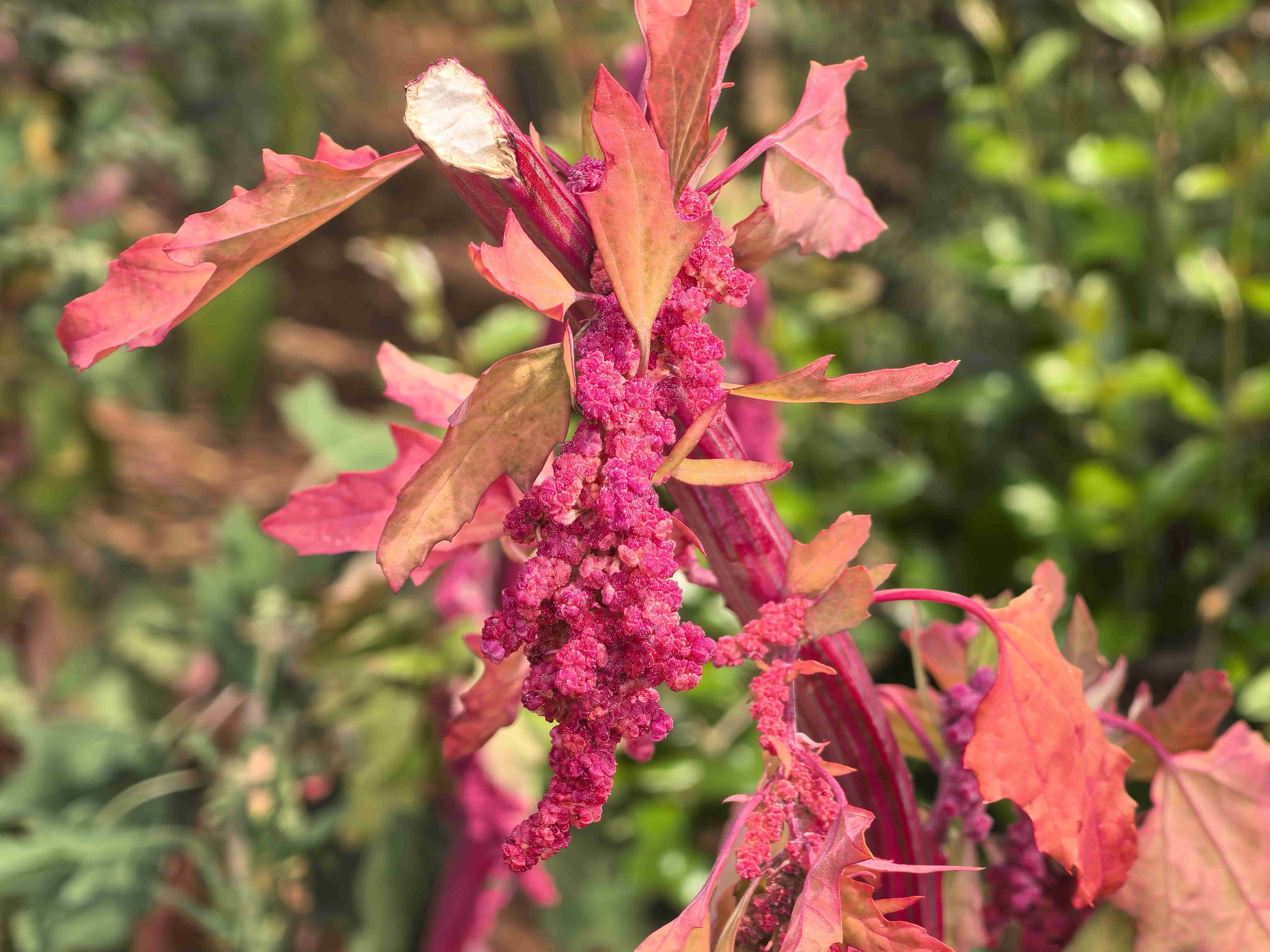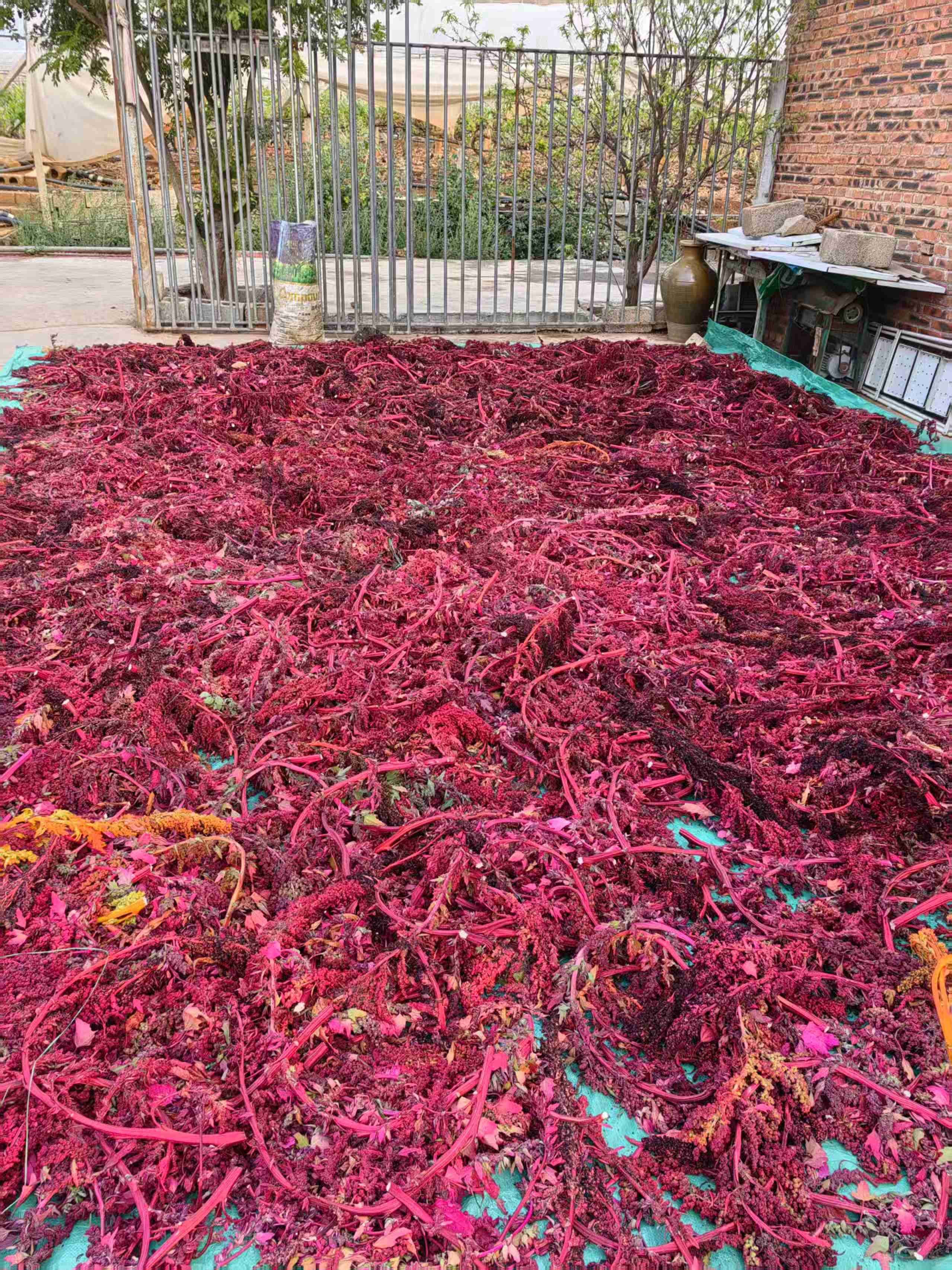 去年10月育苗栽种,历经130天精心管护,今年3月,红藜麦迎来丰收。植株挺拔修长,穗色鲜红亮丽,作为公认的“粮食之母”,这种全营养作物抗病性强、营养价值高,市场行情一路向好。
