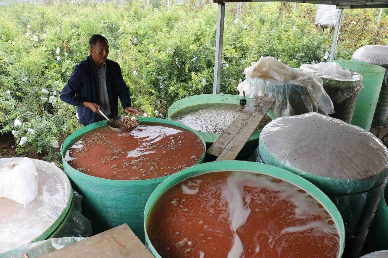 杜义秀的创业初心,始终与土地相连,与乡情相伴。宾川是全国最大的鲜食葡萄生产基地,每年大量葡萄弃果、烂果被随意丢弃,不仅浪费资源,更污染了乡村环境。看在眼里,急在心头,杜义秀下定决心,要破解这一难题。她主动对接大理大学农学与生物科学学院,携手科研团队潜心钻研,历经无数次试验,终于将废弃葡萄果研发成水果酵素菌液态生物有机肥,让无用弃果,变成了滋养沃土的黄金肥。