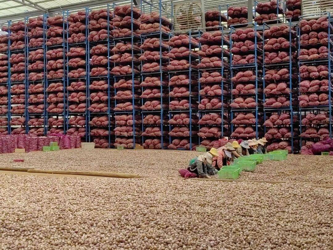 时下,宾川大蒜迎来销售高峰,走进大理热宝农业科技有限公司生产车间,四五米高的钢架上摆满了一袋袋大蒜,工人们手脚麻利的对大蒜进行分拣、称重、打包、封箱。一箱箱带着宾川泥土芬芳的优质大蒜,正通过电商渠道奔赴全国各地。
