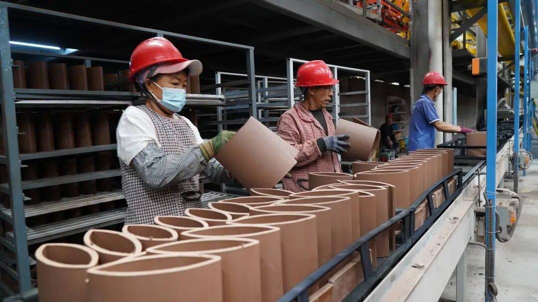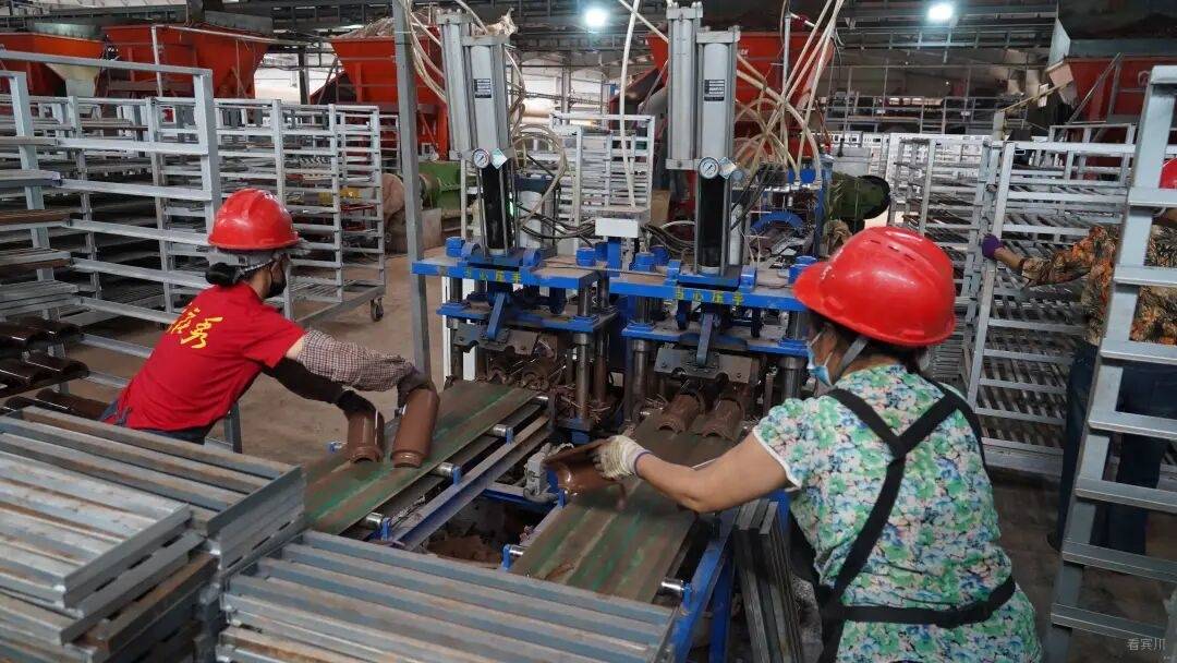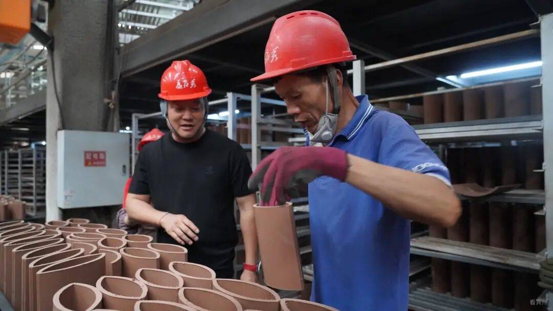走进康氏灰陶车间,机器轰鸣,却没有传统砖瓦厂的尘土飞扬。装车、摆坯、真空制坯……工人们各司其职,脸上带着踏实的神情。过去,他们中的很多人辗转外省,一年回不了几次家。如今,从老家到厂里,不过一个多小时车程。
