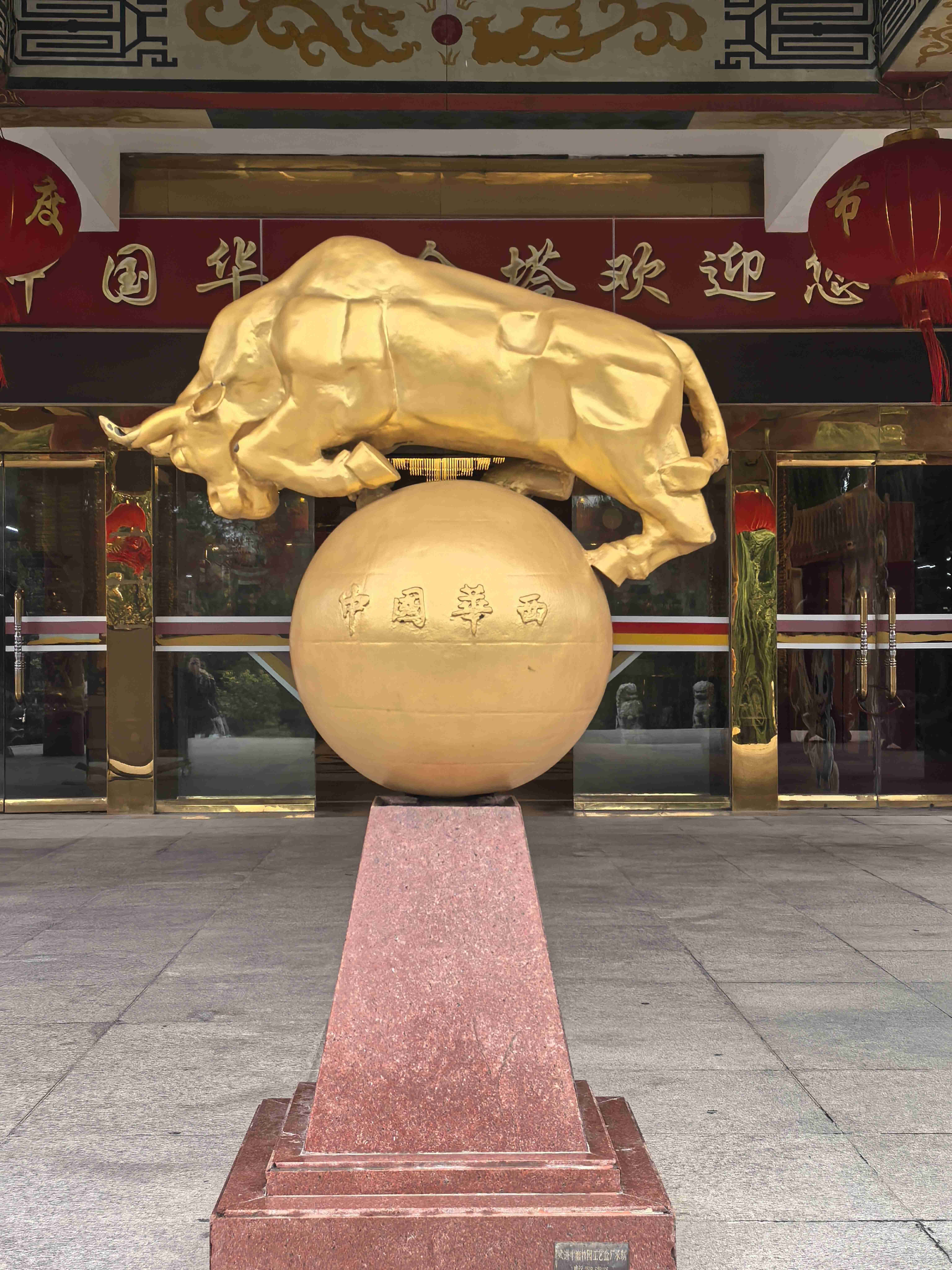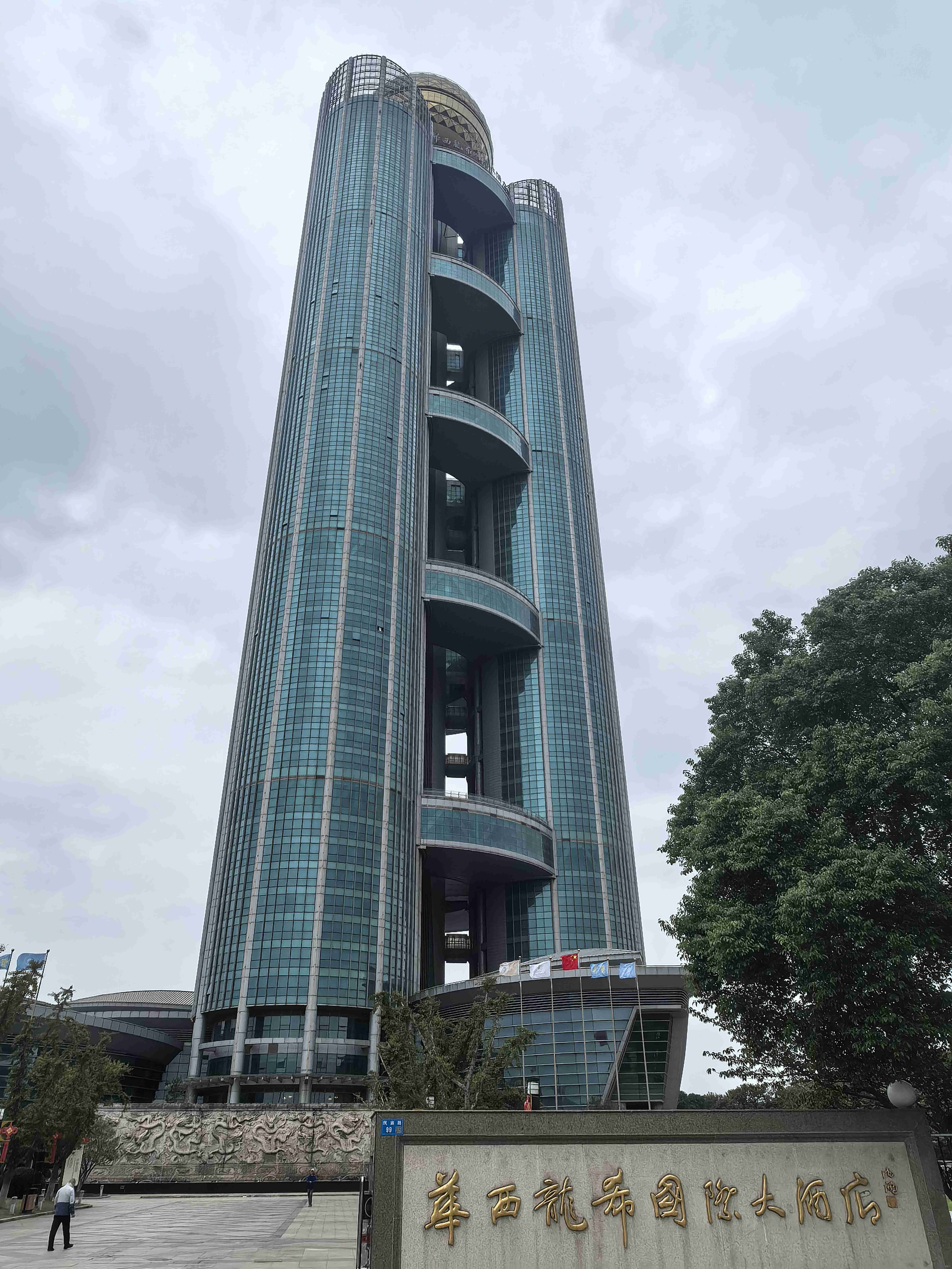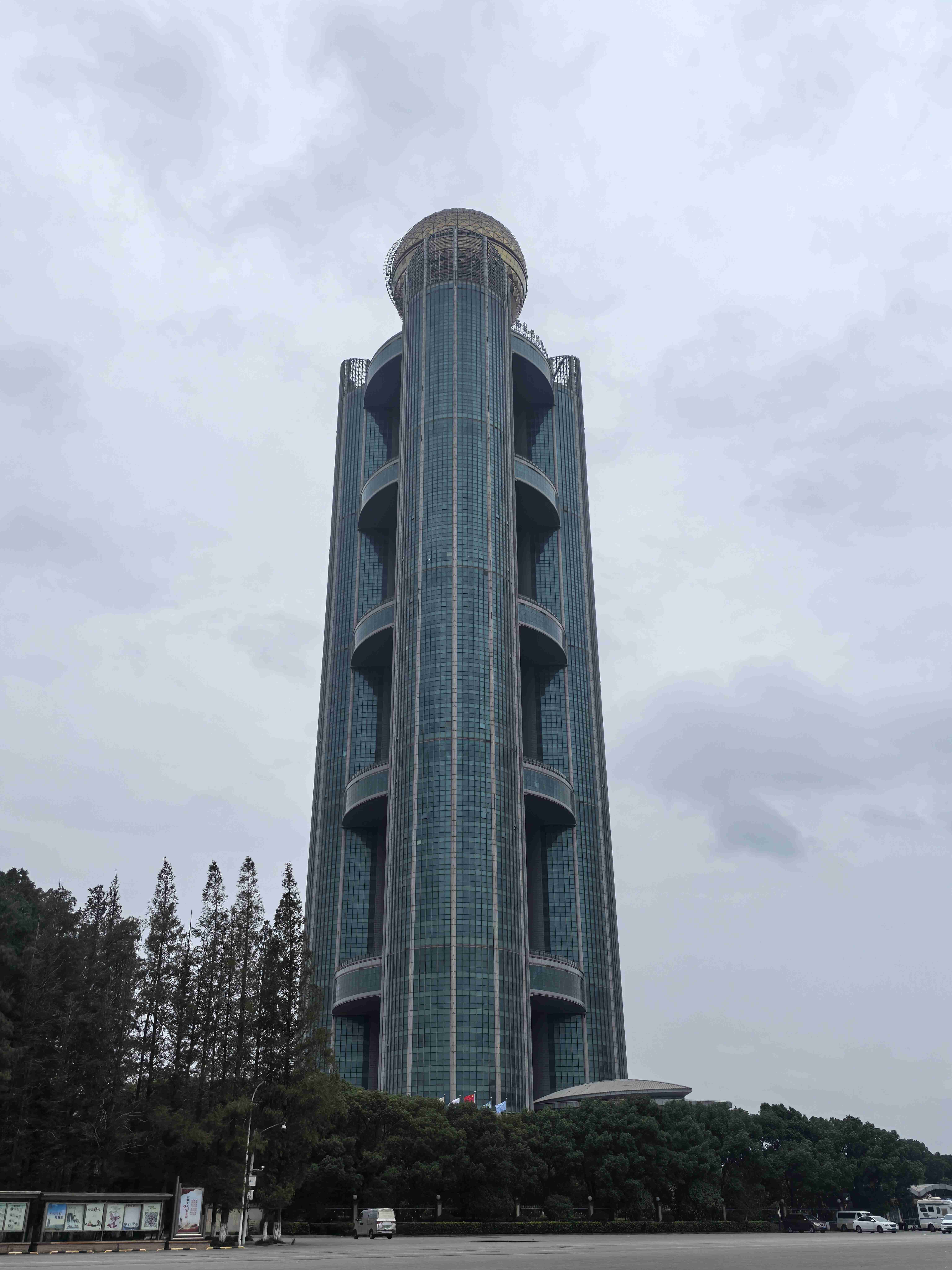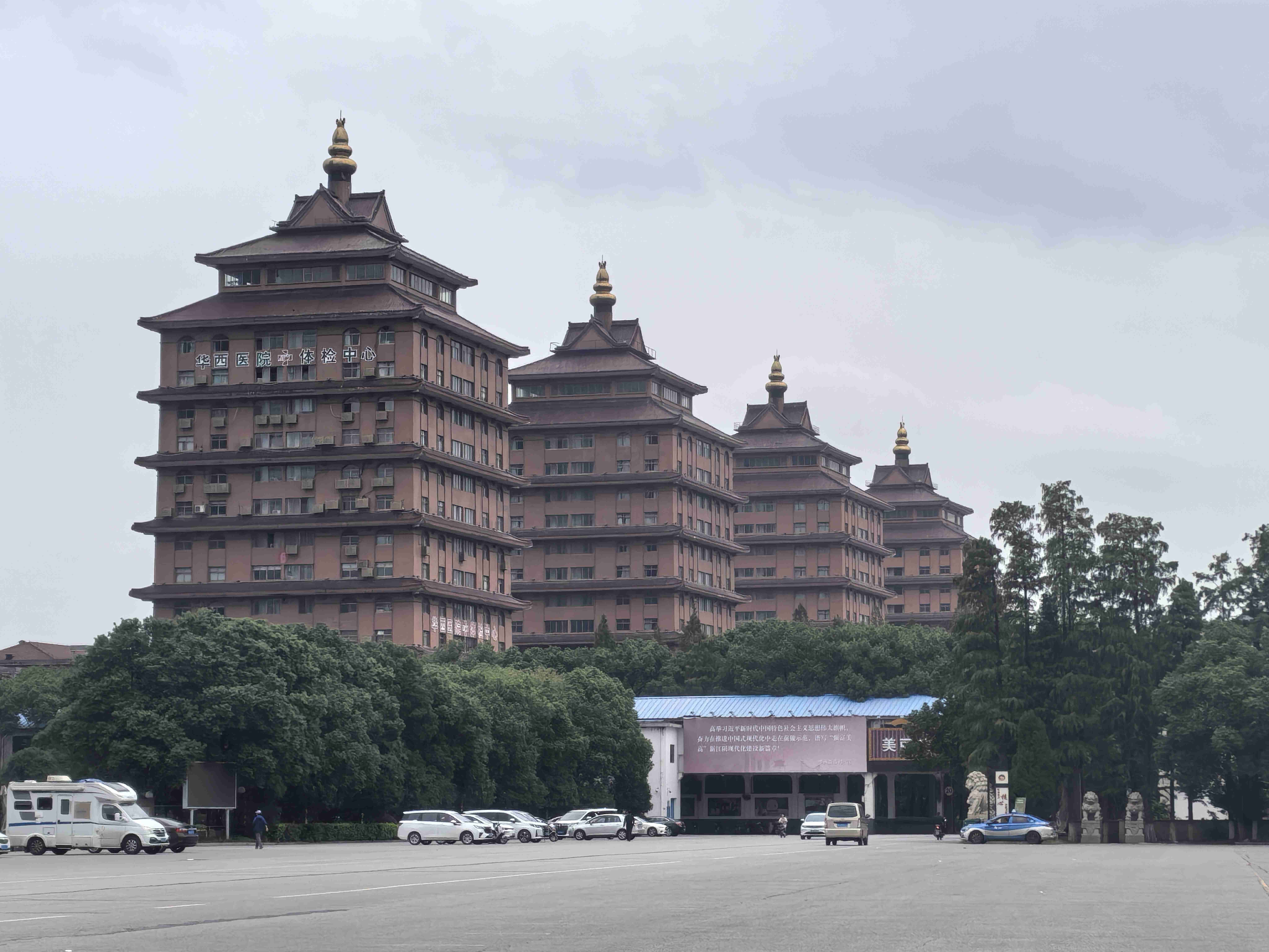 车子继续前行,路过华西村的“九塔”景观时,师傅特意放慢车速。九座造型各异的塔型住房楼围绕着中心的主塔,错落有致地分布在绿地中,透着浓浓的吉祥寓意。“这九塔象征着华西村的九个生产队,也代表着村民团结一心、共同致富。”师傅解释道。九塔每座高98米,共17层,采用中国传统七级宝塔的形制。整体为下宽上窄的四方形,每层都有飞檐,涵盖了宾馆、商场、会客中心、培训中心、集团办公楼、营养配餐中心、人才公寓、体检中心等,为华西村的村民生活和经济发展提供了多方面的支持。远远望去,巍峨壮观,不仅是华西村实体经济发展的标志,也体现了华西村的繁荣与稳定,展示了华西村的独特风貌和强大的经济实力。不远处,龙希国际大酒店再次出现在视野里,蓝金色交错的外立面在阳光下闪闪发光,酒店门口的广场上,不少游客正拍照留念。