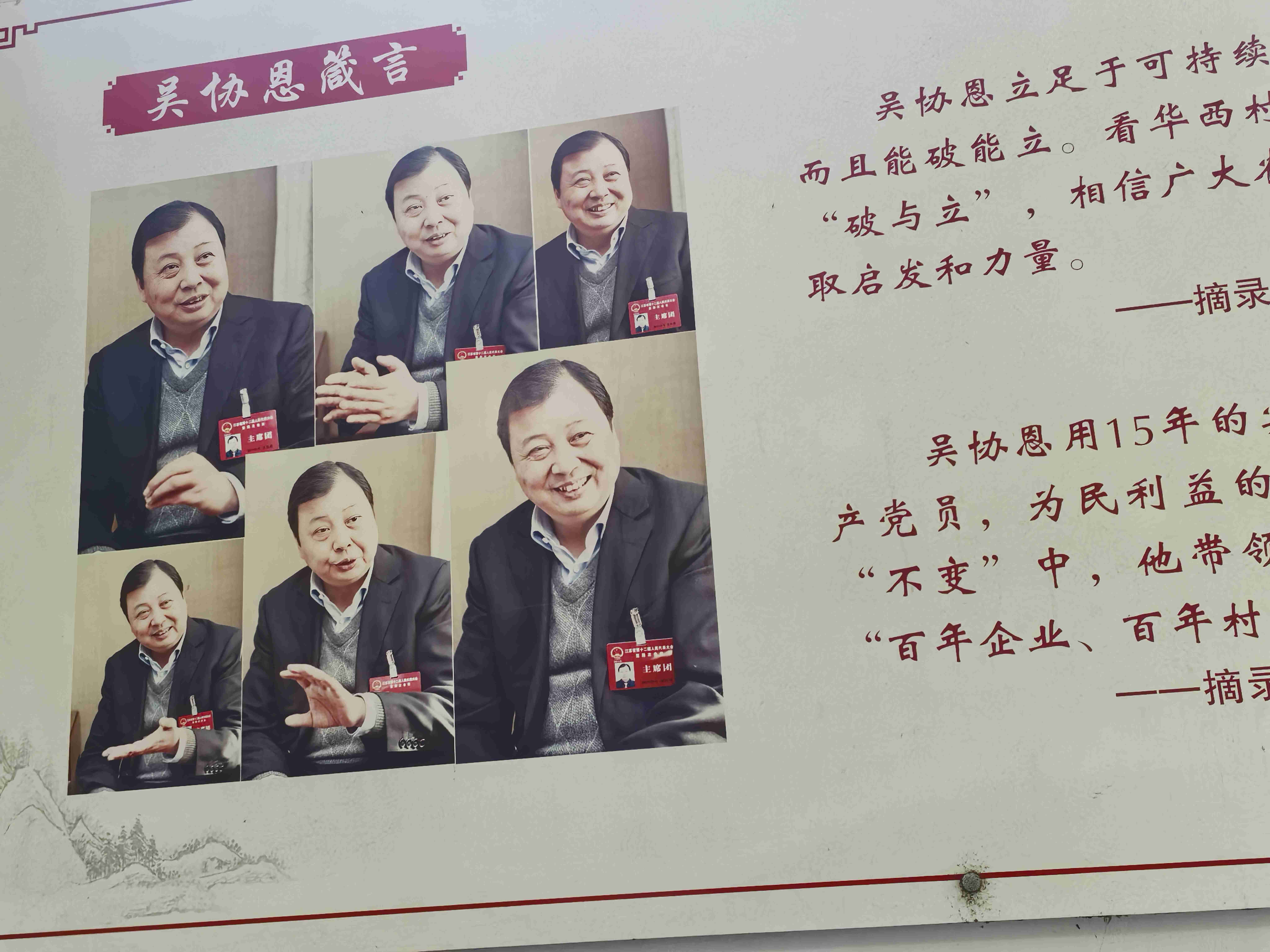 时间有限,我们重点参观了“百年华西展廊”。刚走进展廊,一副楹联便映入眼帘:“政通人和还是领导班子强,村泰民乐终归社会主义好”,寥寥数语,道尽了华西村发展的核心密码。展廊里,一张张老照片、一件件旧物件,串联起华西村的奋斗历程:从吴仁宝老书记带领村民办起第一家小五金厂,到后来成立华西集团、拓展多元产业;从村民人均收入不足百元,到如今实现共同富裕;从老书记卸任后,吴协恩等新一代村领导班子接过“接力棒”,继续带领村民探索乡村振兴新路径…… 每一段文字、每一幅图片,都让我们真切感受到华西村“一步一个脚印”的扎实发展。