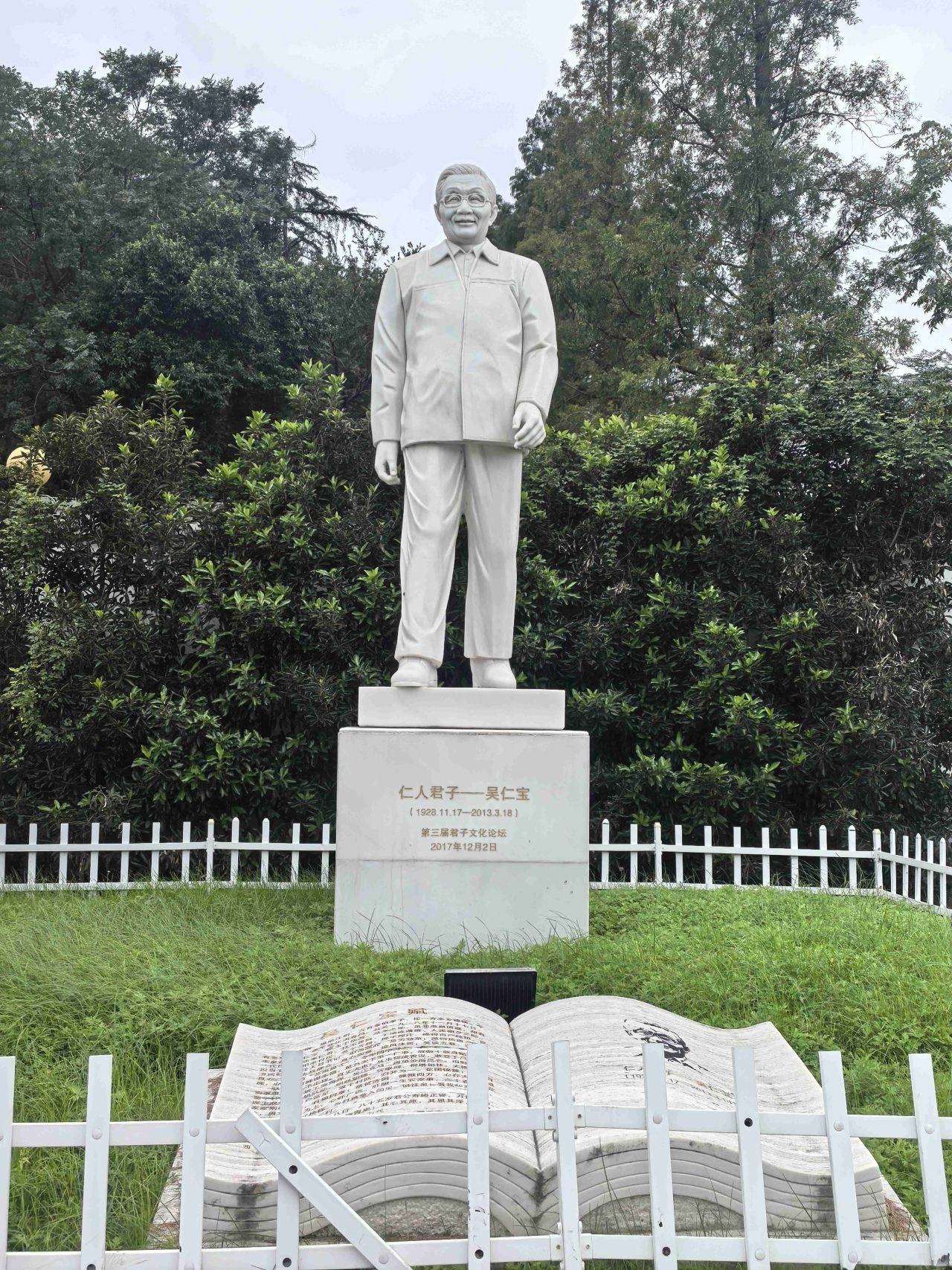 师傅特意把车停在吴仁宝老书记的雕像前,雕像上的老书记身着中山装,面带微笑,目光温和地望向远方,底座上“仁人君子——吴仁宝”几个大字格外醒目。“老书记可是华西村的‘定海神针’,上世纪60年代就带着村民开荒种地、办工厂,哪怕遇到困难也不放弃,才有了华西村今天的好日子。”师傅蹲下身,指着雕像旁的介绍牌,给我们讲起老书记“有福民先享,有难官先当”的故事,言语间满是敬重。我们站在雕像前,静静聆听,仿佛能透过岁月,看到当年老书记带领村民奋斗的身影。