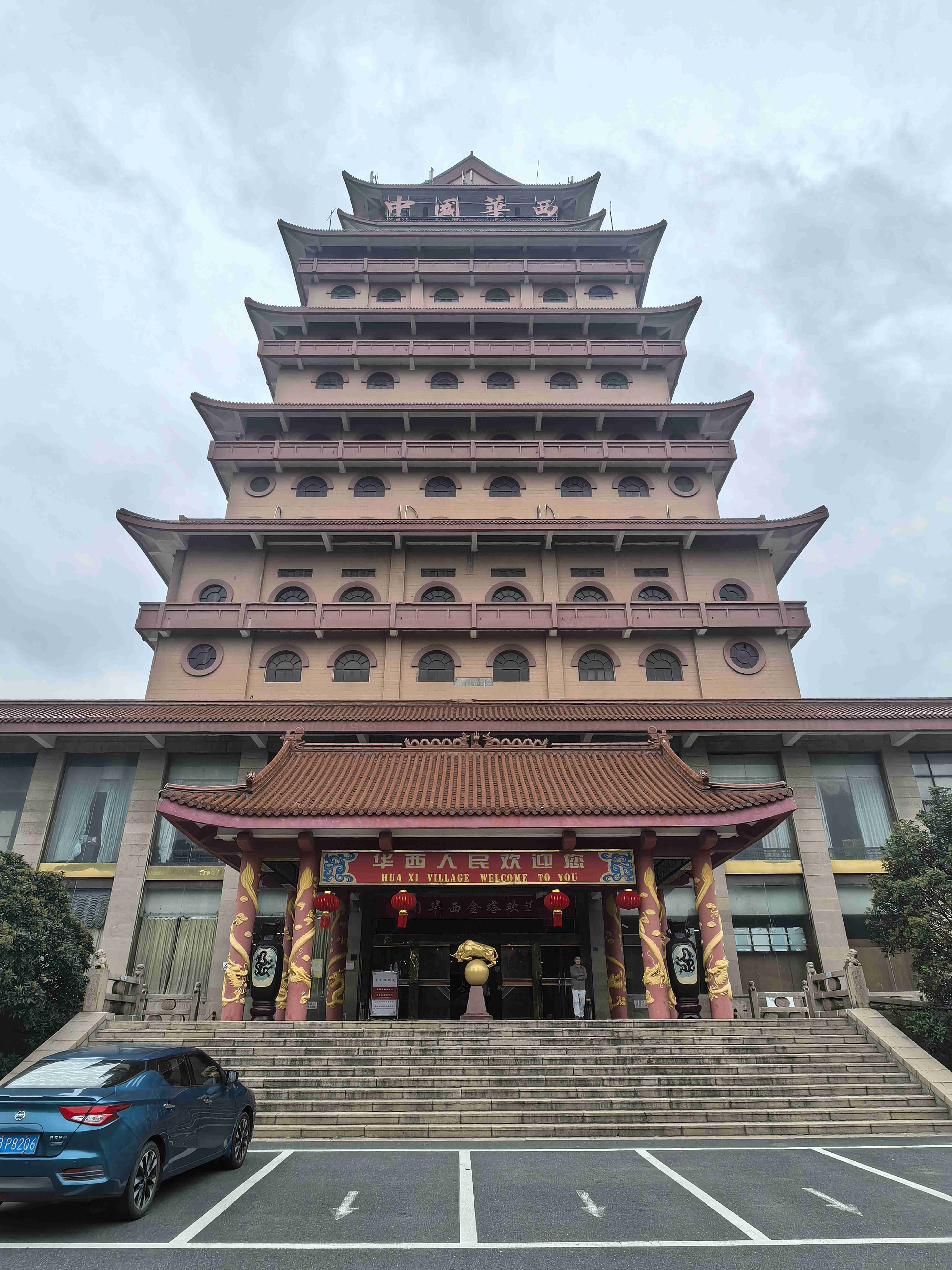 从江阴徐霞客故居返程,我们预约了网约车前往无锡硕放机场。上车时,驾驶员师傅得知我们的航班要到下午5点才起飞,笑着提议:“这会儿时间还早,‘天下第一村’华西村就在路边,不去看看可要遗憾的!”我们心里一动,连忙追问:“那是收费景区吗?”师傅摆了摆手:“咋会收费?都是开放式的,你们顺路去转转,正好感受下咱江苏农村的厉害!”几人一合计,时间充裕又不耽误行程,当即决定顺道去探访这座久闻其名的“天下第一村”。