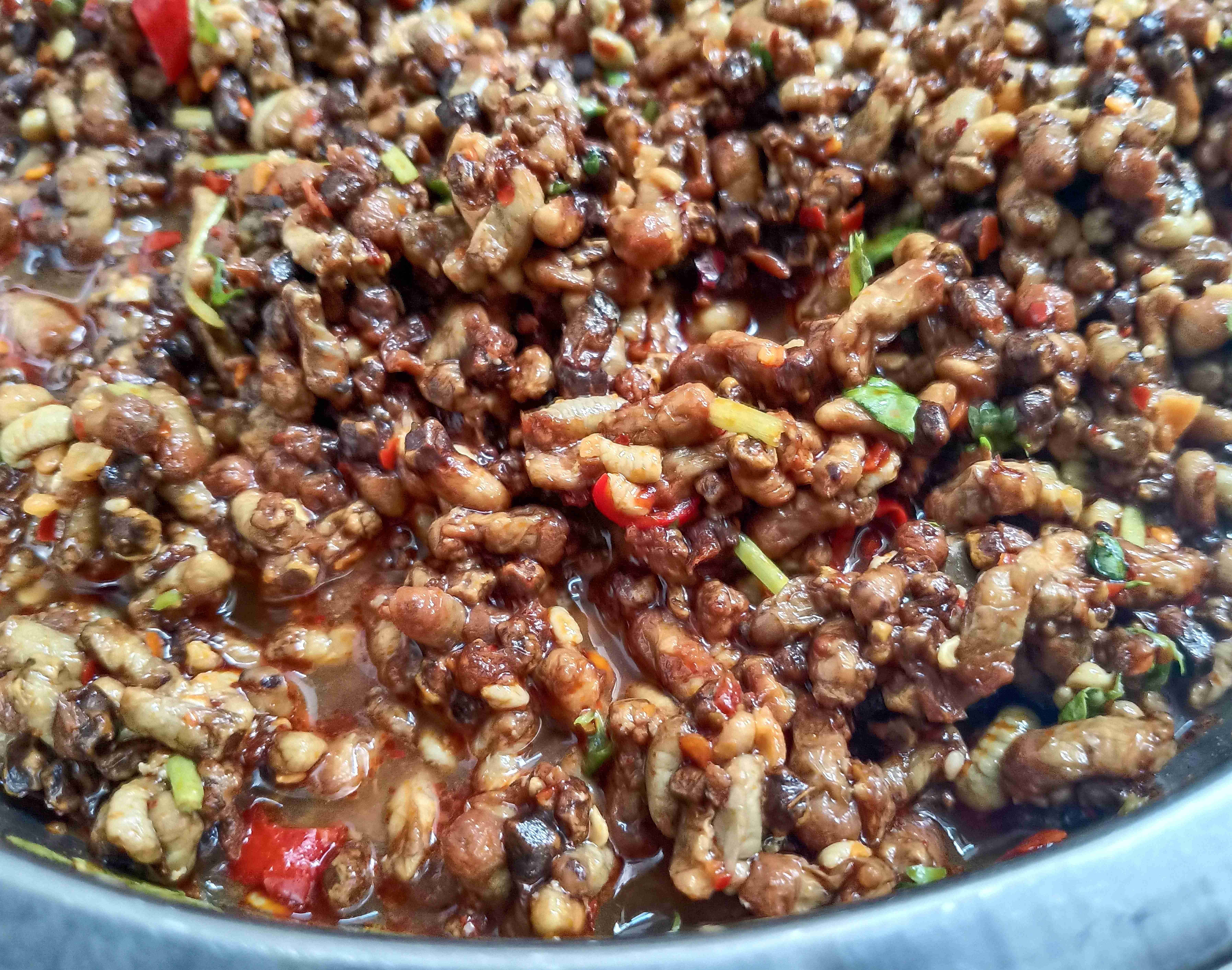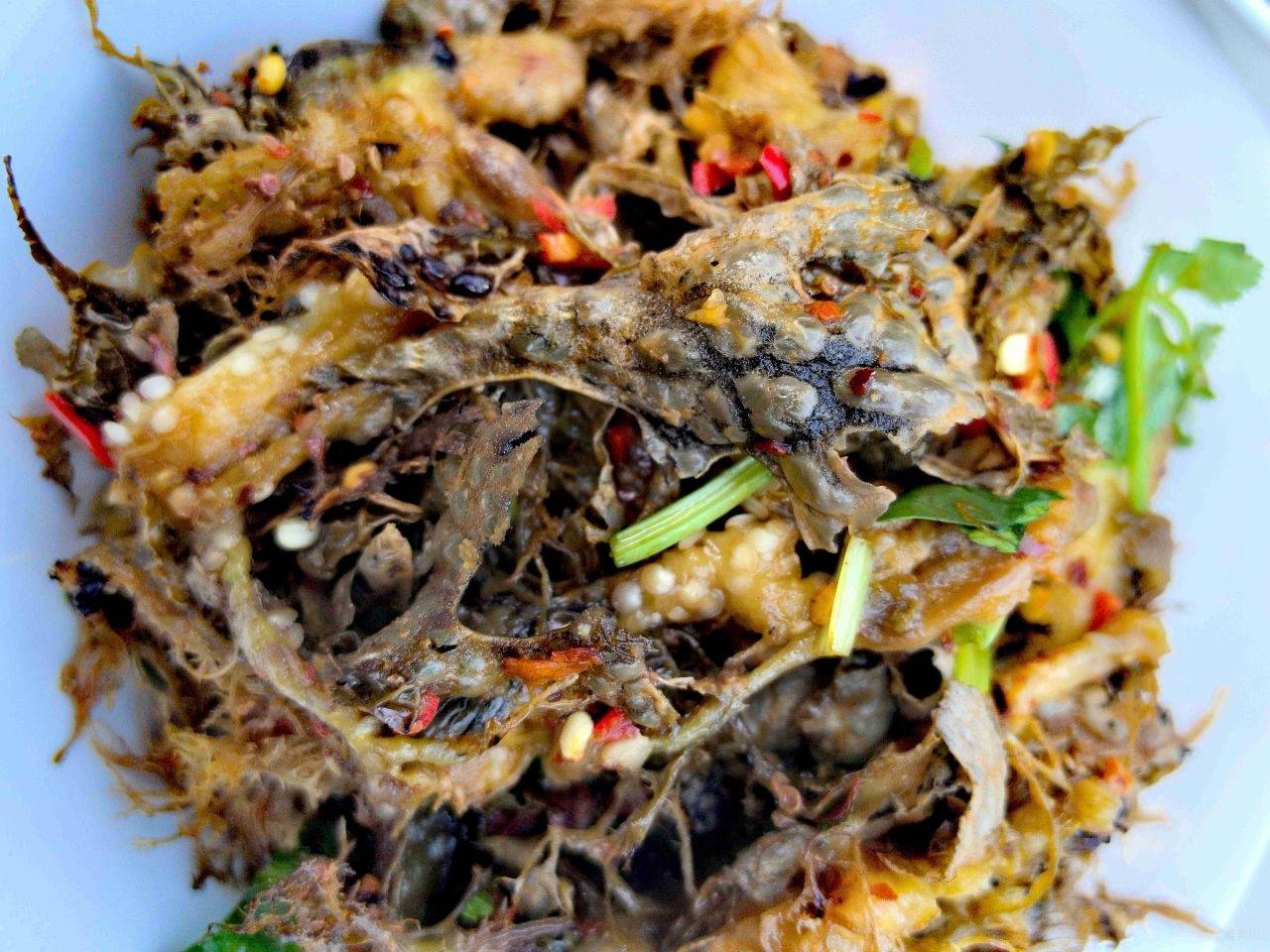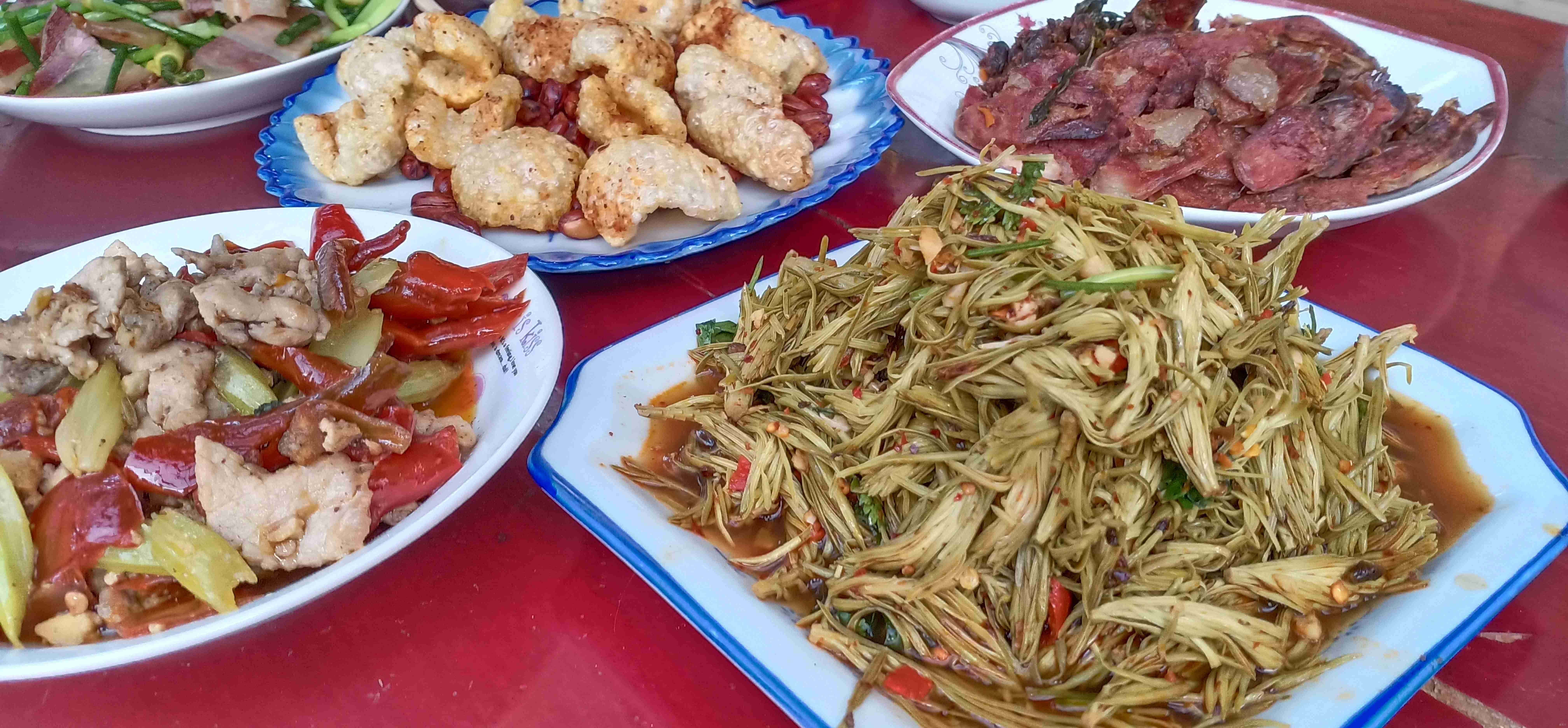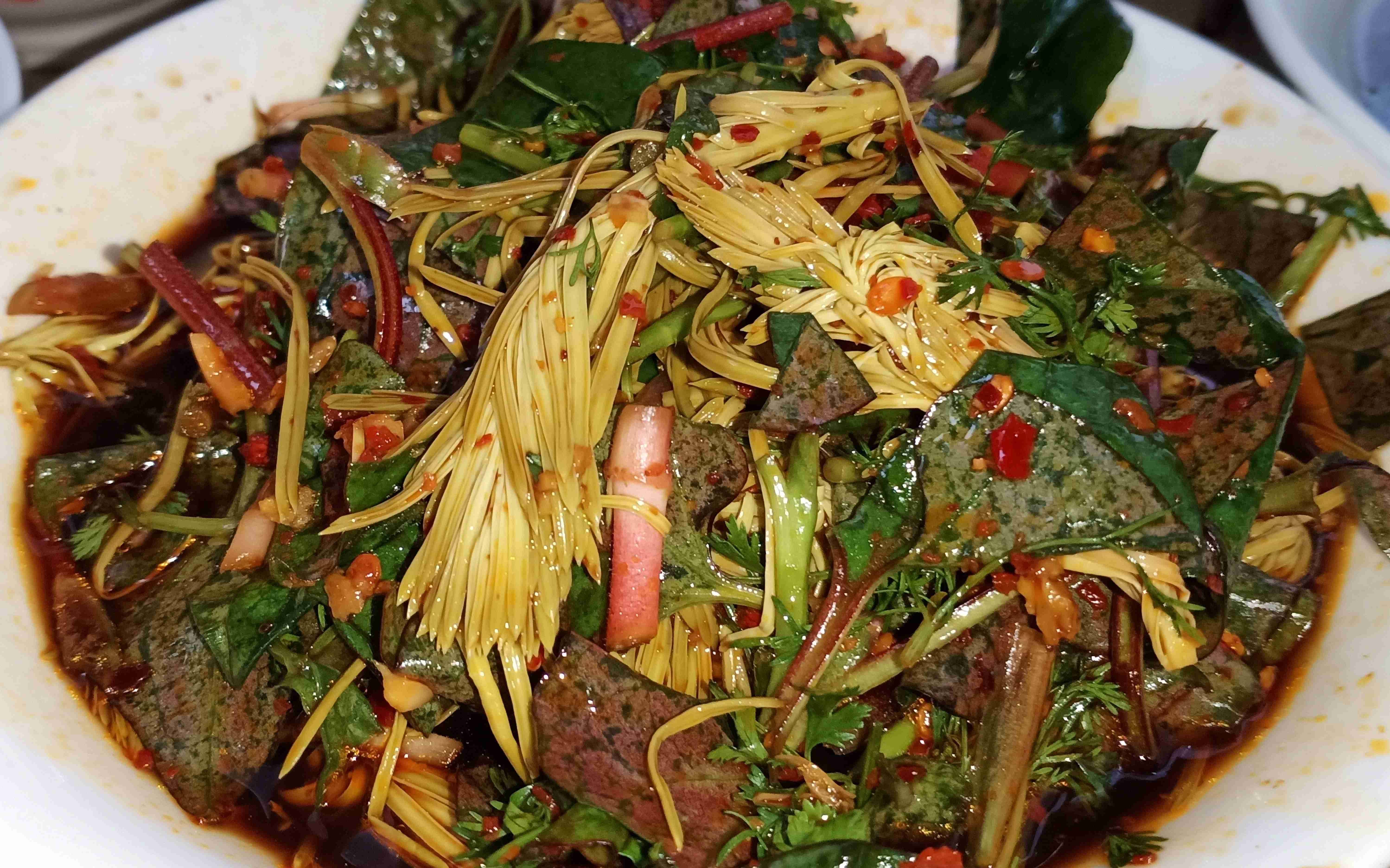 在拉乌彝山,这样的凉拌生态菜还有很多,凉拌新鲜核桃仁、凉拌蜂蛹、凉拌乳猪肉、凉拌羊肝生等,每一道都用料天然、做法质朴,藏着最地道的山野风味与彝家智慧,等待着每一位食客前来品味这份来自彝山的清爽本味。