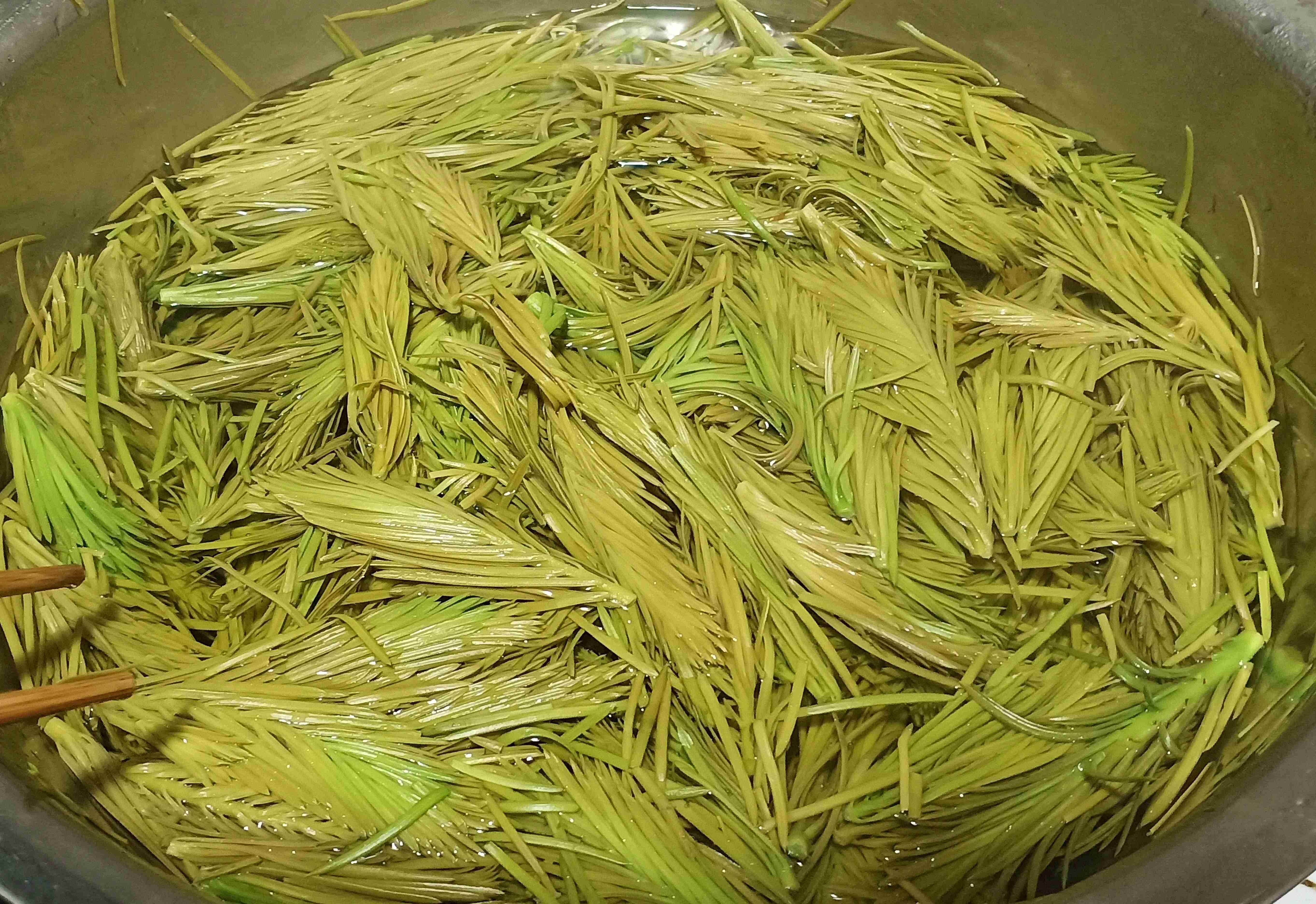 凉拌沙松尖,是初夏彝山最鲜的馈赠。行走在山间小道,一树树翠绿的青松尖迎风舒展,鲜嫩的尖芽透着勃勃生机,让人忍不住驻足采摘,只为烹制这道藏在大山里的美味。采摘归来,烧一锅清溪涧的滚烫泉水,将挑选好的青松尖迅速倒入锅中,快速搅拌,待青松尖由翠绿转为嫩黄,便立即捞起,放入冷水中宽水浸泡。这一步讲究一个“快”字,唯有速焯速凉,才能锁住松尖最纯正的清香,为这道菜肴奠定鲜爽基调。