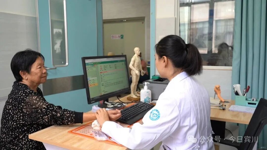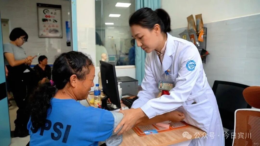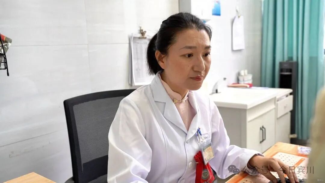 清晨的宾川县人民医院中医科,药香氤氲。诊室外候诊患者已坐满长椅,诊室内,朱蕾指尖轻搭患者腕间,凝神诊脉,细致观察舌苔、耐心询问,电脑上清晰记录着脉象、症状与药方。