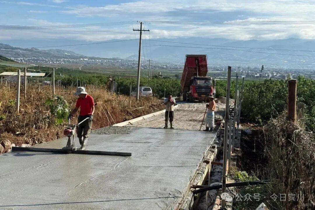 初秋清晨,宾居社区小黑箐“以工代赈”项目施工现场,机器轰鸣、砂浆奔涌,一条宽4.5米、总长约2.9公里的崭新水泥路在村民的手中逐渐延伸,蜿蜒的产业道路上,运输车辆往来穿梭,处处洋溢着蓬勃的建设活力。