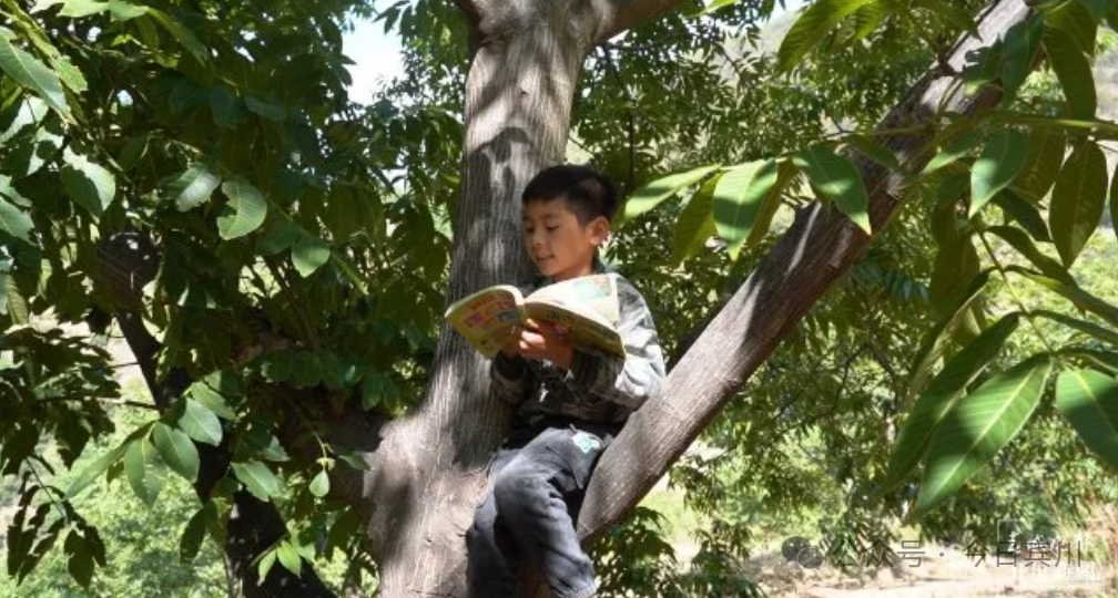 家门口的老核桃树是他的“读书基地”,他常常灵活地爬上树,找个舒适的枝杈坐下,双腿晃悠悠地垂着,怀中抱着心爱的诗词集。