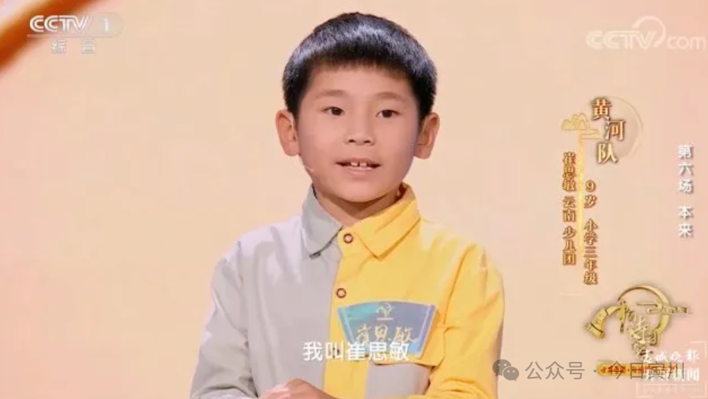 近日,《一站到底·少年季》舞台上,来自云南宾川县拉乌乡的12岁彝族男孩崔思敏凭借对诗词的热爱和深厚积累引发关注。